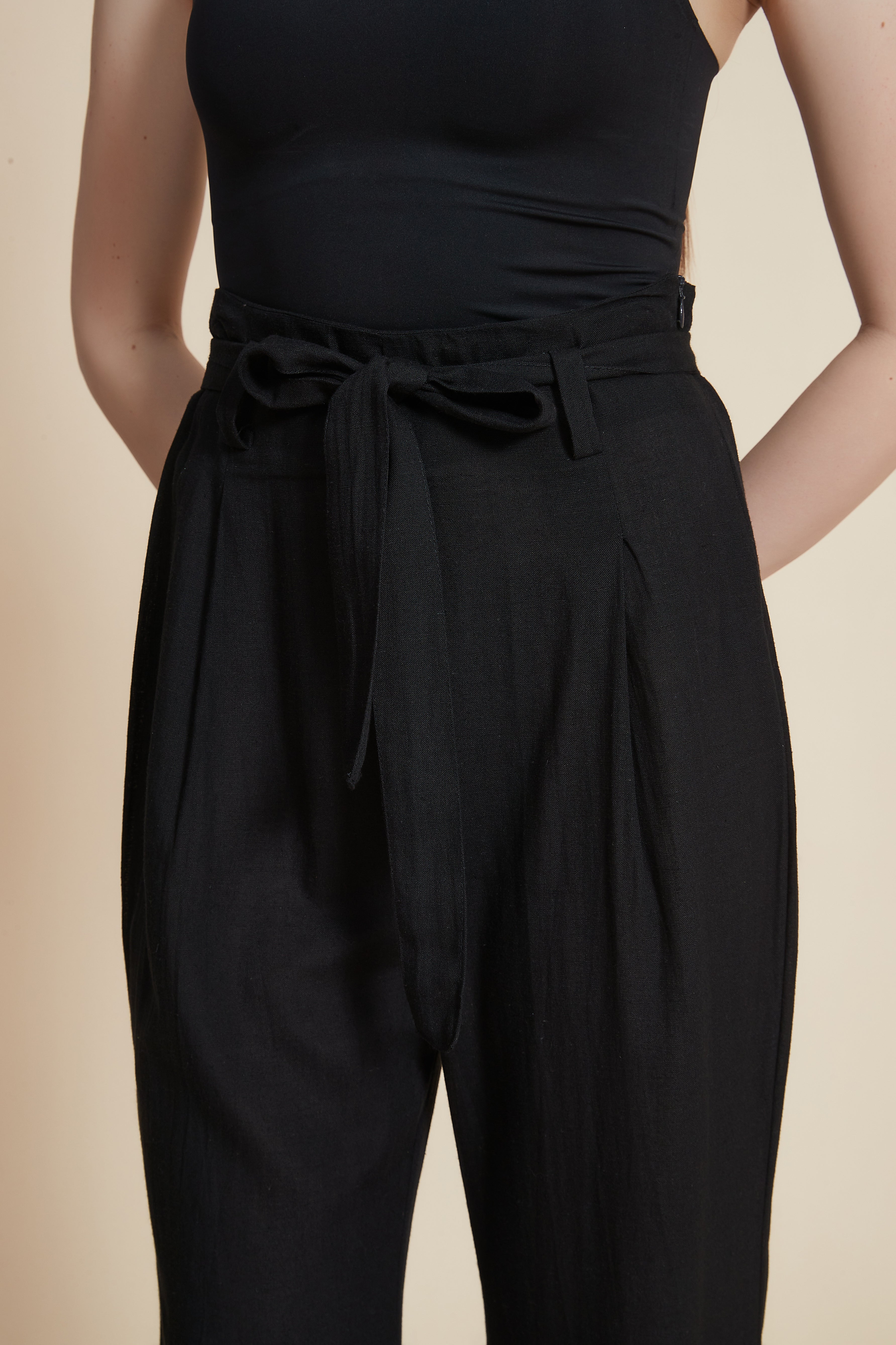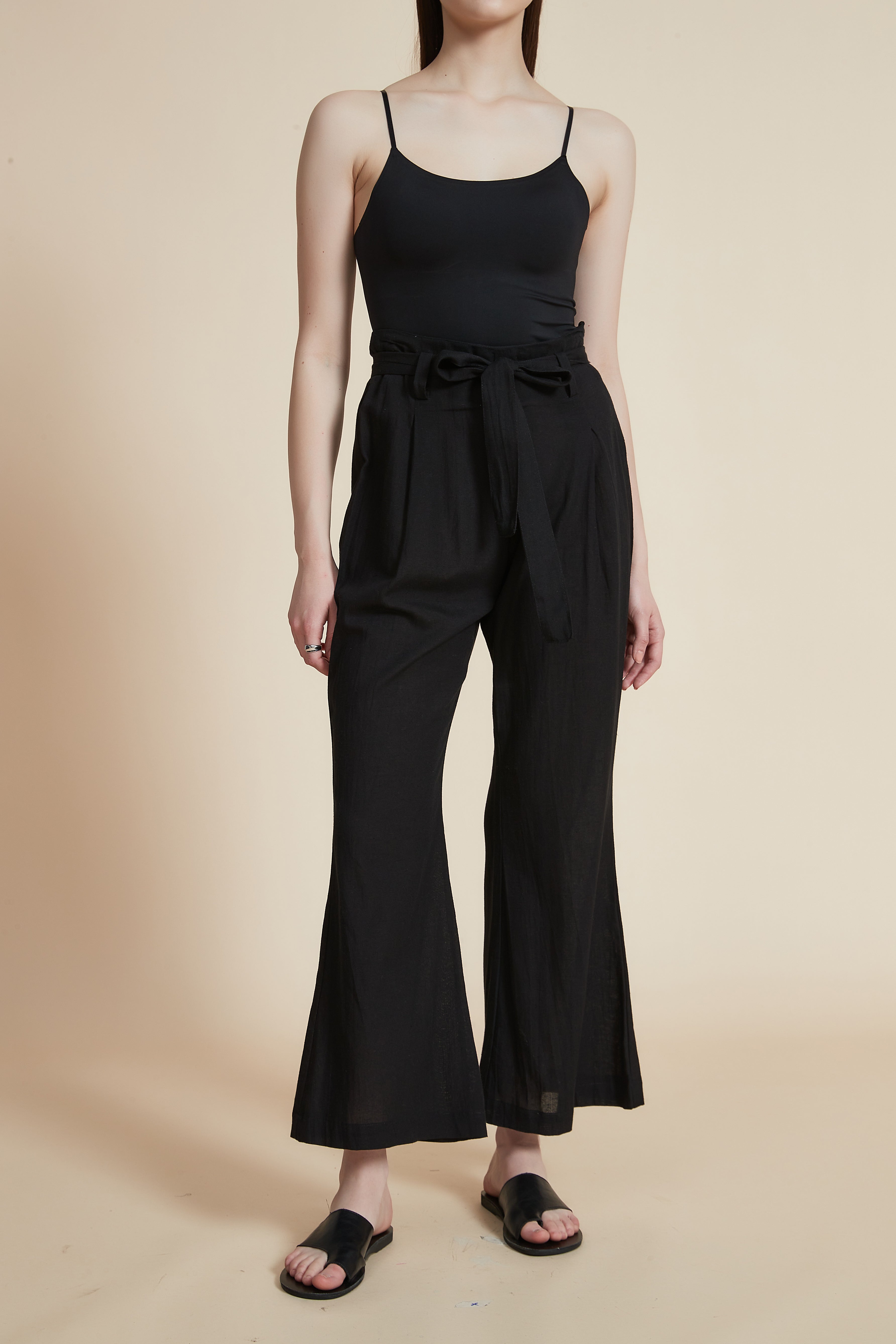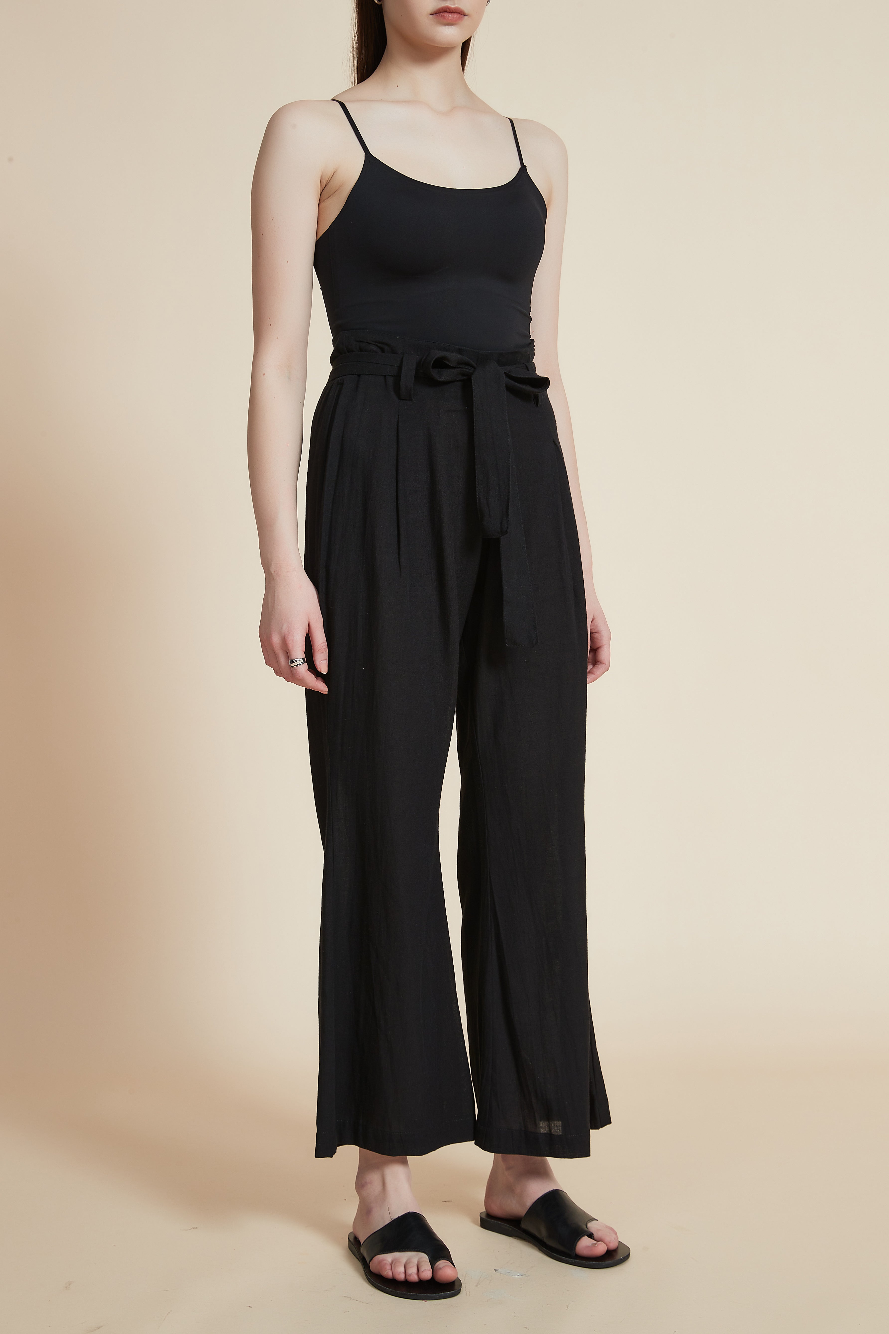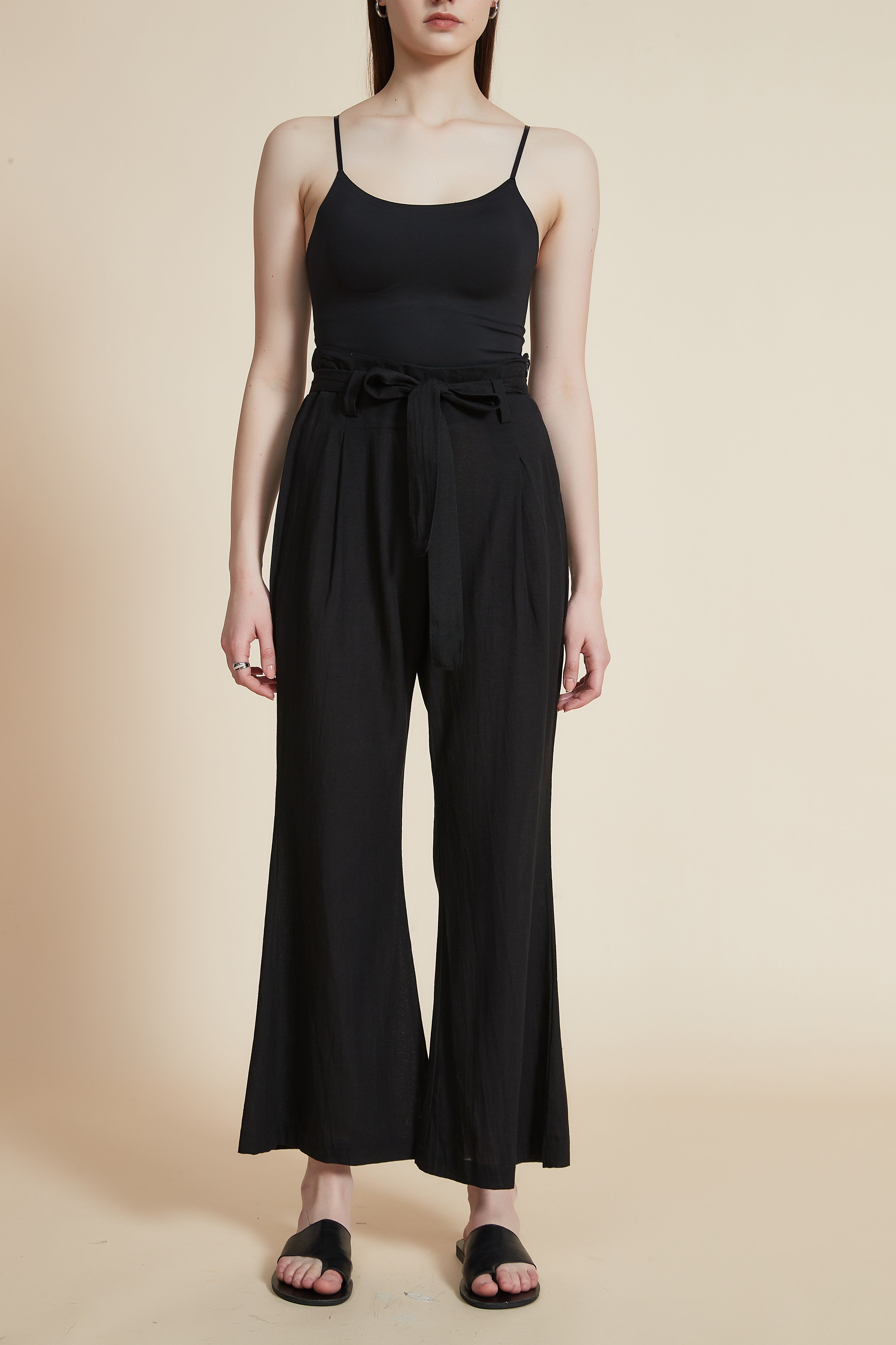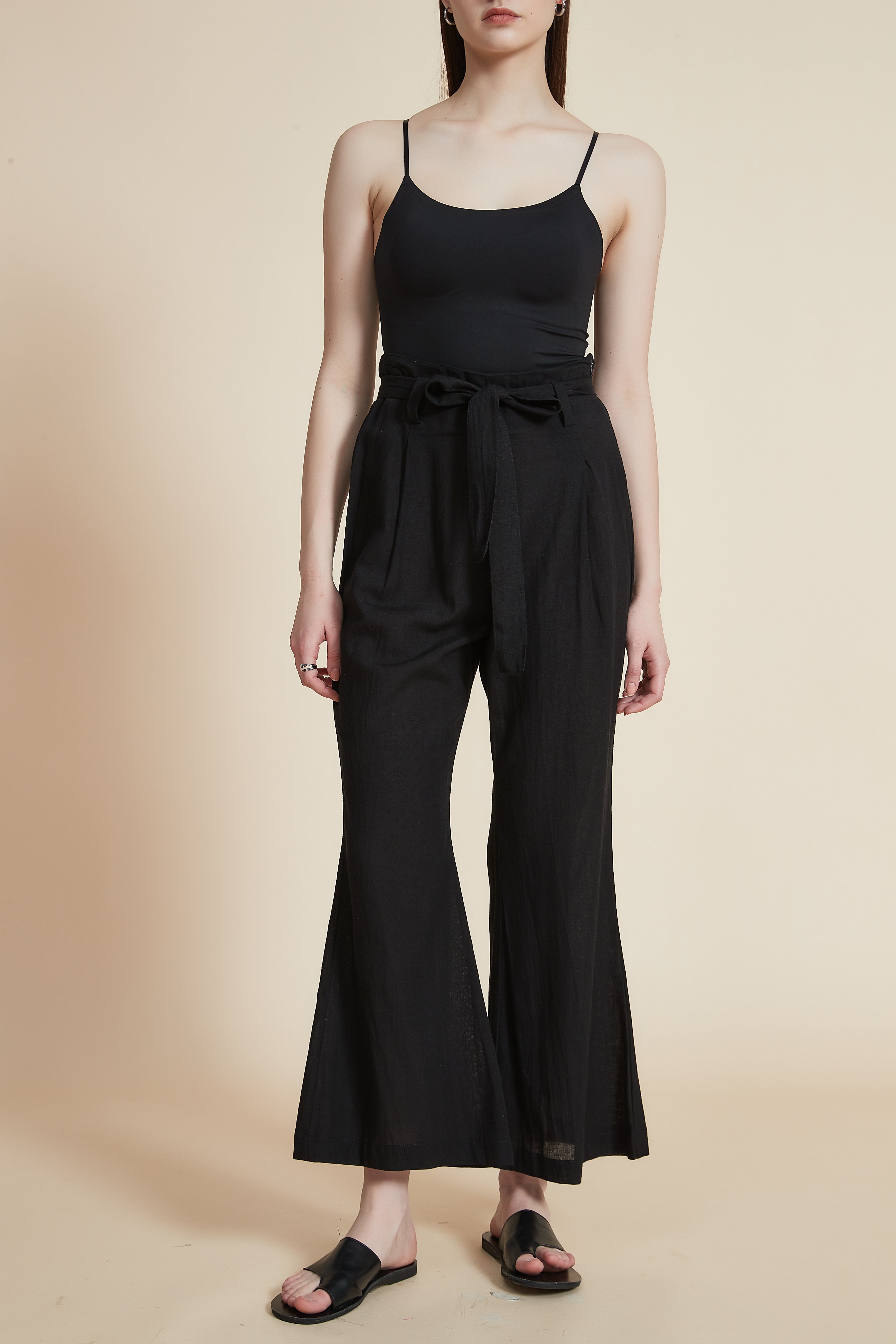 بنطلون مضلع برجل واسعة وحزام على الخصر