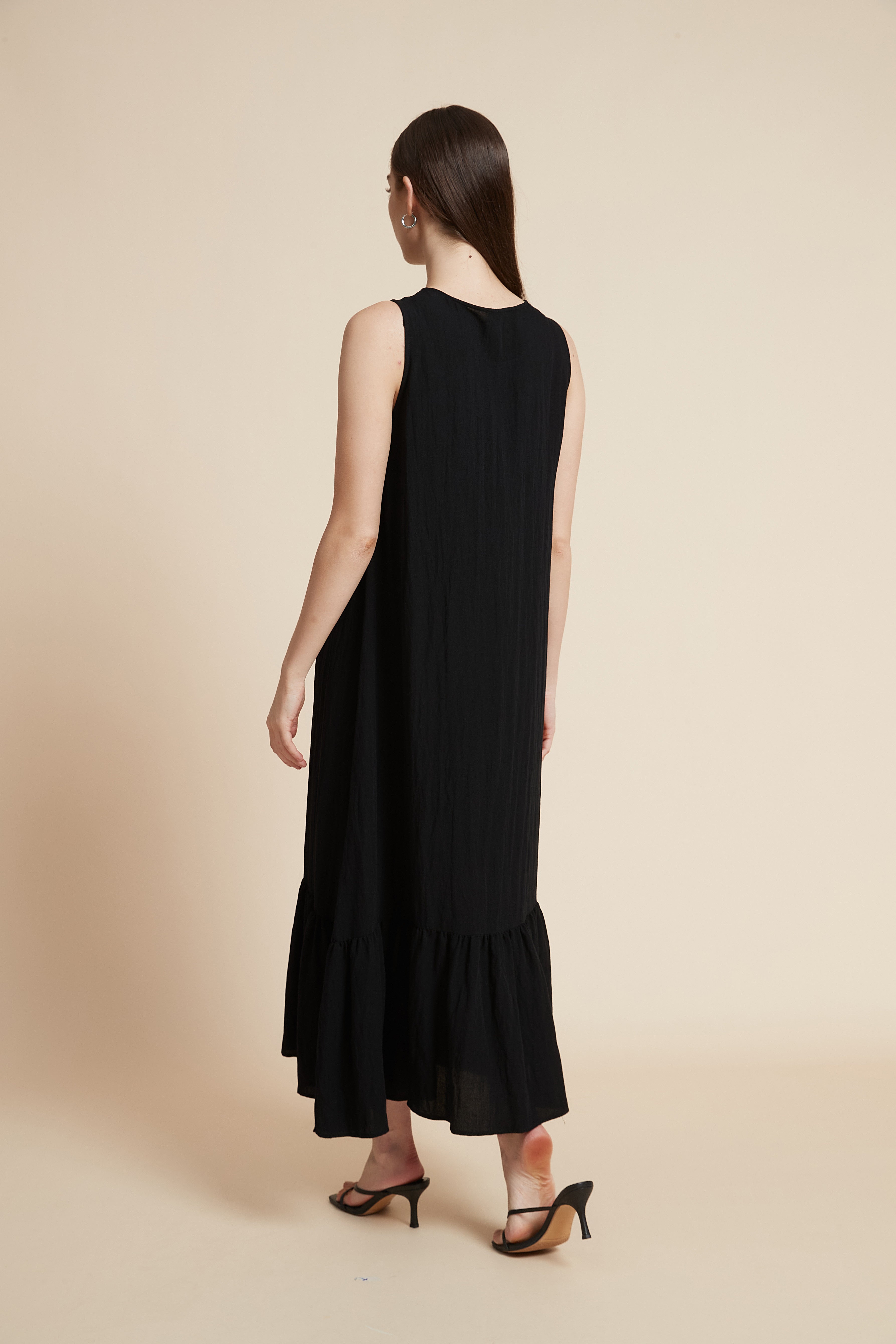لما تبحثين عن فستان يطلعك من دوامة الاختيارات اليومية، هذا الفستان الأسود بقصة A وماكسي يلمع ببساطة وأناقة مريحة. الخامة مزيج 55% كتان و45% فيسكوز فتعطيك مظهر طبيعي مع ملمس ناعم، مناسب لكل المواسم بسمك متوسط. الرقبة مستديرة بلا أكمام تمنحك إطلالة هادئة وعملية، والقصة العادية تجعله مريح للحركة. الفستان سادة بلا بطانة وبلا جيوب وبلا حزام، لذلك ستشعرين بخفة وأناقة دون تعقيد. مثالي للخروجات الكاجوال والمشاوير النهارية، وستحبين كيف يتحرك معك في المشي ويمنحك طلة عصرية ومريحة معاً. احتفظي به في خزانة الملابس للنهار والمساء بحس عملي وعصري. اعثري على مقاسك في فاشن السعودية وأضيفي هذه القطعة المتنوعة إلى خزانة ملابسك اليوم.
