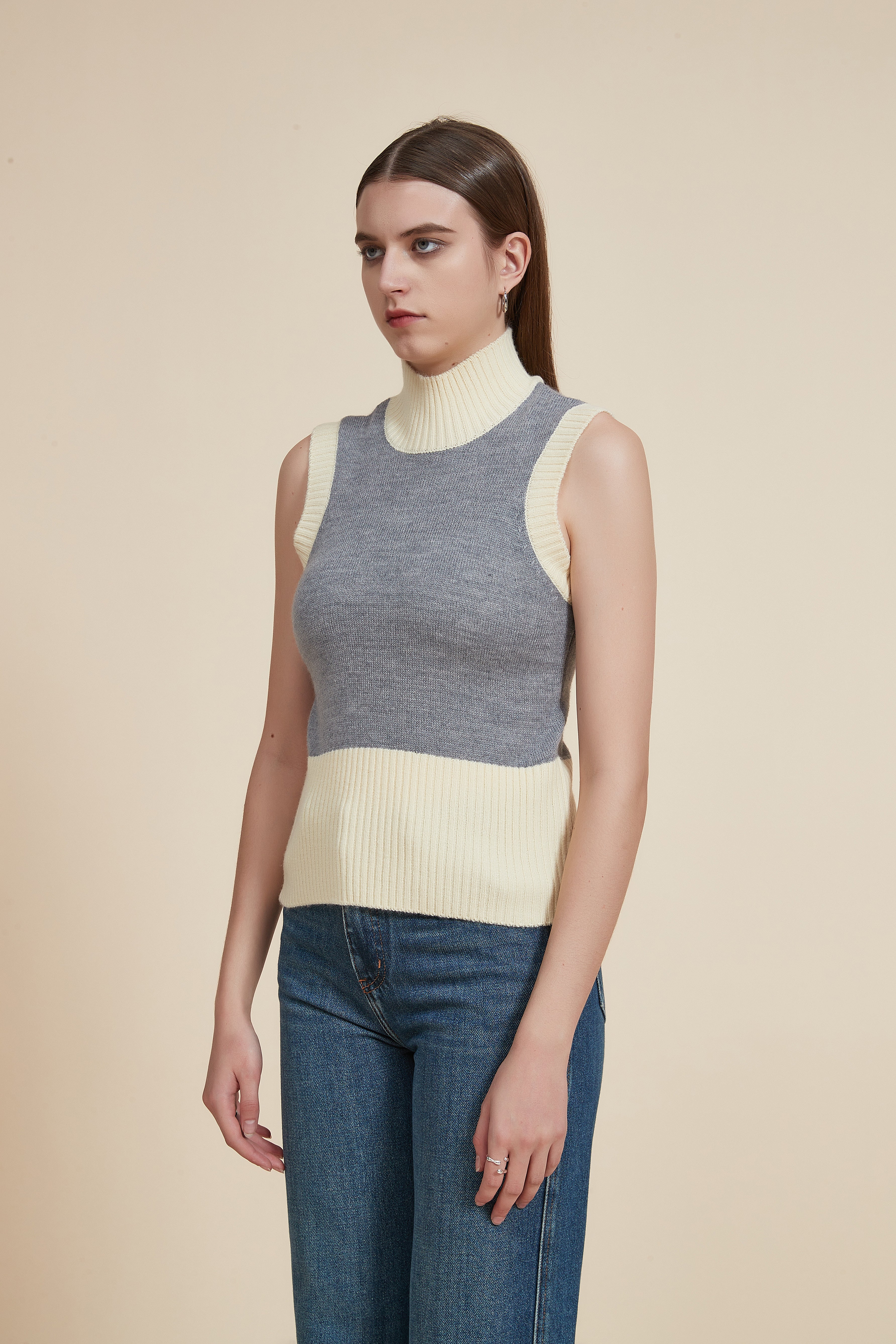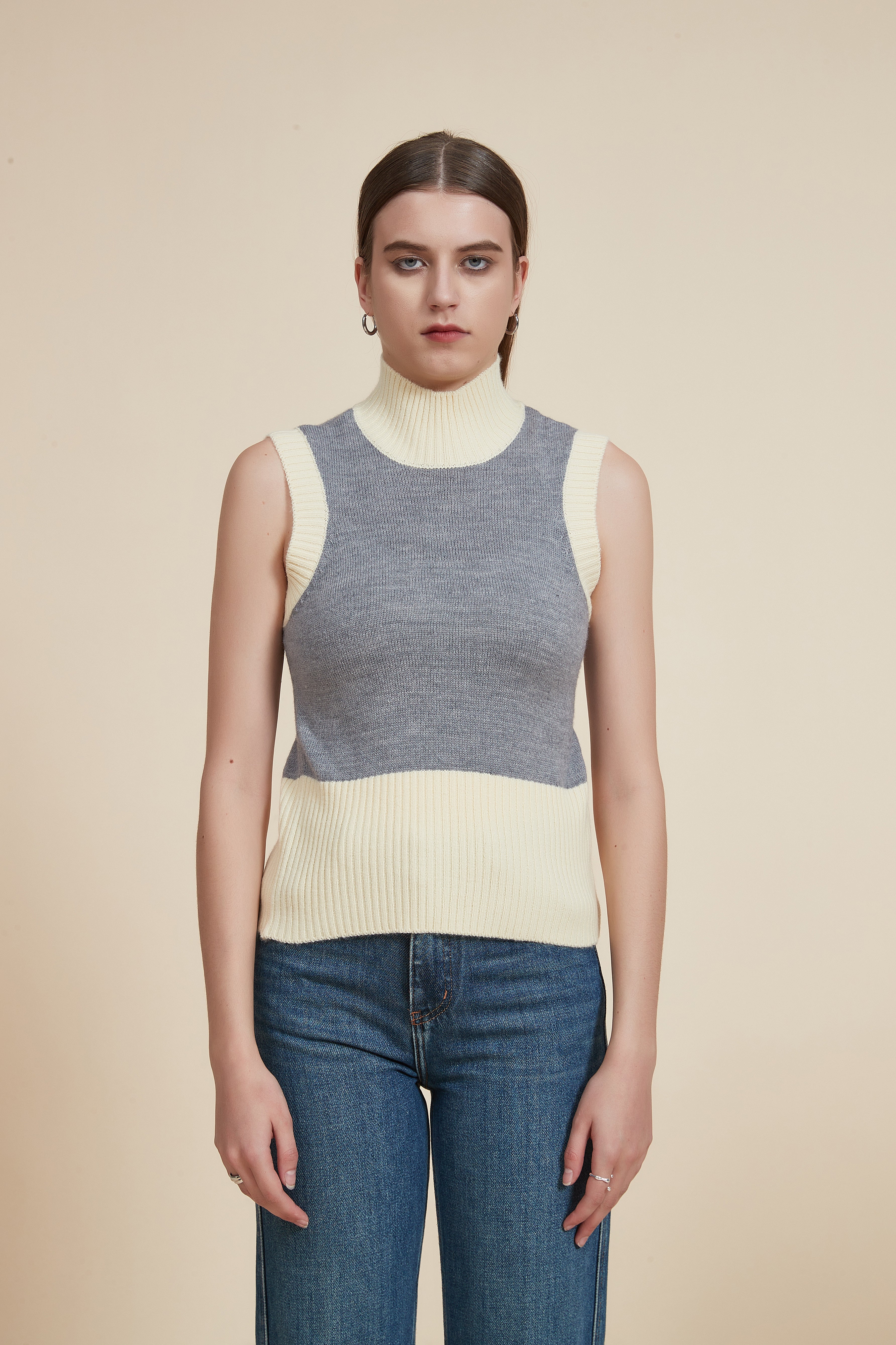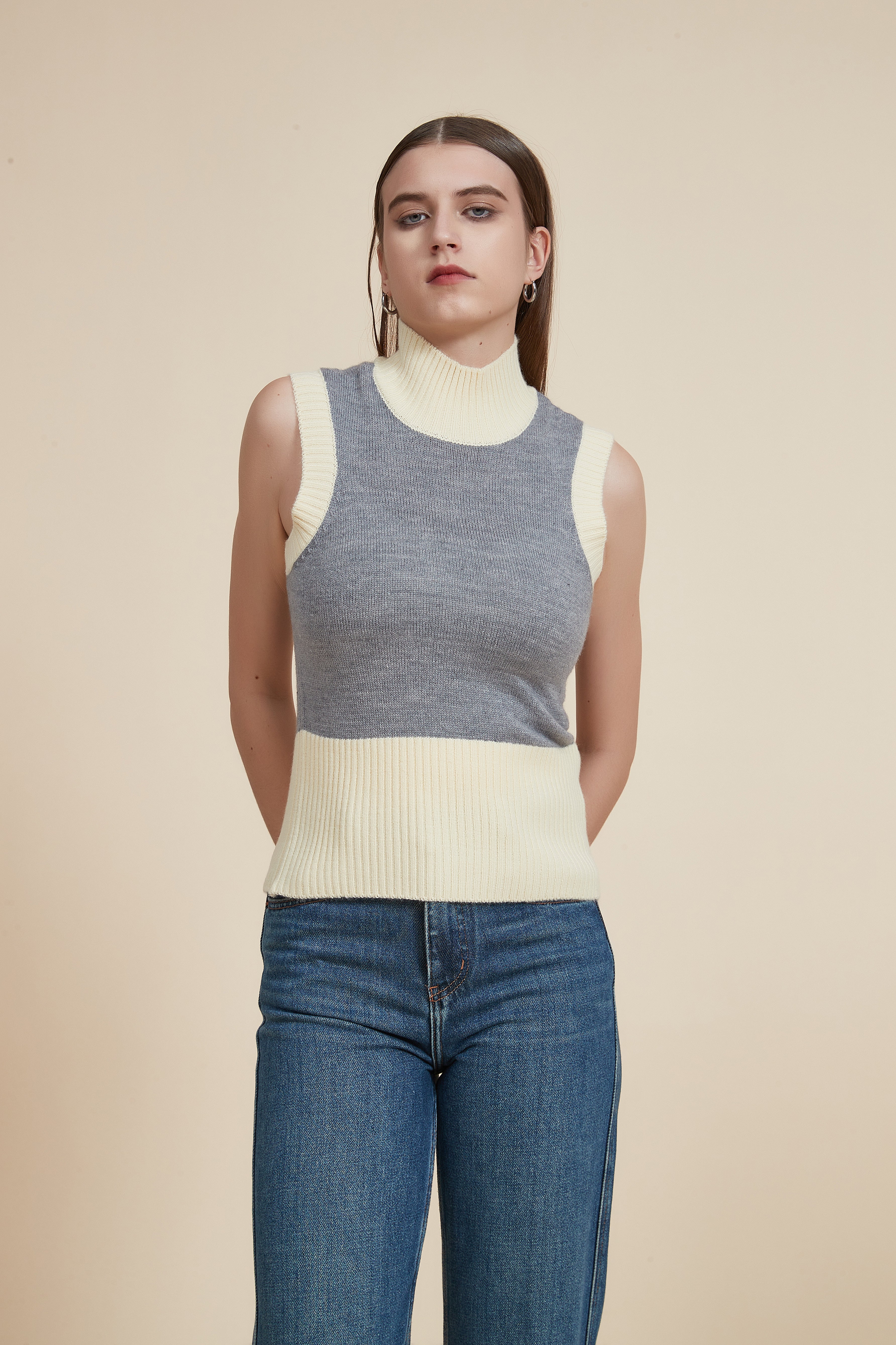 بلوزة بدون كم بلوزة بطول الخصر وياقة مرتفعة