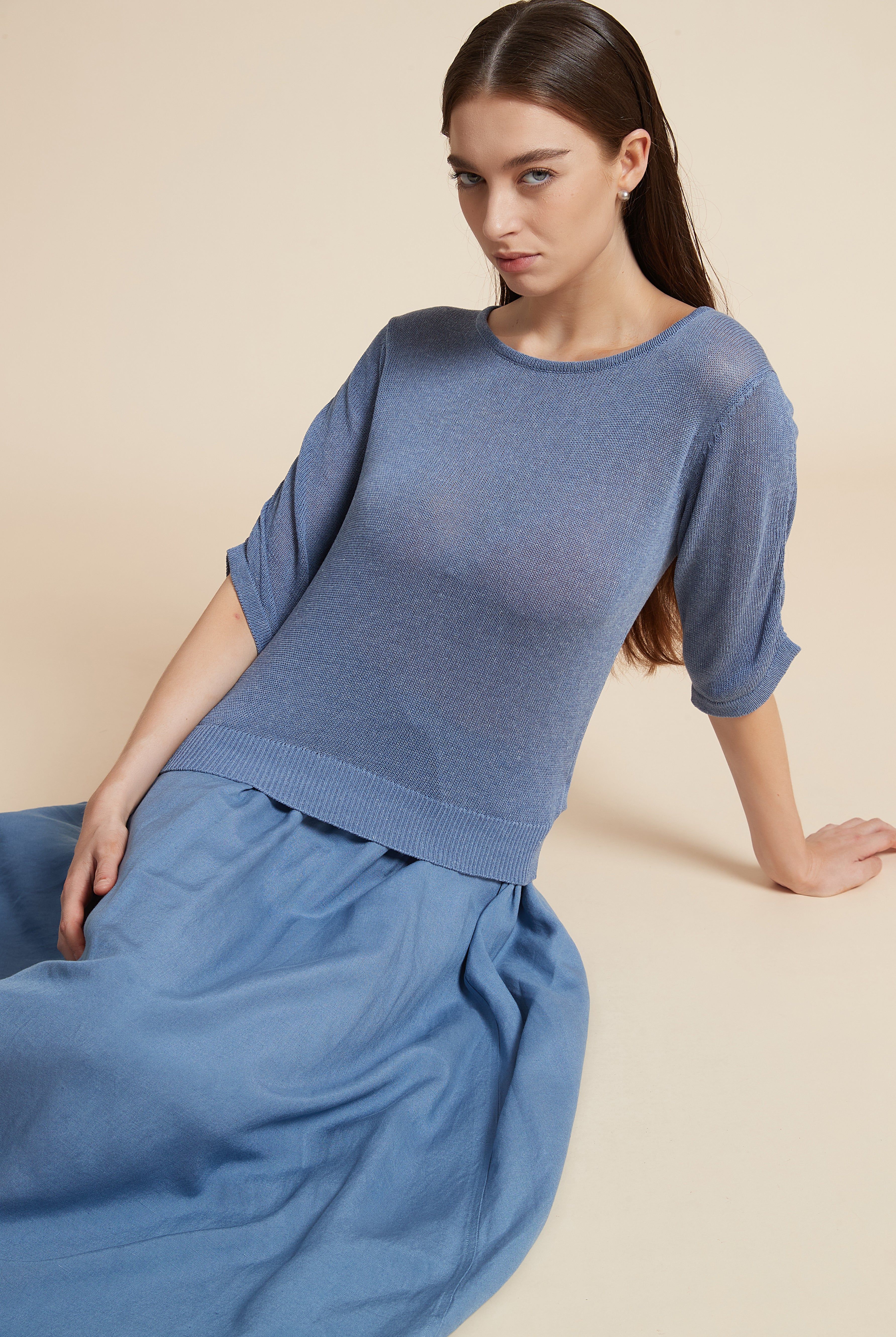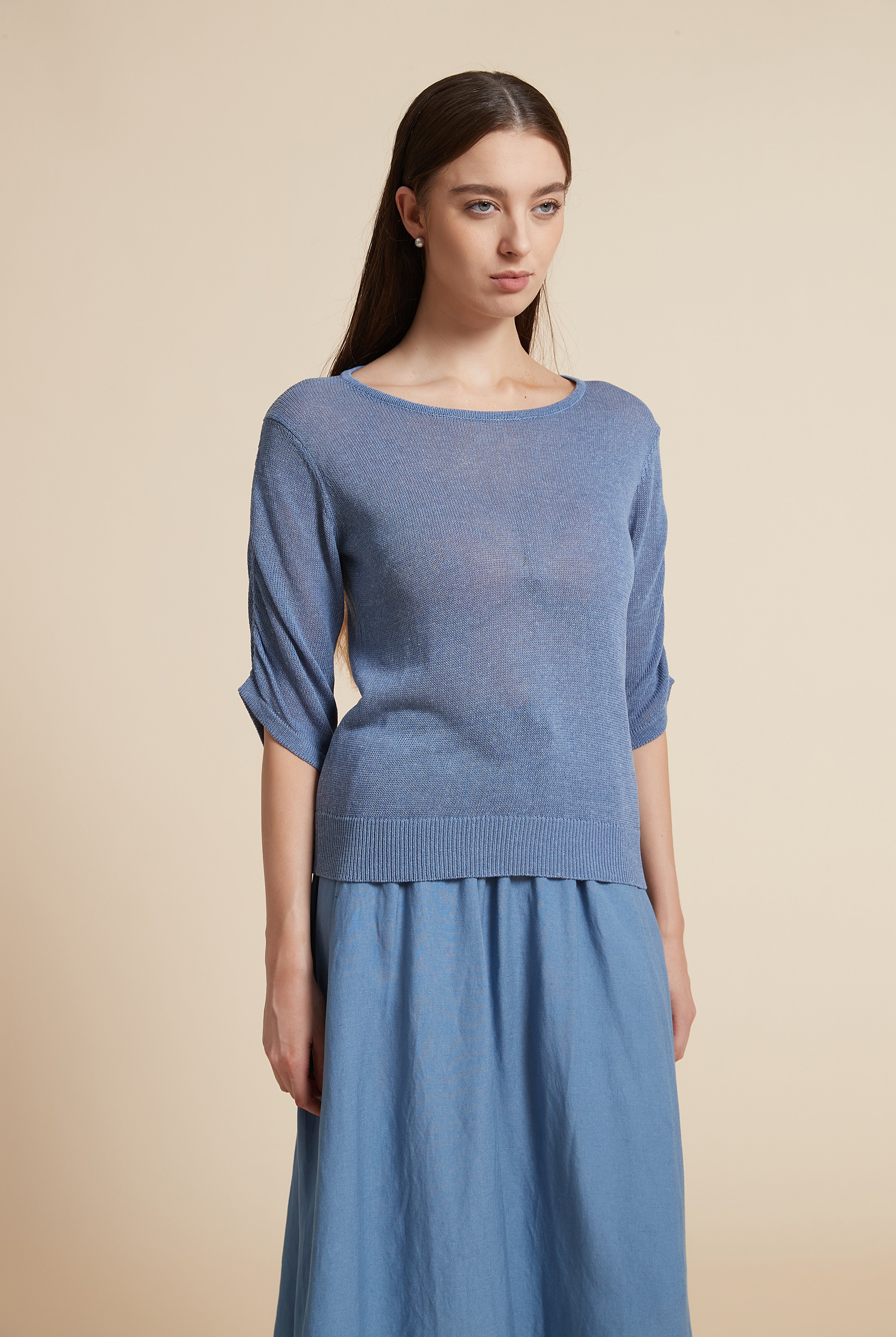 بلوزة سادة نصف كم ورقبة دائرية