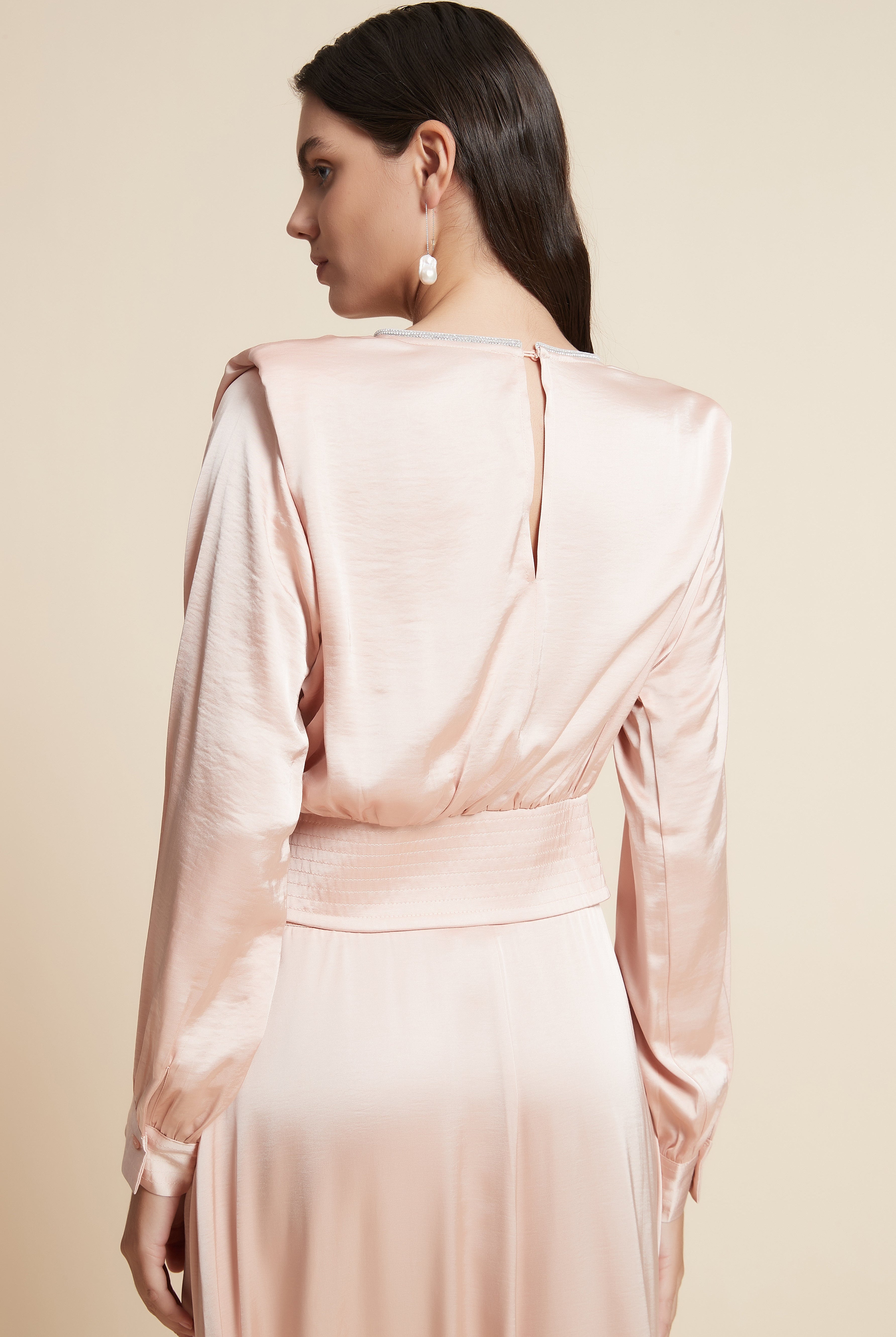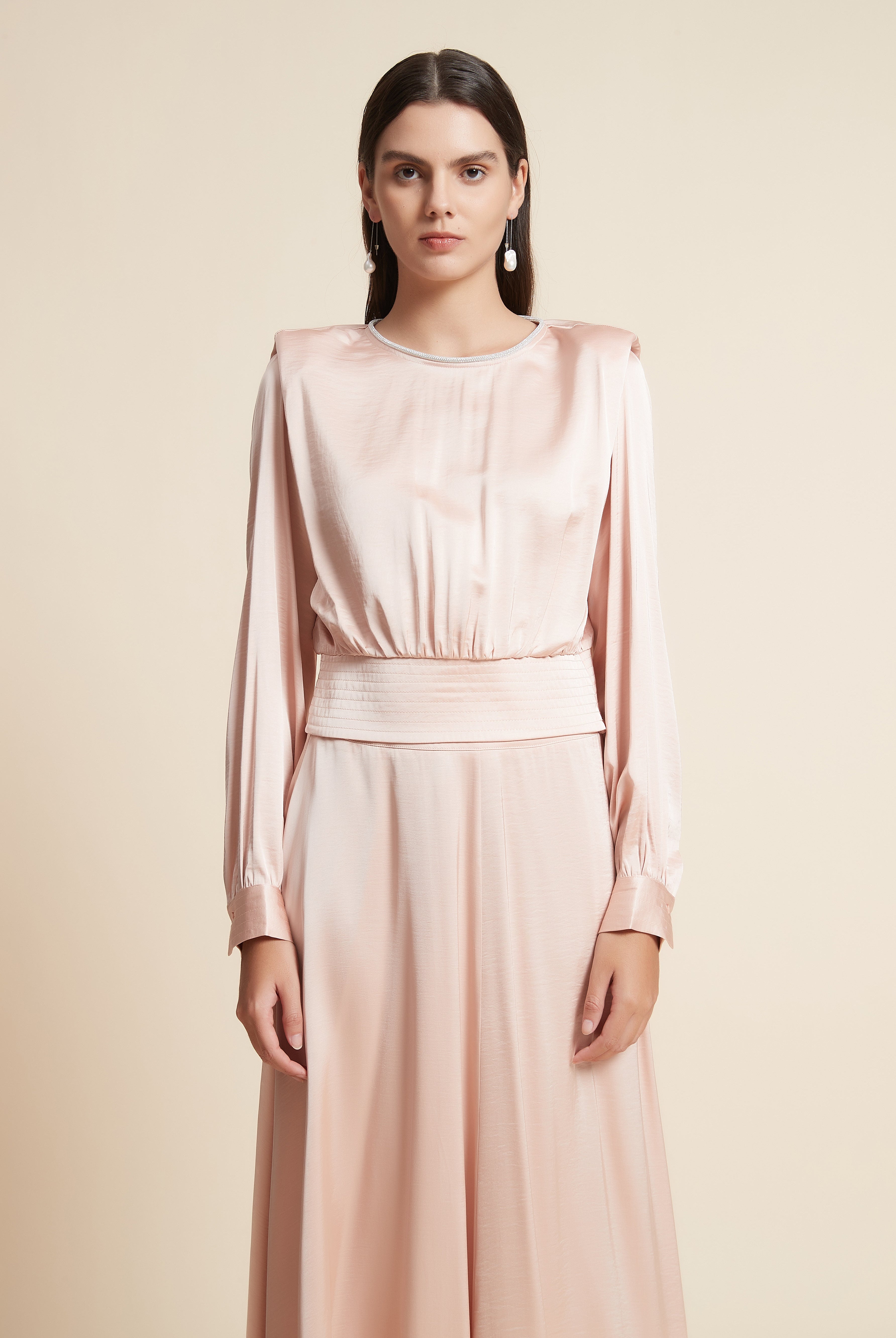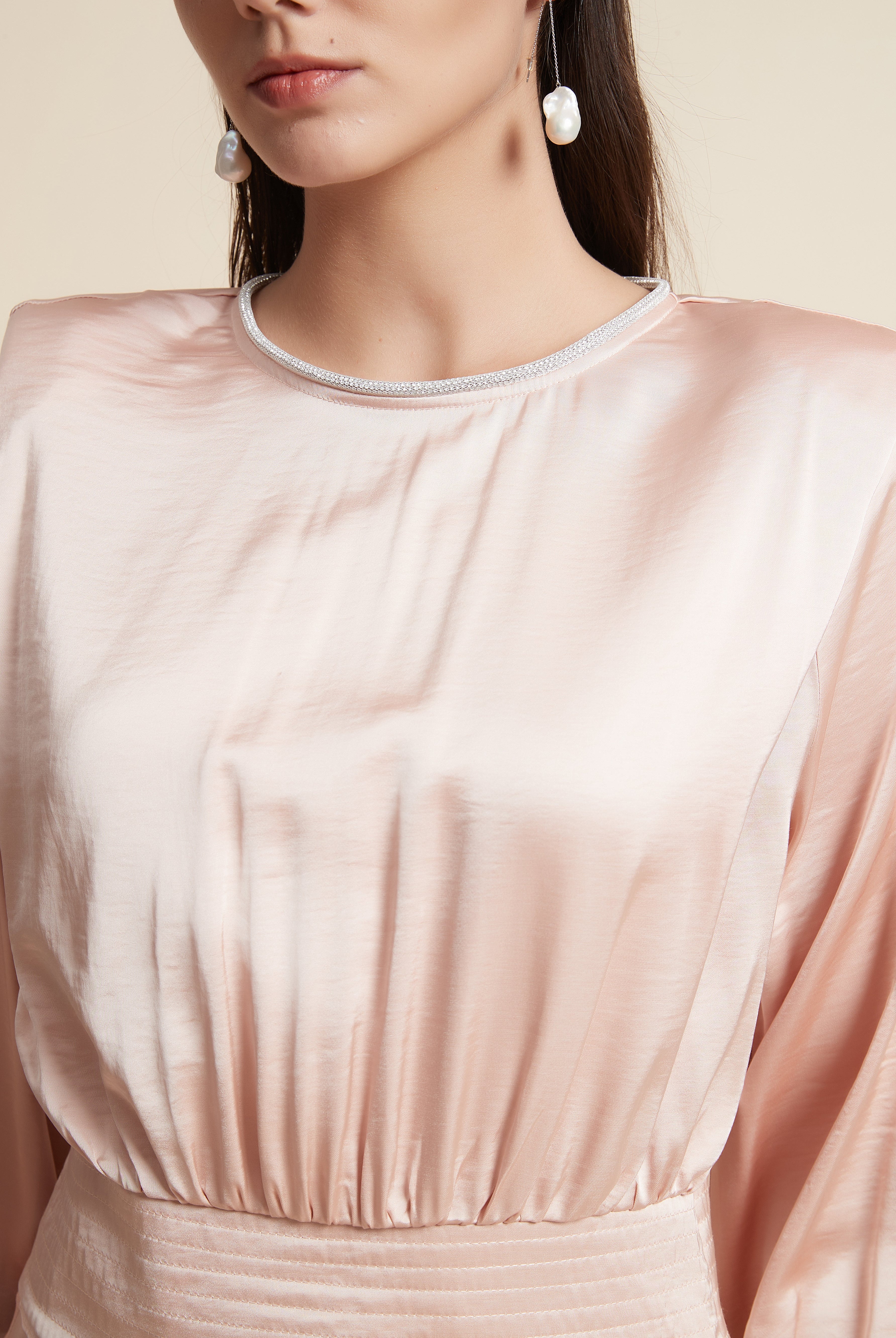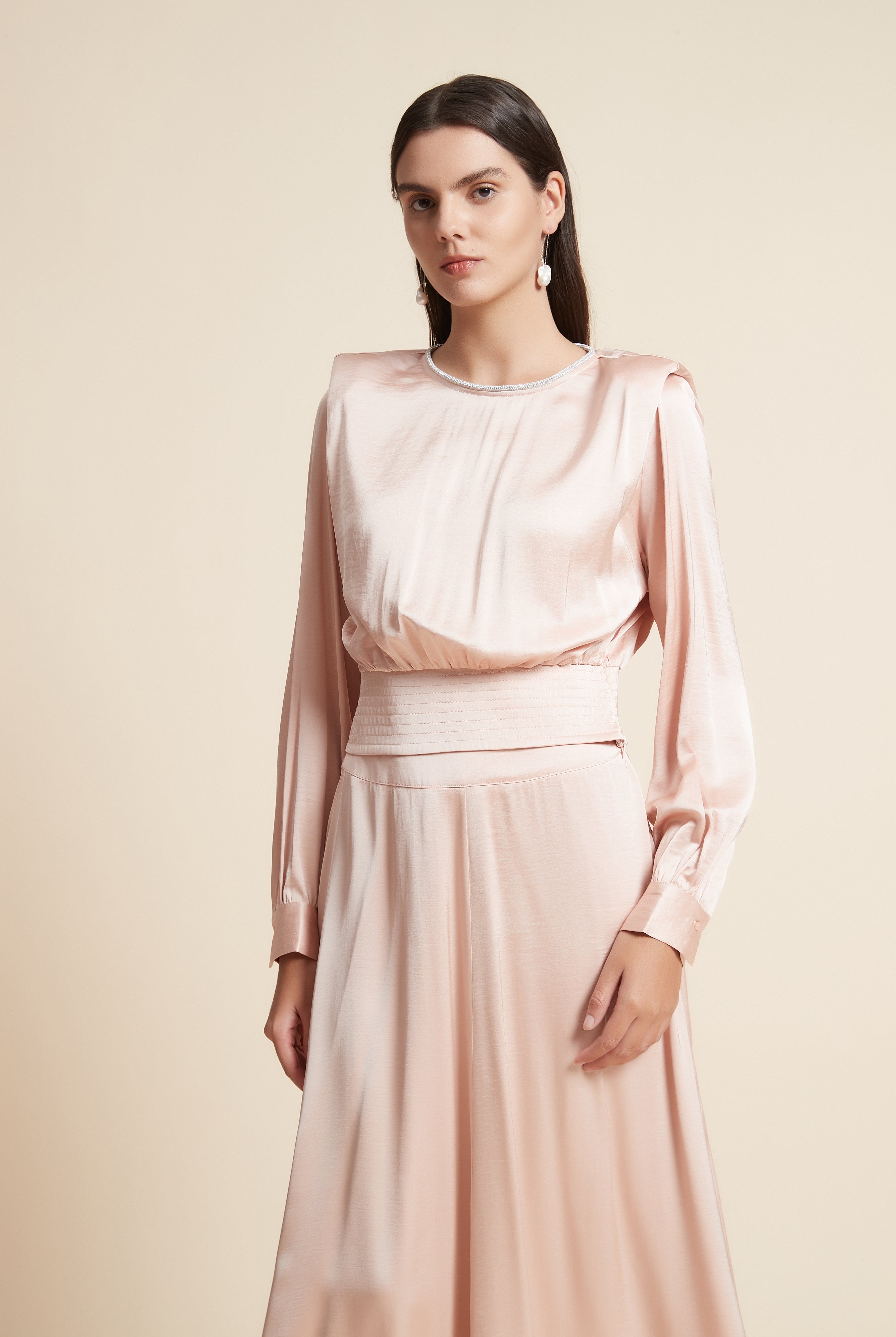 بلوزة كم طويل ساتان برقبة مربعة