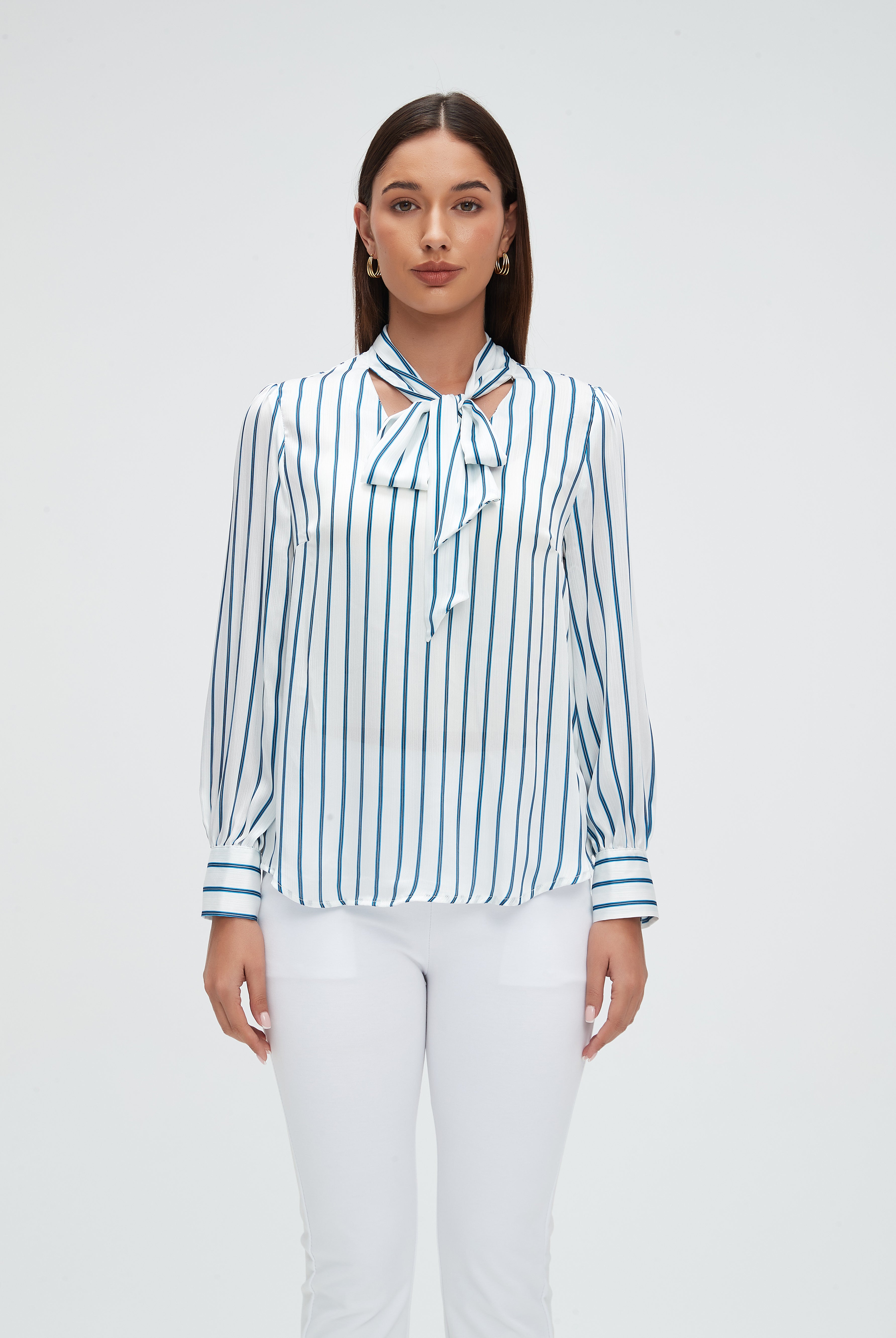 بلوزة كم طويله مخططة بالطول