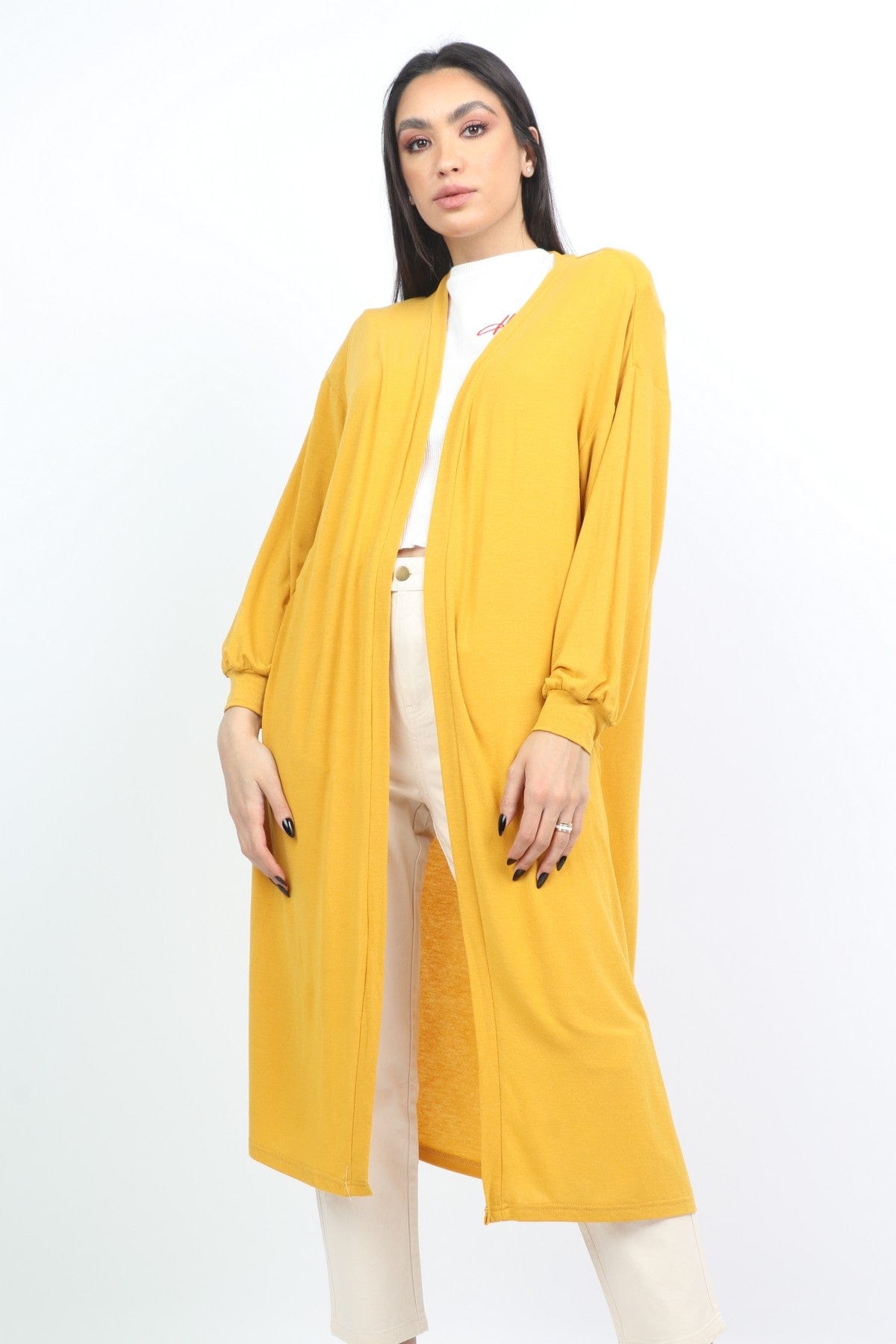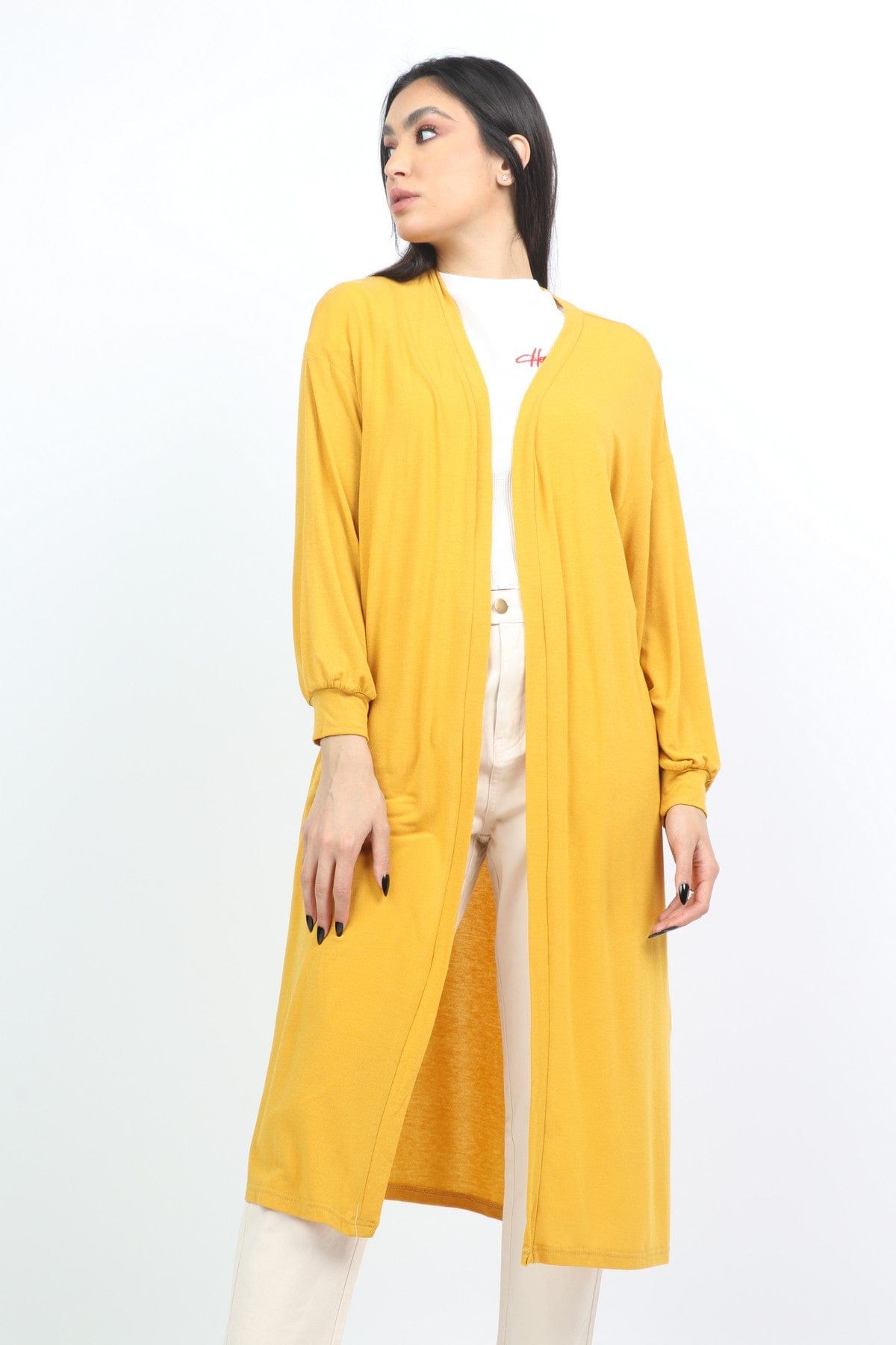 كارديجان سادة واسع طويل بأكمام طويلة