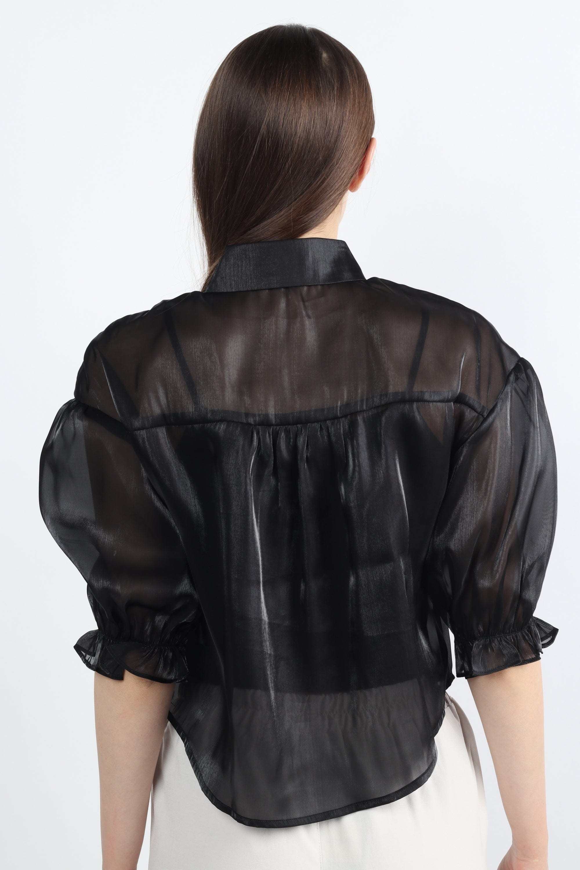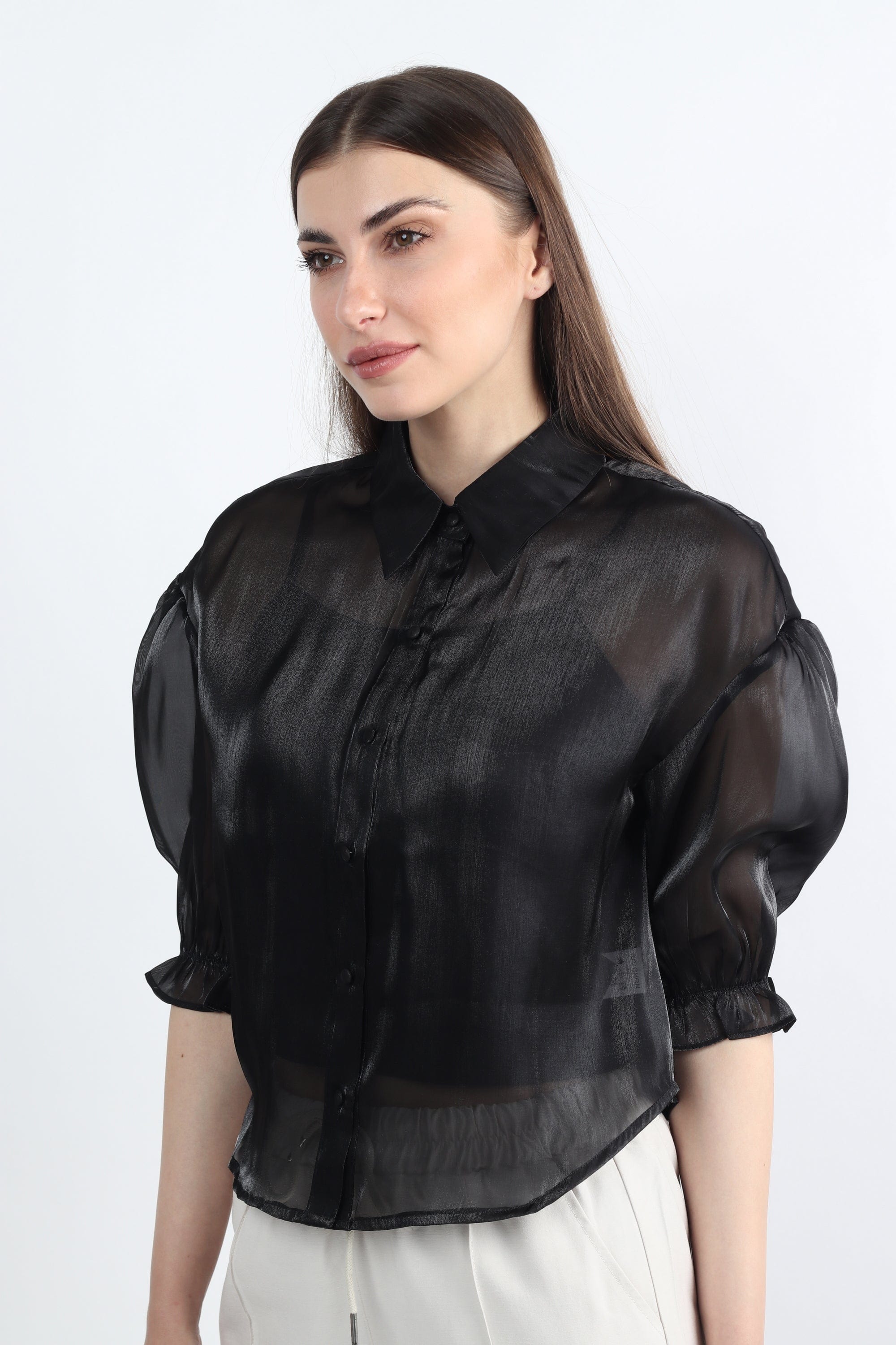 بلوزة شفافة بأكمام 3/4 بف نسائي
