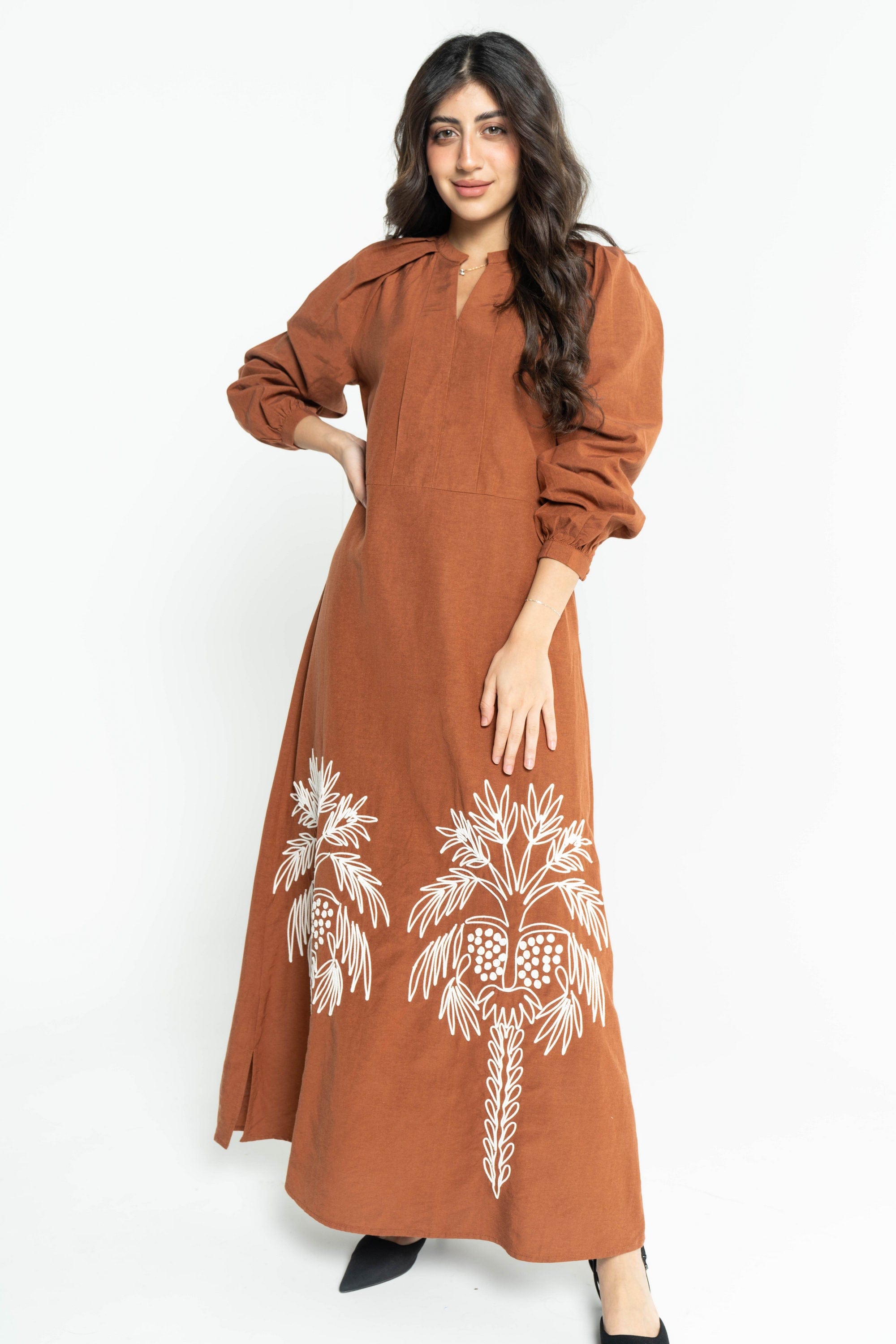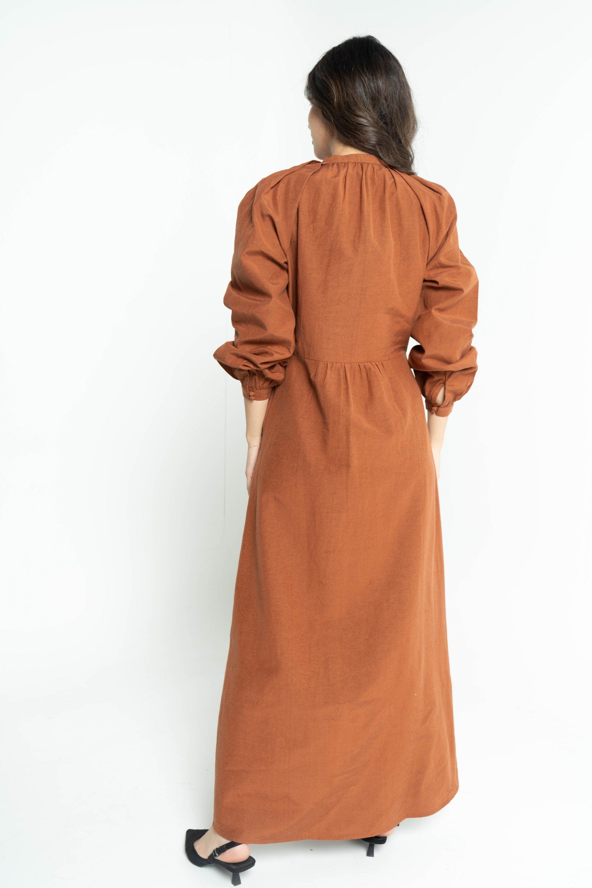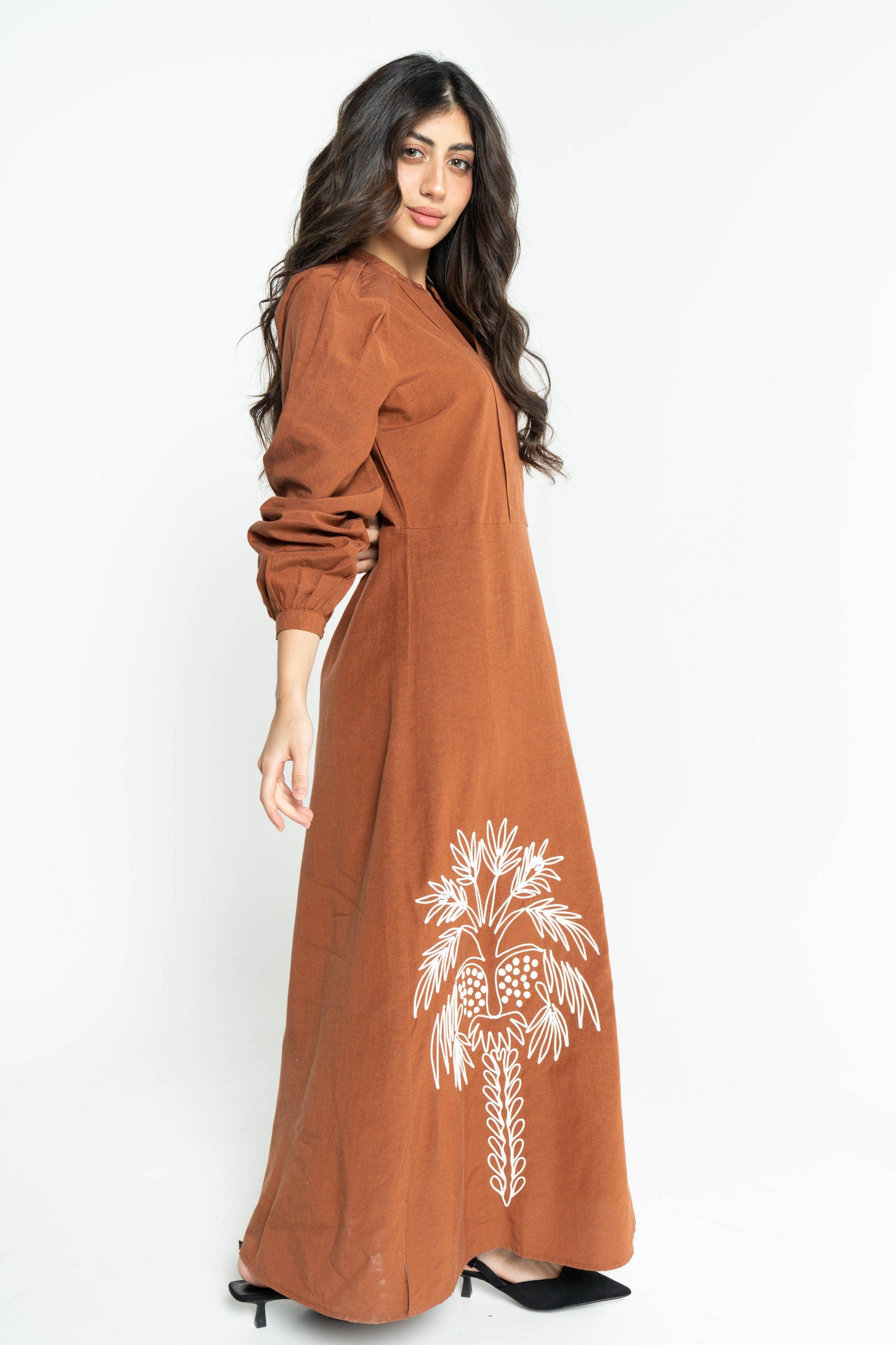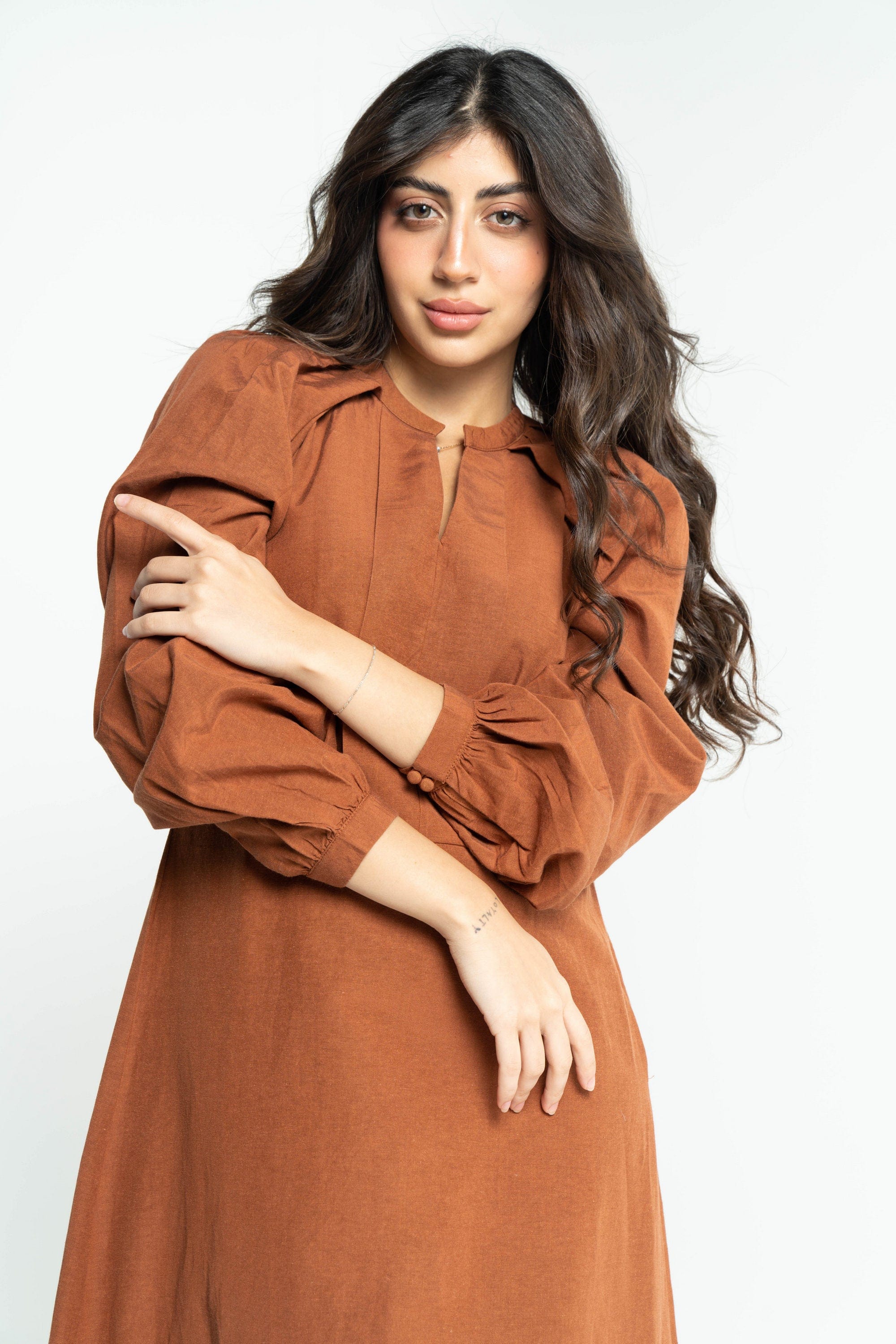 إذا تبحثين عن فستان يقدّم توازن بين الأنوثة والراحة للخروجات اليومية، فهذا الفستان بقصة A هو خيار رائع. طوله ماكسي يعطي إطلالة راقية وطويلة بينما النقشة العرقية تضيف لمسة مميزة وعصرية. ياقة مسننة تمنح تفاصيل جذابة، والأكمام المنفوشة الطويلة تضيف حيوية وحركة عند المشي. خامته متوسطة السماكة تجعله مناسباً لفصلي الربيع والخريف، وقصته العادية تناسب النساء البالغات الباحثات عن ملاءمة يومية مريحة. التصميم بدون إغلاق وبدون حزام يسهّل ارتداؤه ويتيح لكِ إمكانيات تنسيقه—من صنادل نهارية بسيطة إلى بوت منخفض للمساء. لونه البني يسهّل مزجه مع إكسسوارات دافئة ويجعل الفستان عملياً لخزانتك الكاجوال. اعثري على مقاسك في فاشن السعودية وأضيفي هذه القطعة المتنوعة إلى خزانة ملابسك اليوم.
