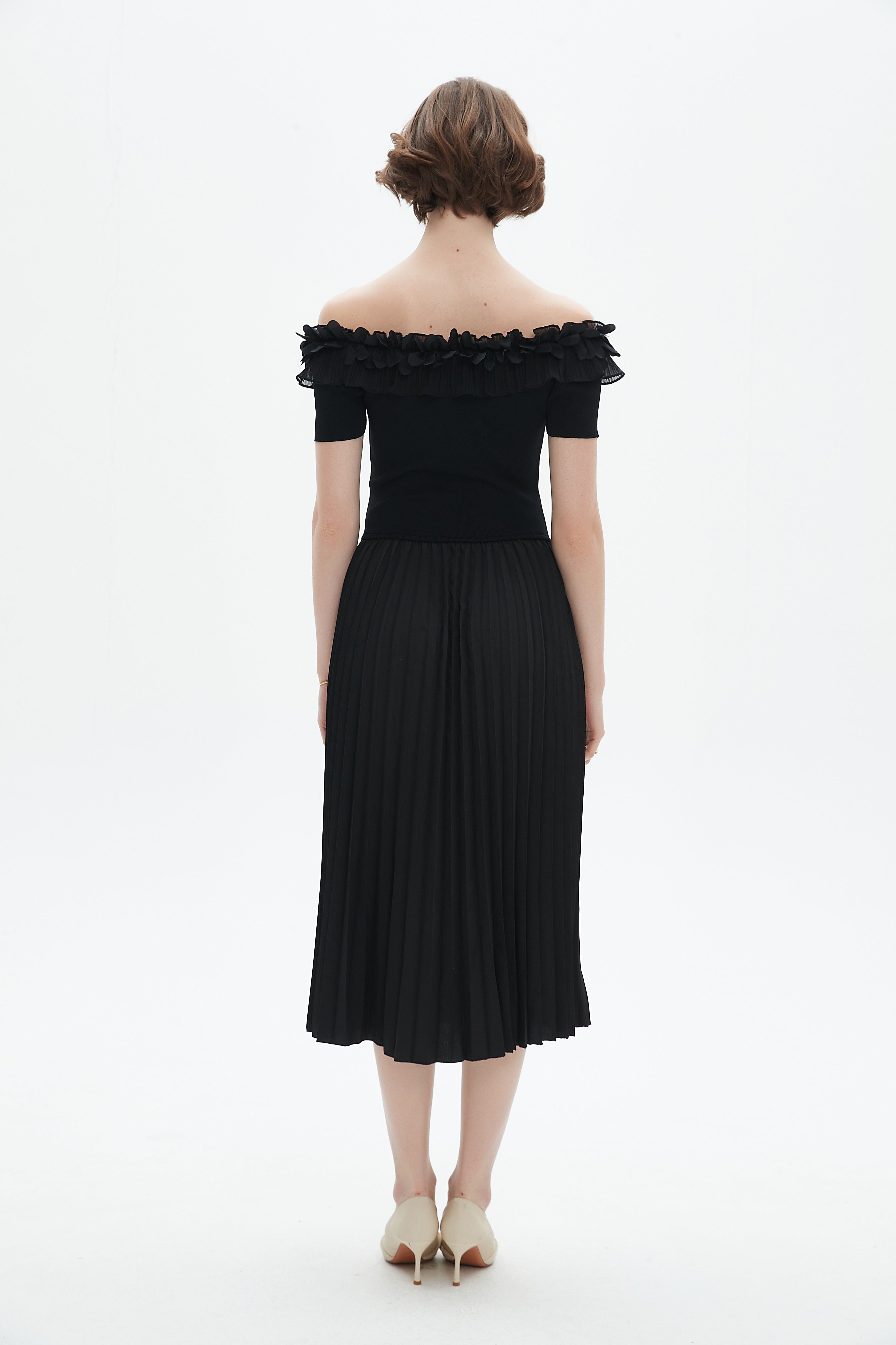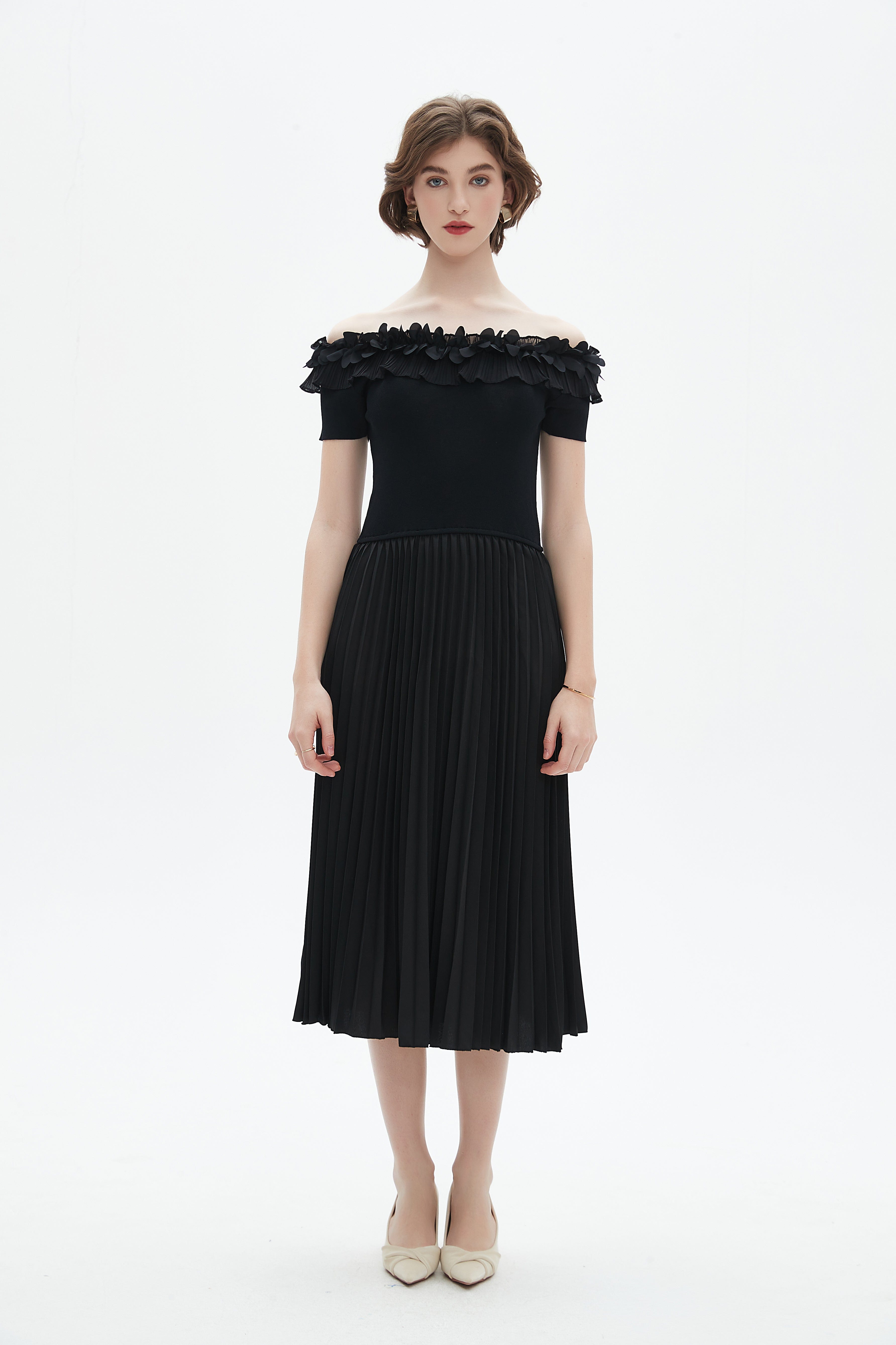 فستان نسائي ميدي أوف شولدر بليسيه سادة