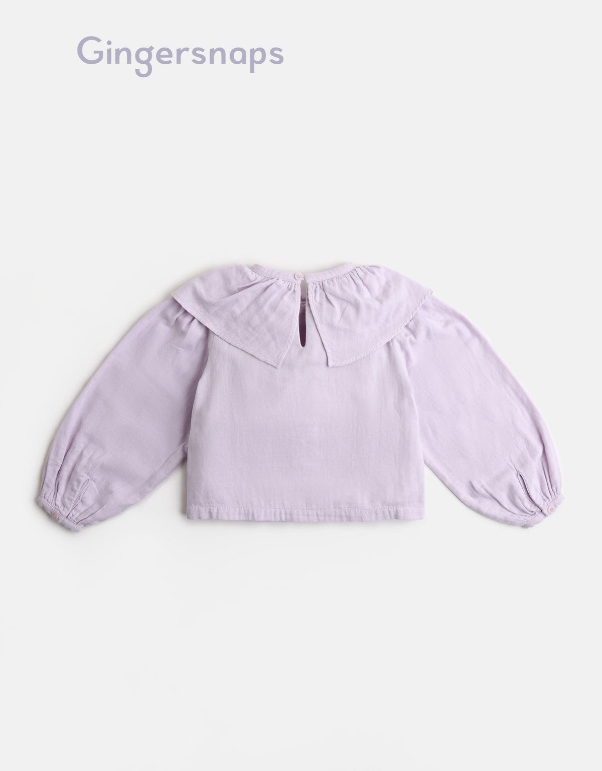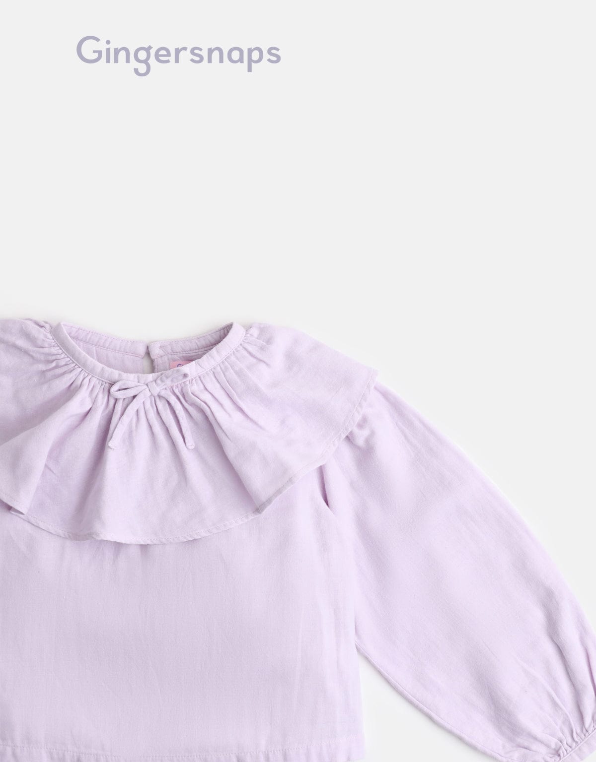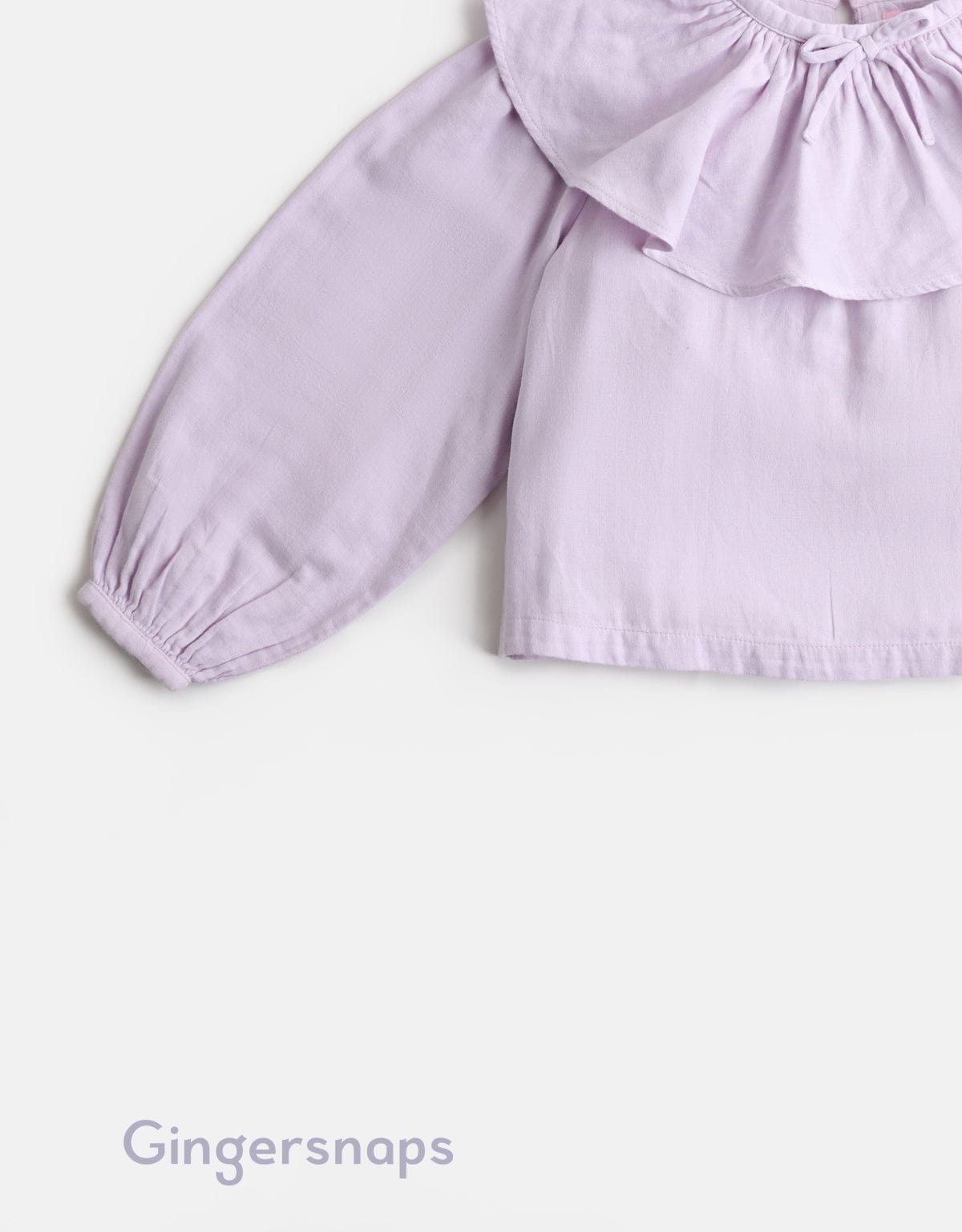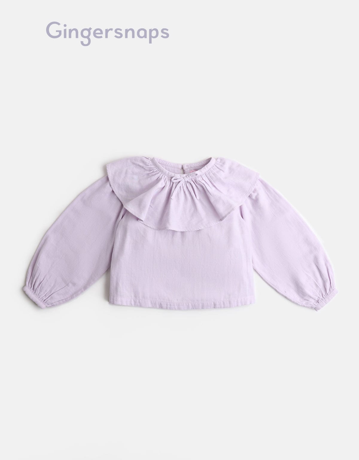 بلوزة سادة ياقة مكشكشة كم طويل بف بناتي