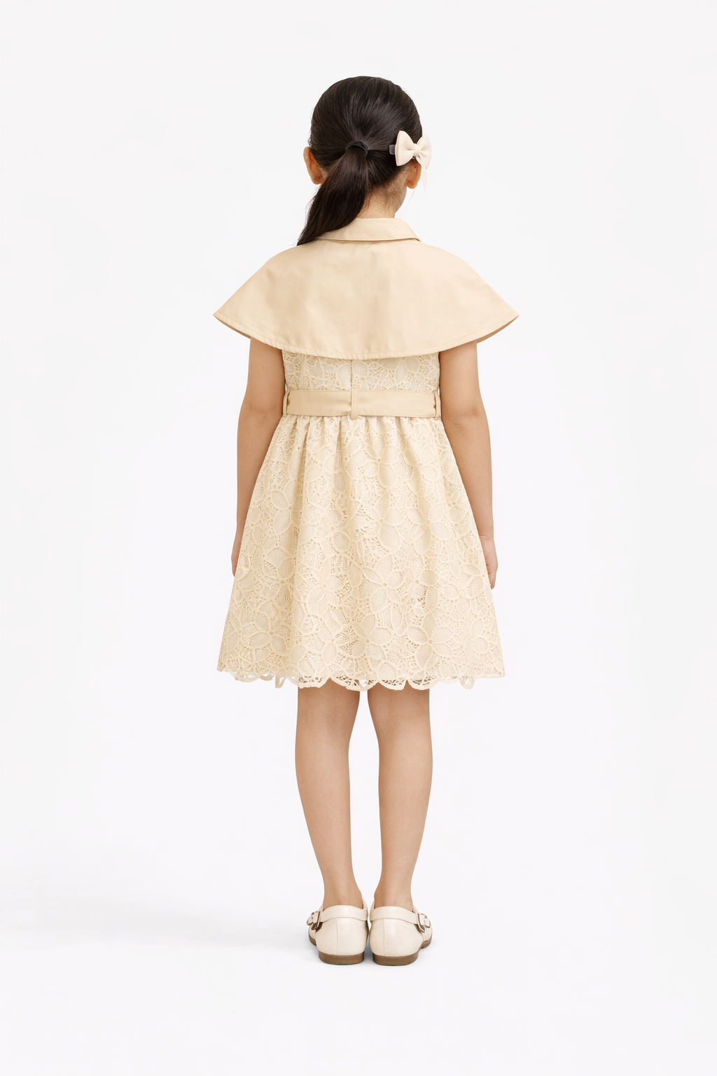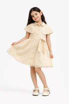 فستان بناتي منسوج دانتيل نص كم بأزرار أمامية