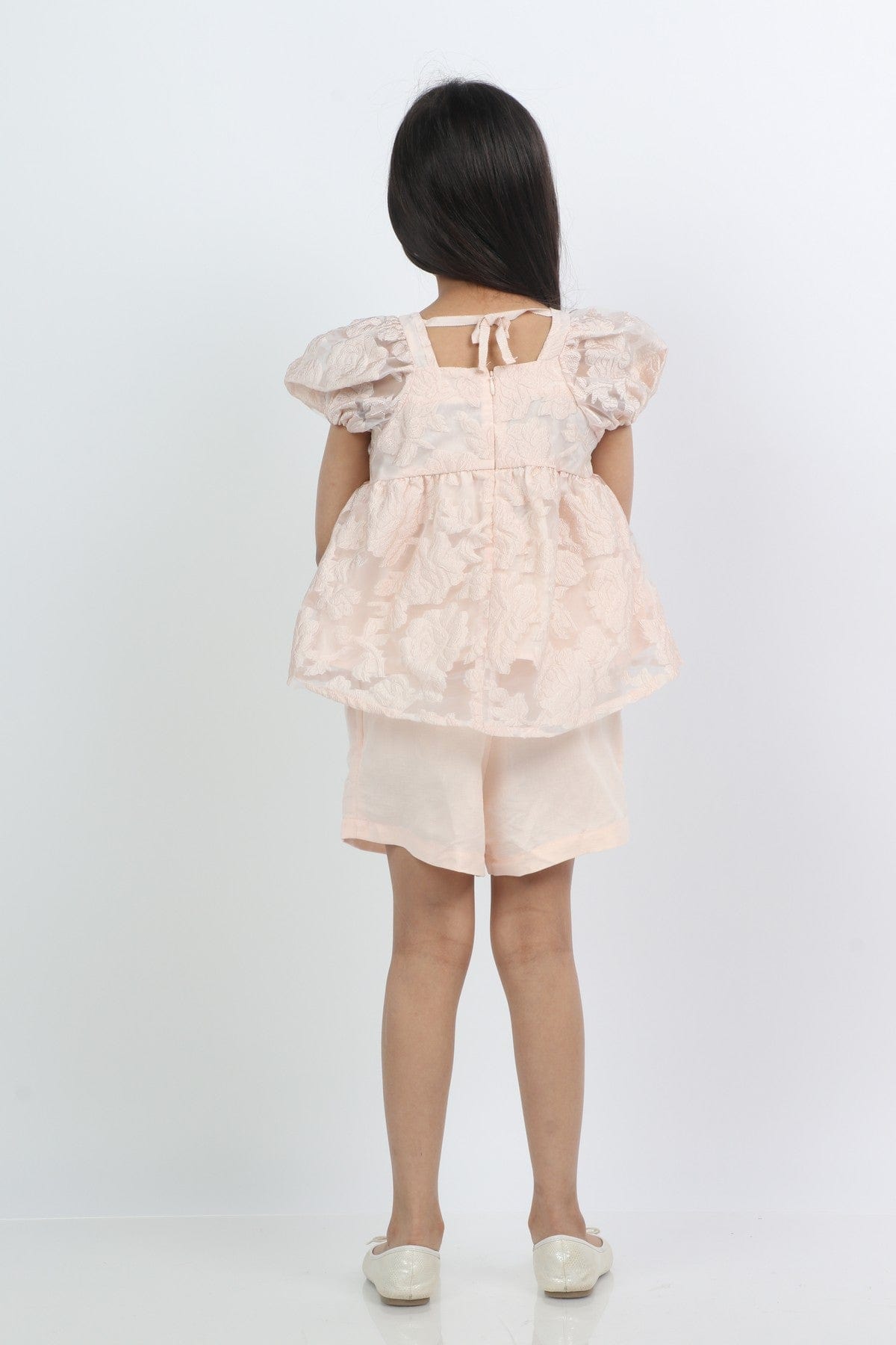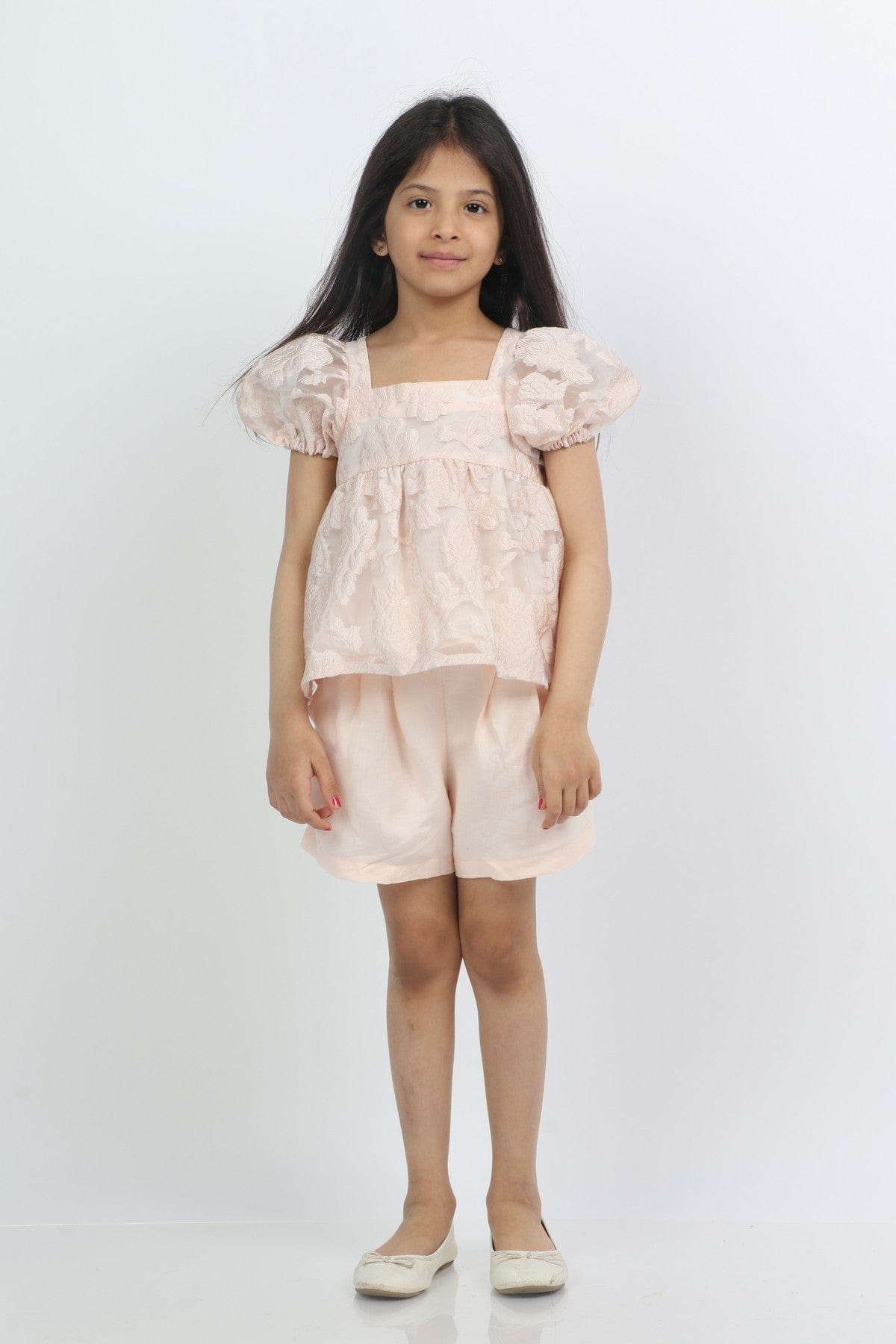 طقم شورت بناتي سادة وبلوزة شفافة نص كم بف