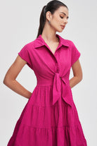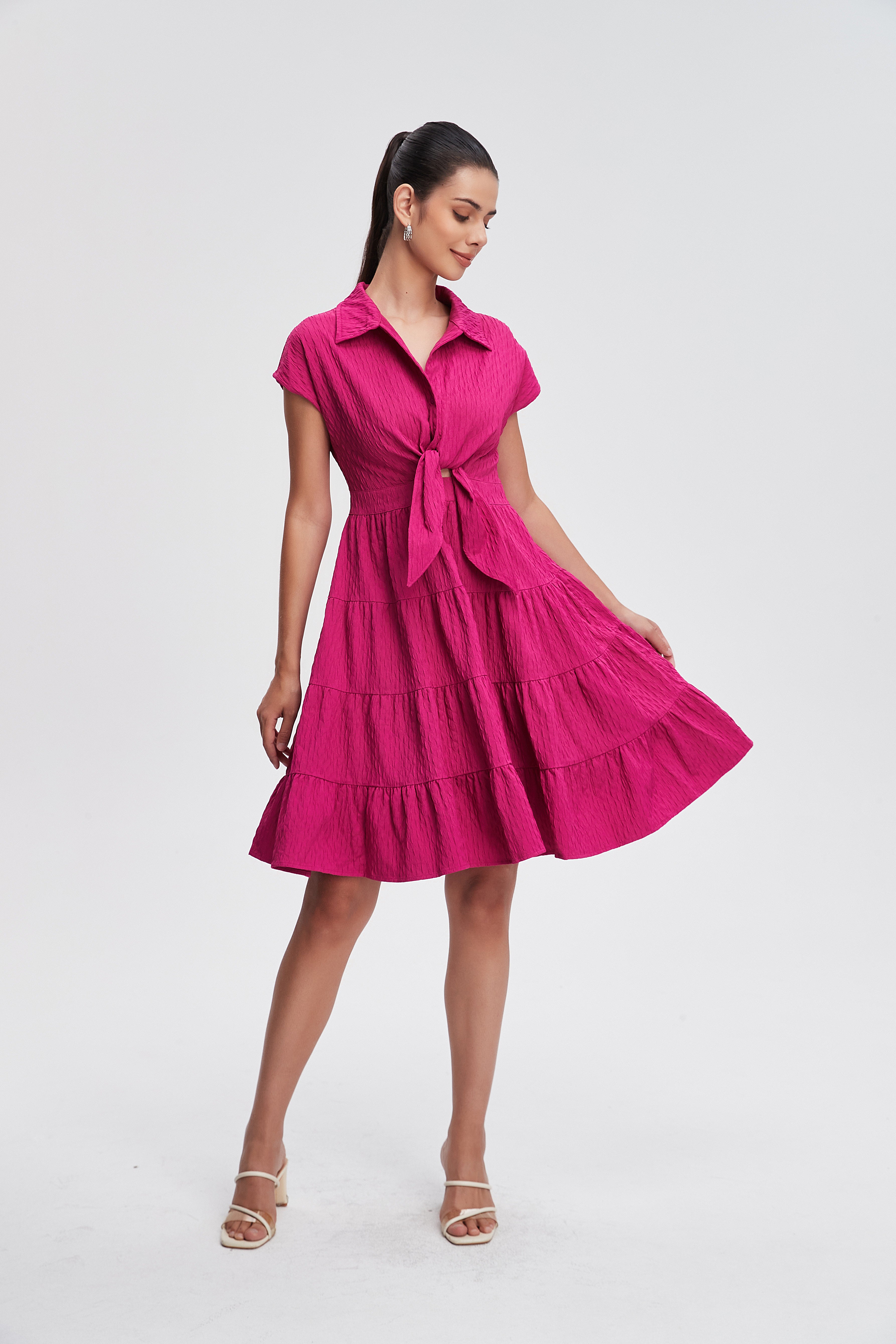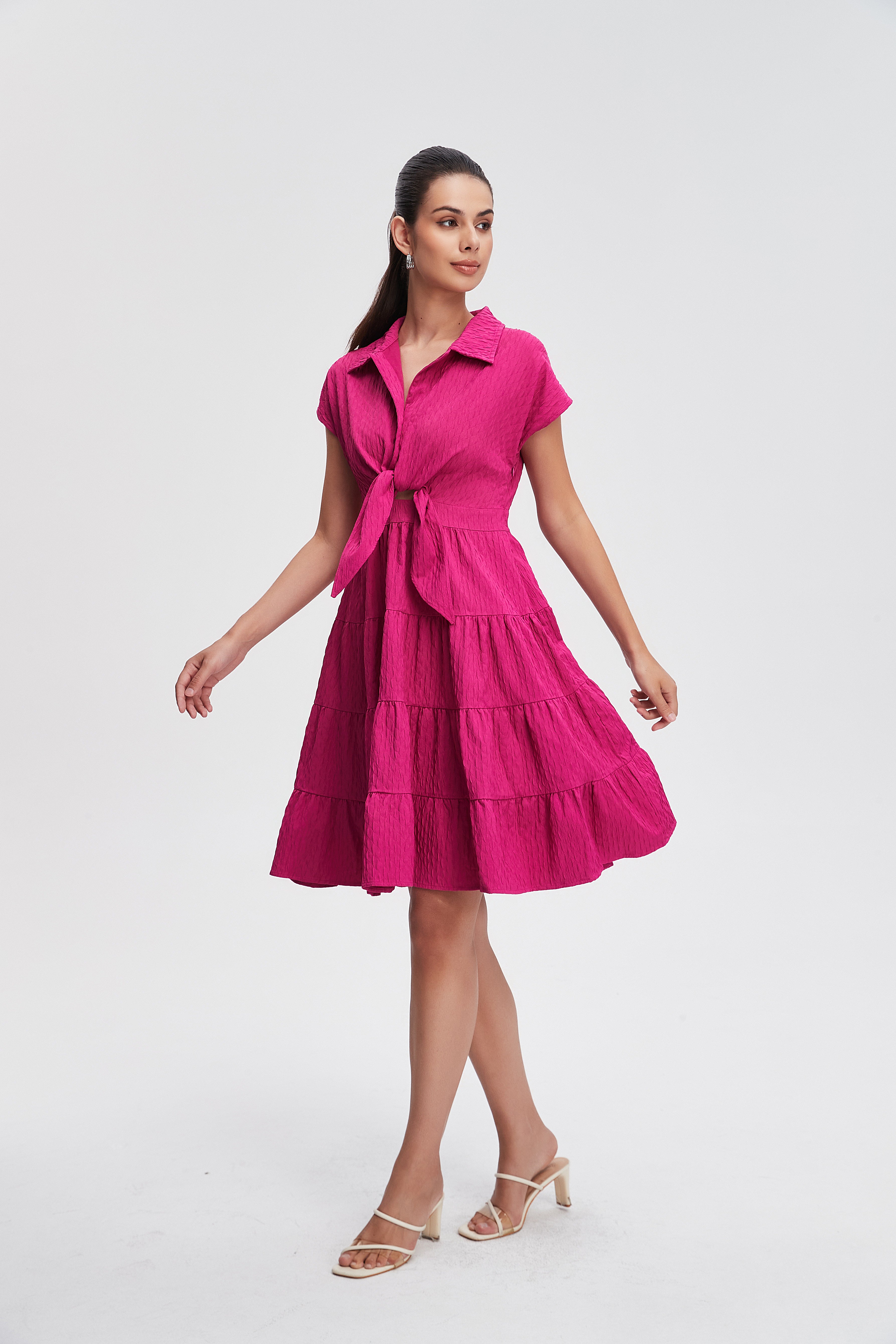 تبحثين عن فستان وردي للصيف يشعر بالأنوثة وفي نفس الوقت عملي؟ هذا الفستان بقصة A سيمنحك شكل أنيق ومريح، وياقة قميص تضيف لمسة كلاسيكية تناسب الخروجات اليومية والمناسبات الكاجوال. الخامة بوليستر 100% تمنحك قطعة خفيفة ومتينة تحافظ على اللون وتقاوم التجاعيد، وسماكتها المتوسطة مناسبة لأجواء الصيف. الأكمام القصيرة تجعله مريحًا في الحر، والإغلاق بزِرّ يسهل اللبس. الفستان سادة وخالي من الطباعة والبطانة والجيوب، ما يجعله خفيفاً وحركته أنثوية. مع الحزام المرفق يمكنك تحديد الخصر لمنظر أكثر أناقة. ستحبين كيف يناسب الخزانة الصيفية للخروجات الرومانسية أو لقاءات القهوة، وقصته العادية تجعله خيارًا يوميًّا يبقى عمليًا وأنيقًا. اعثري على مقاسك في فاشن السعودية وأضيفي هذه القطعة المتنوعة إلى خزانة ملابسك اليوم.