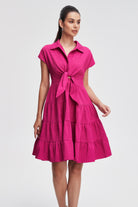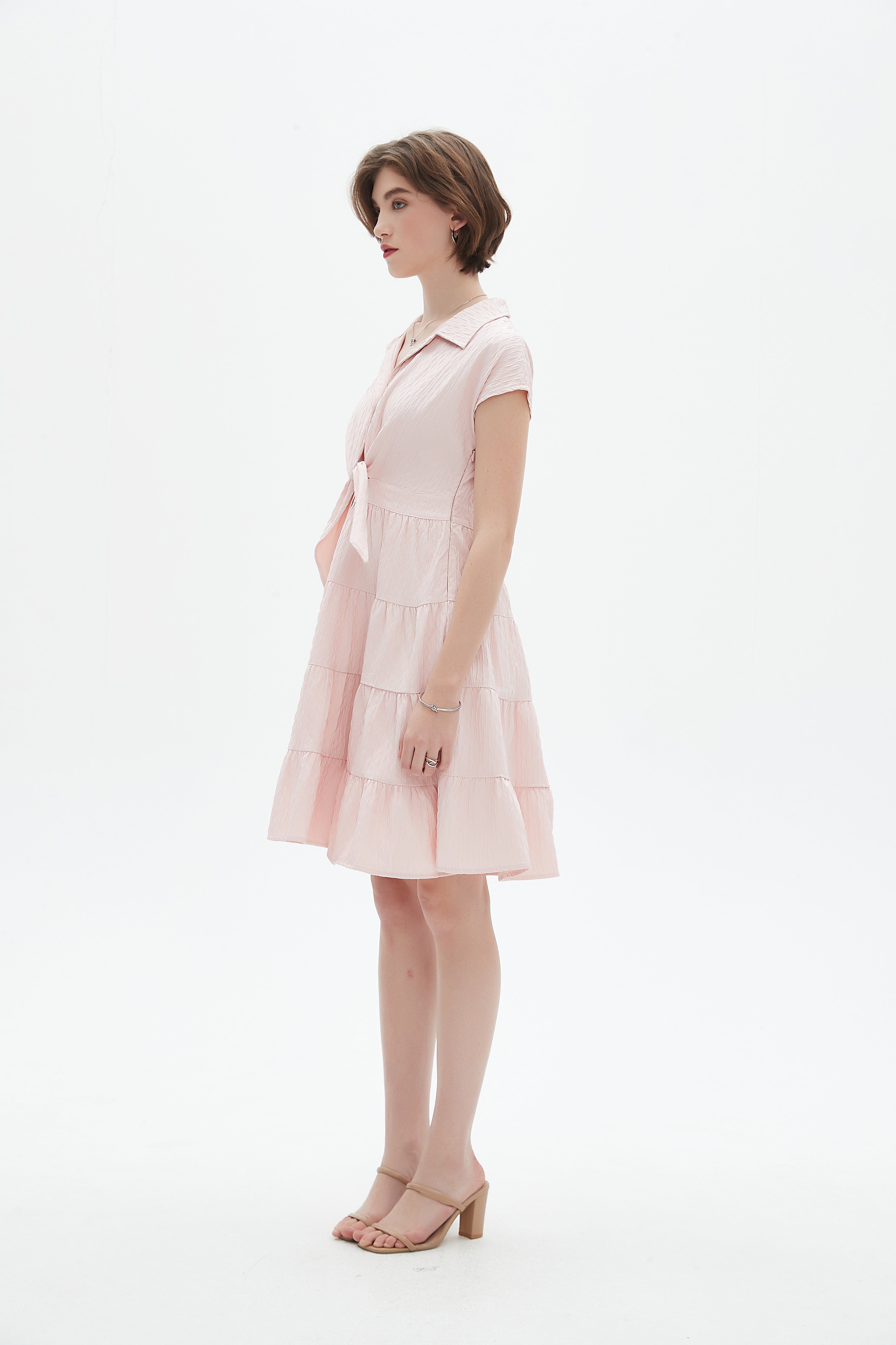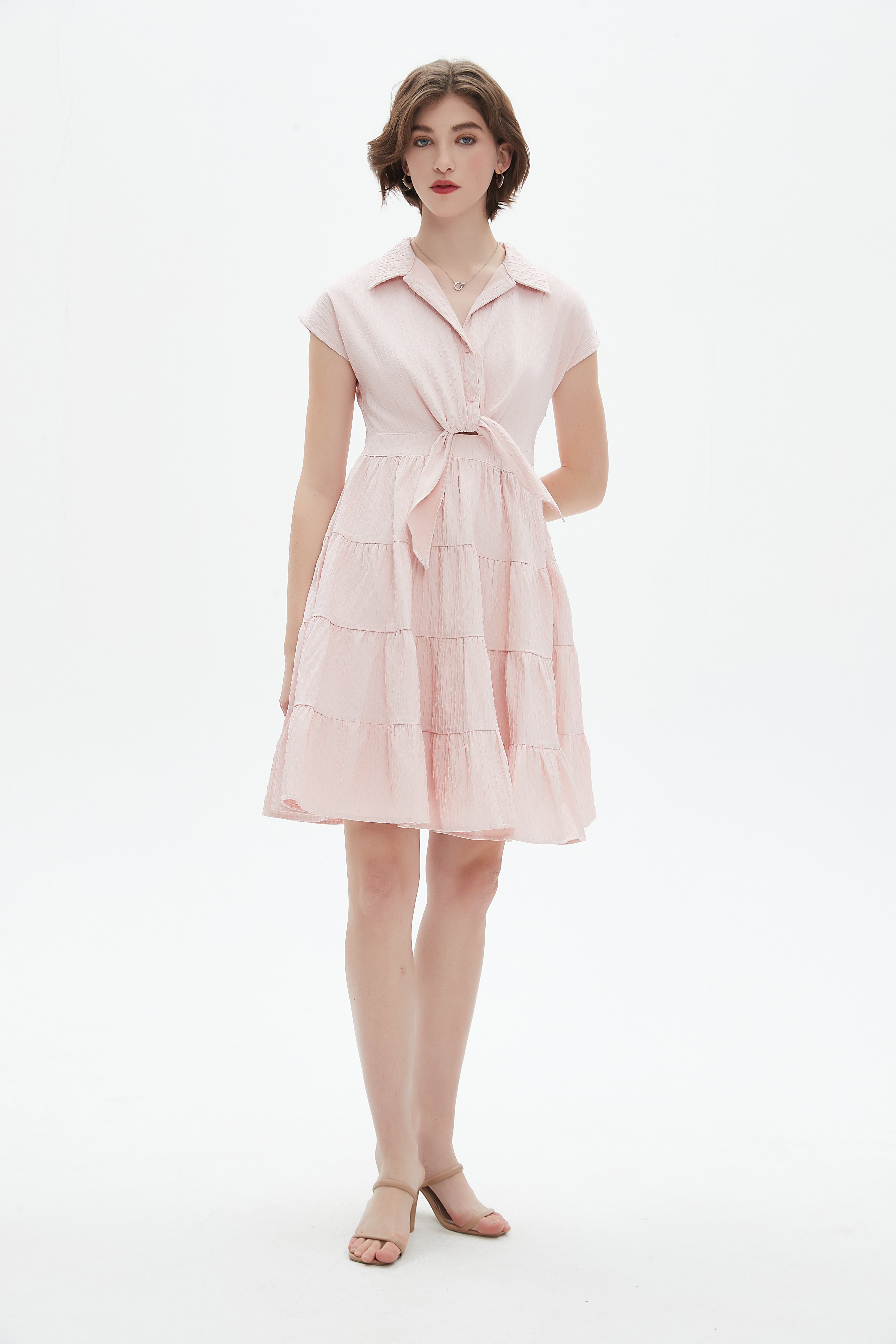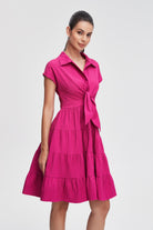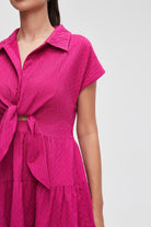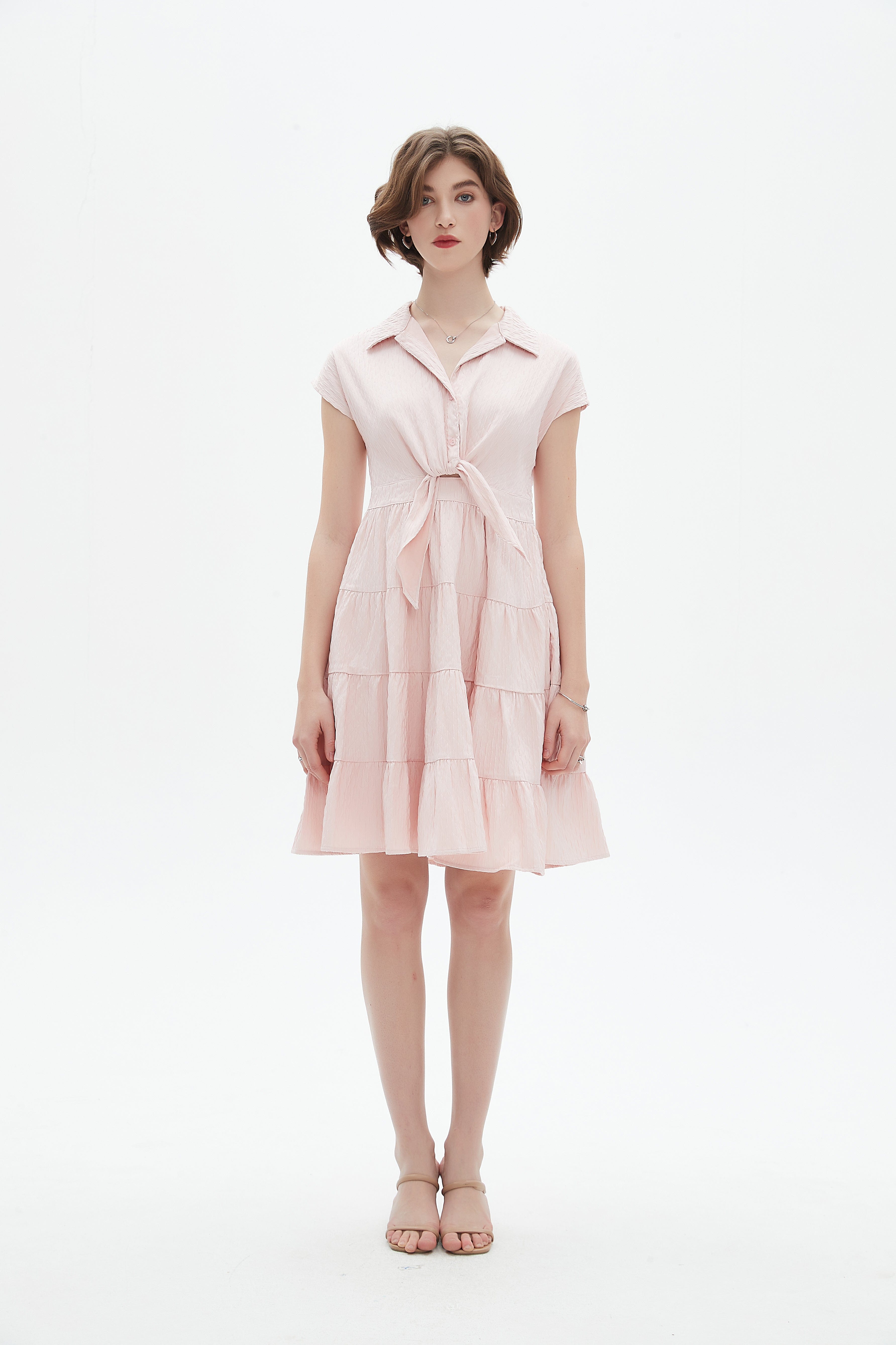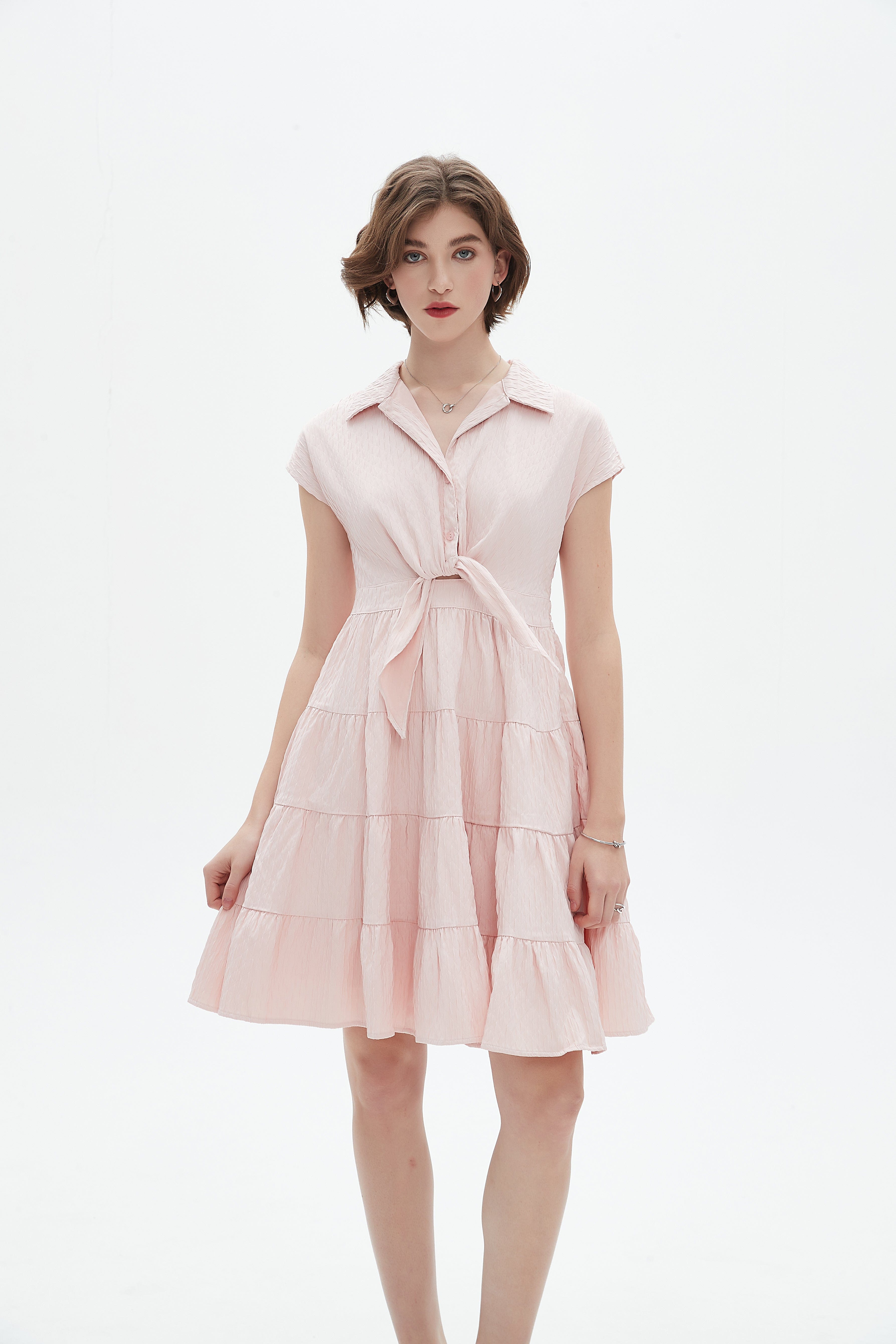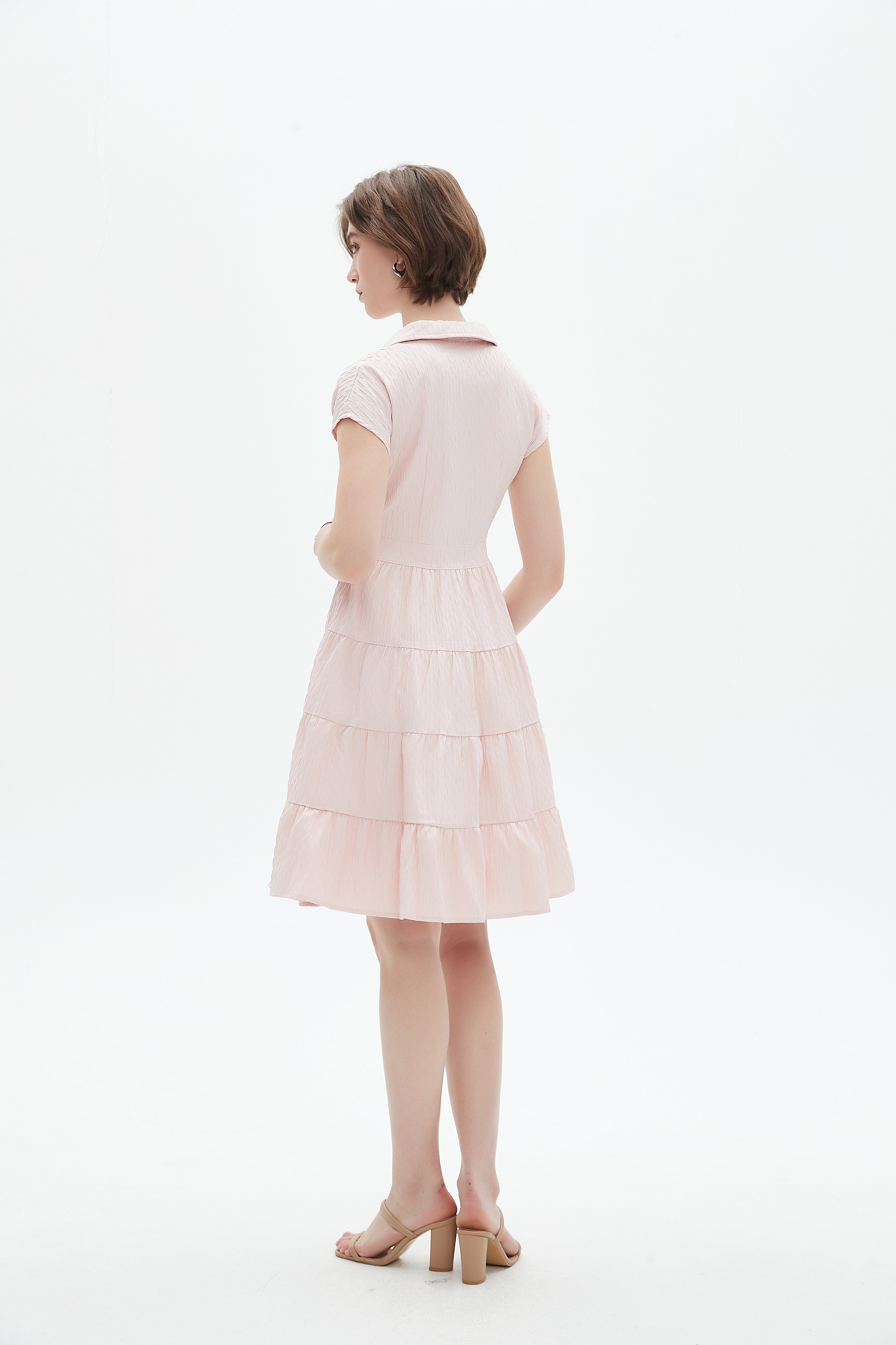 فستان مكشكش قصير بكم قصير وياقة قميص