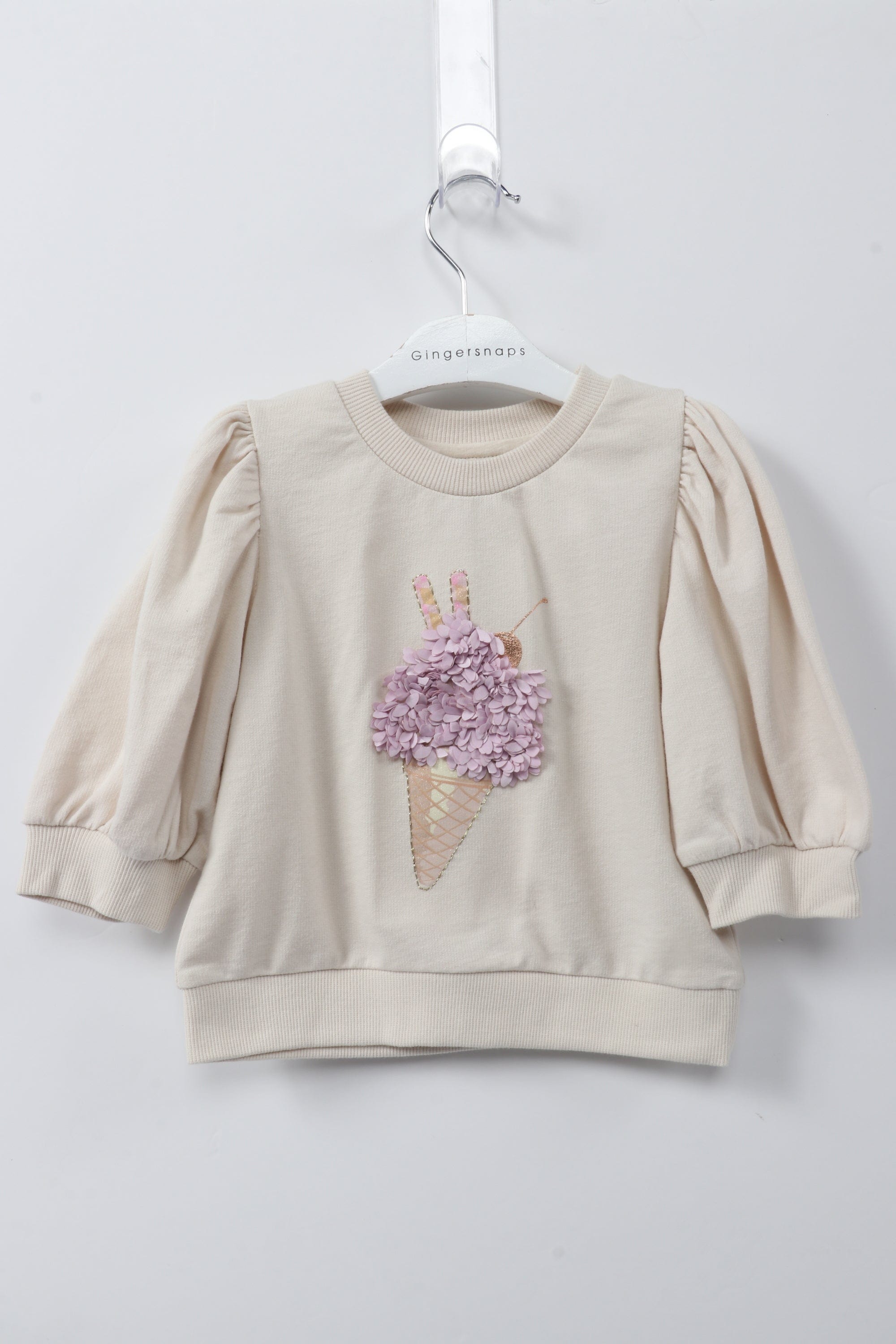 بلوفر بكم منفوخ مزينة بترتر علي الصدر بناتي