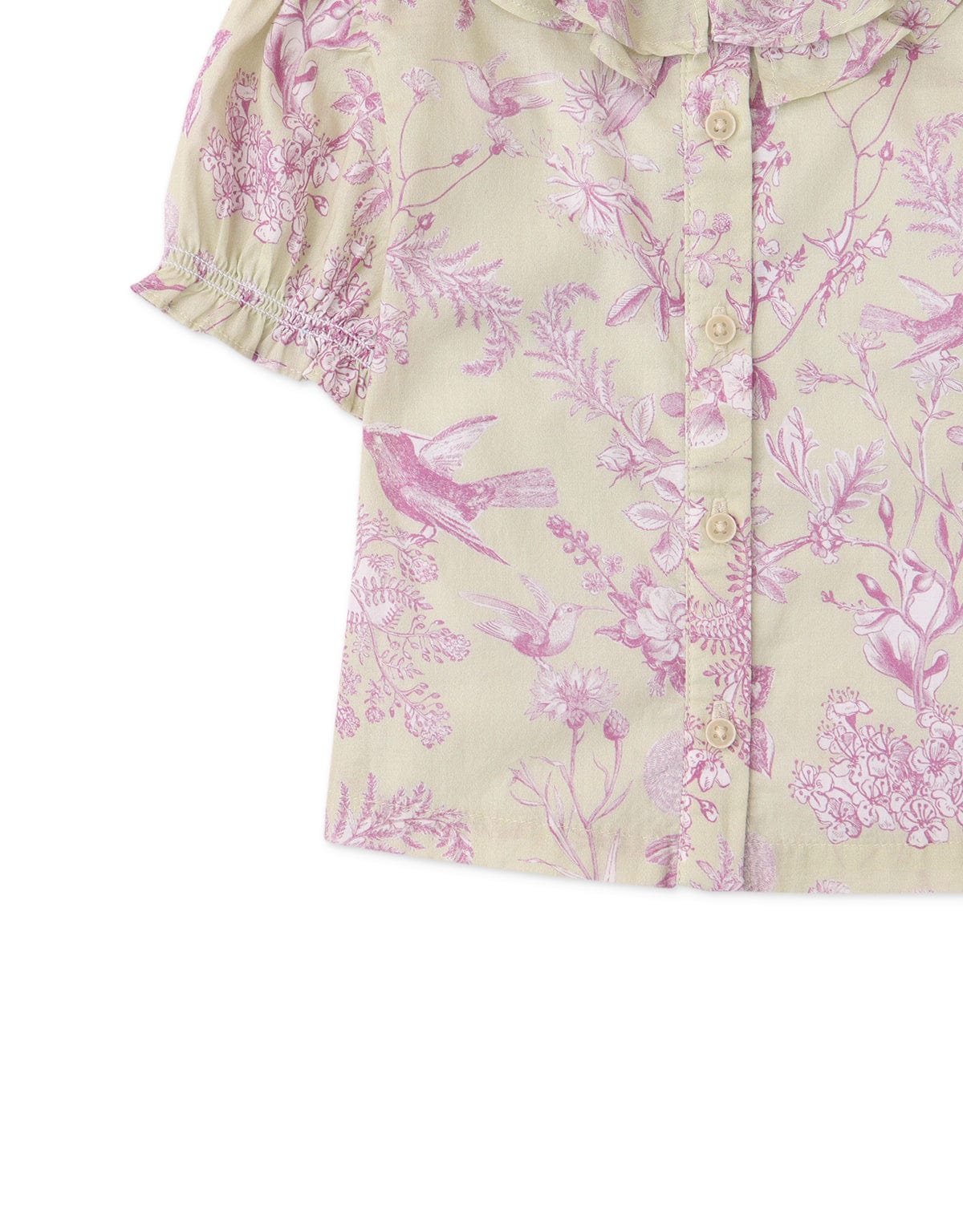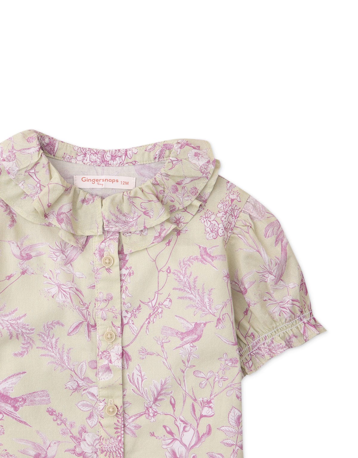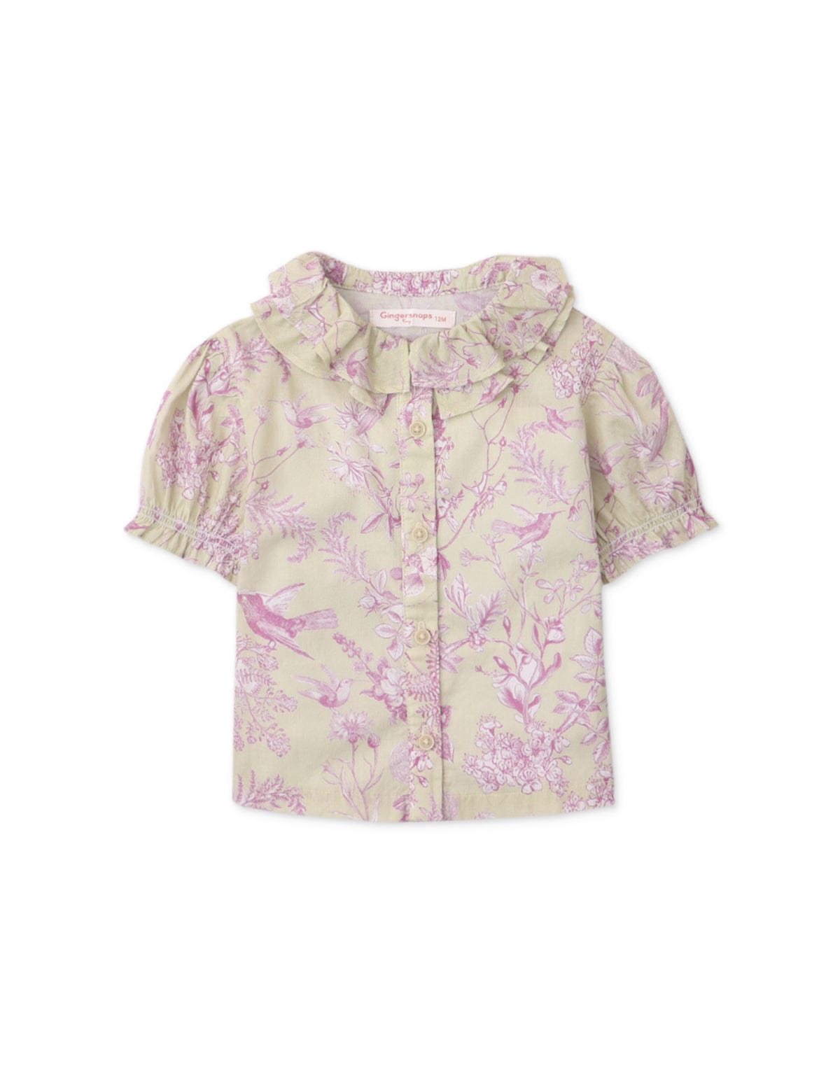 بلوزة منقوشة بف بأزرار أمامية بيبي بناتي