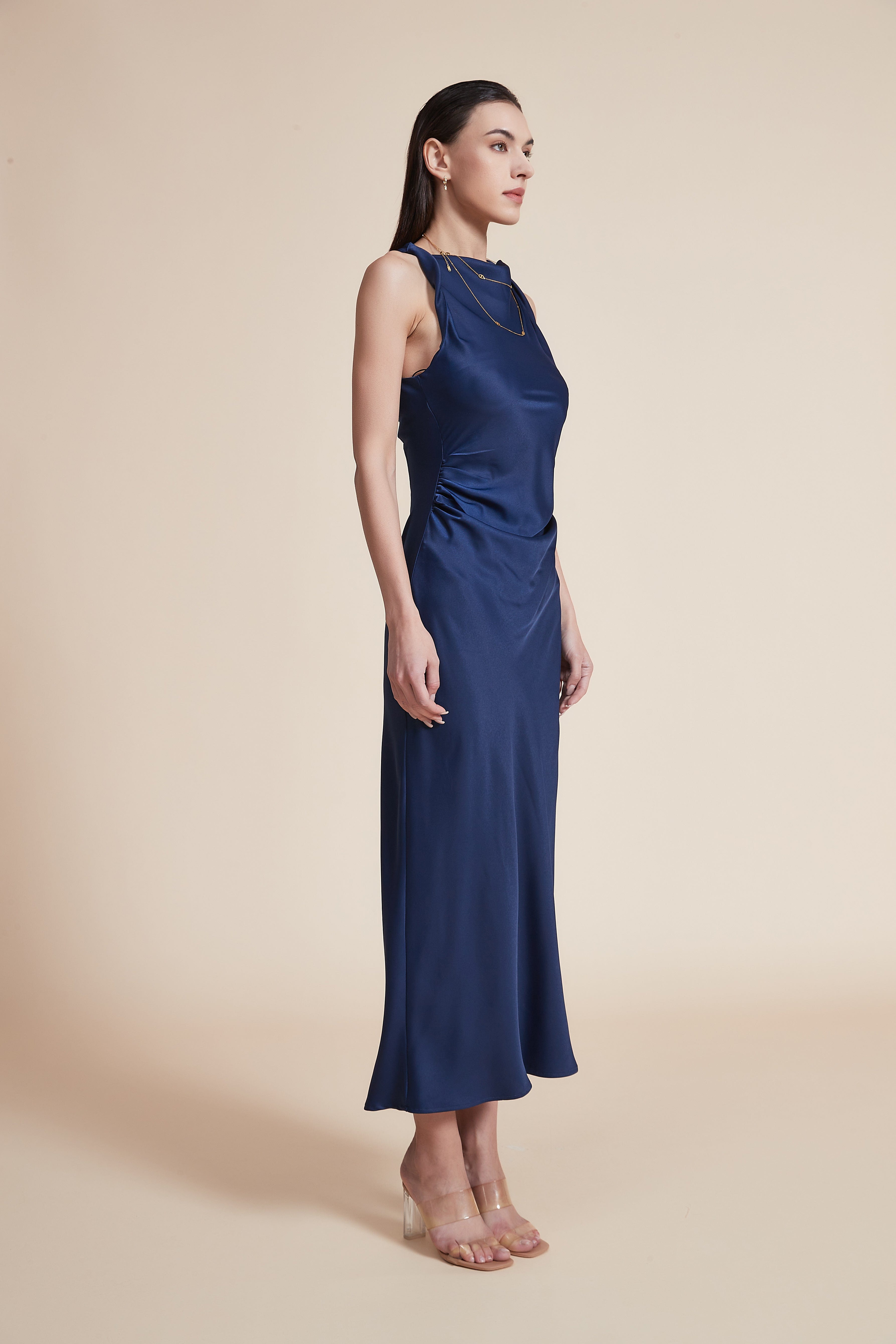 لما تبحثين عن فستان يجمع الأناقة والراحة في آنٍ واحد، هذا الفستان الأزرق الداكن خيار رائع. مصنوع من بوليستر 97% وسباندكس 3% ليمنحك مرونة خفيفة ويحافظ على الشكل مع سماكة متوسطة مناسبة لكل المواسم. القصة مستقيمة بتفصيل عادي وطول ميدي يمنحان مظهرًا أنيقًا بدون تكلف، وياقة هالتر بلا أكمام تضيف لمسة عصرية. النقشة سادة تتيح لك ارتداؤه في المساء أو نهارًا، سواء لخروجات رومانسية أو مواعيد عمل تليها سهرة. بدون بطانة أو جيوب أو حزام، فالتصميم نقي وبسيط وستحبين كيف يتحرك معك ويمنحك إطلالة مواكبة للموضة. اعثري على مقاسك في فاشن السعودية وأضيفي هذه القطعة المتنوعة إلى خزانة ملابسك اليوم.