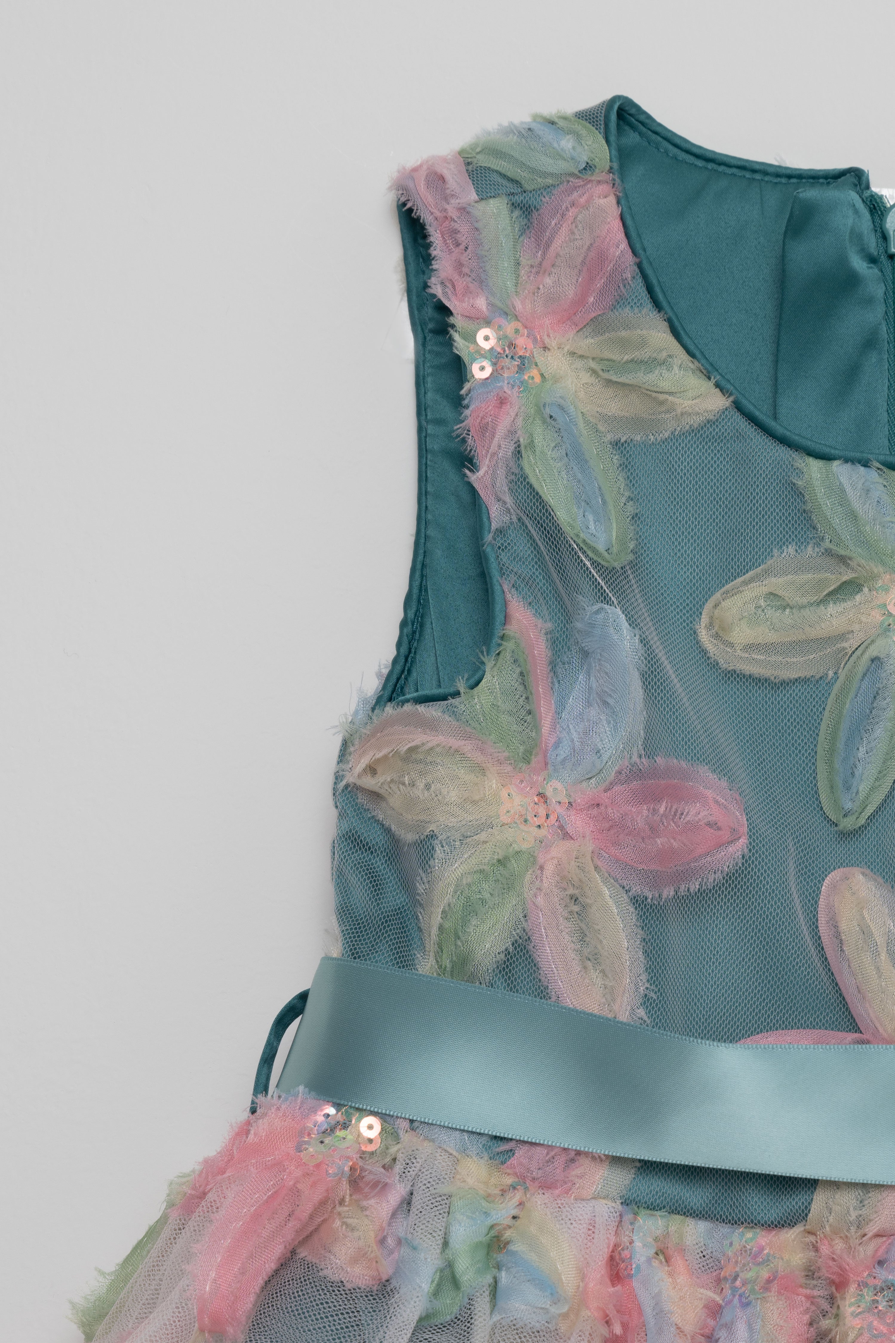 فستان بدون كم مطرز ورد