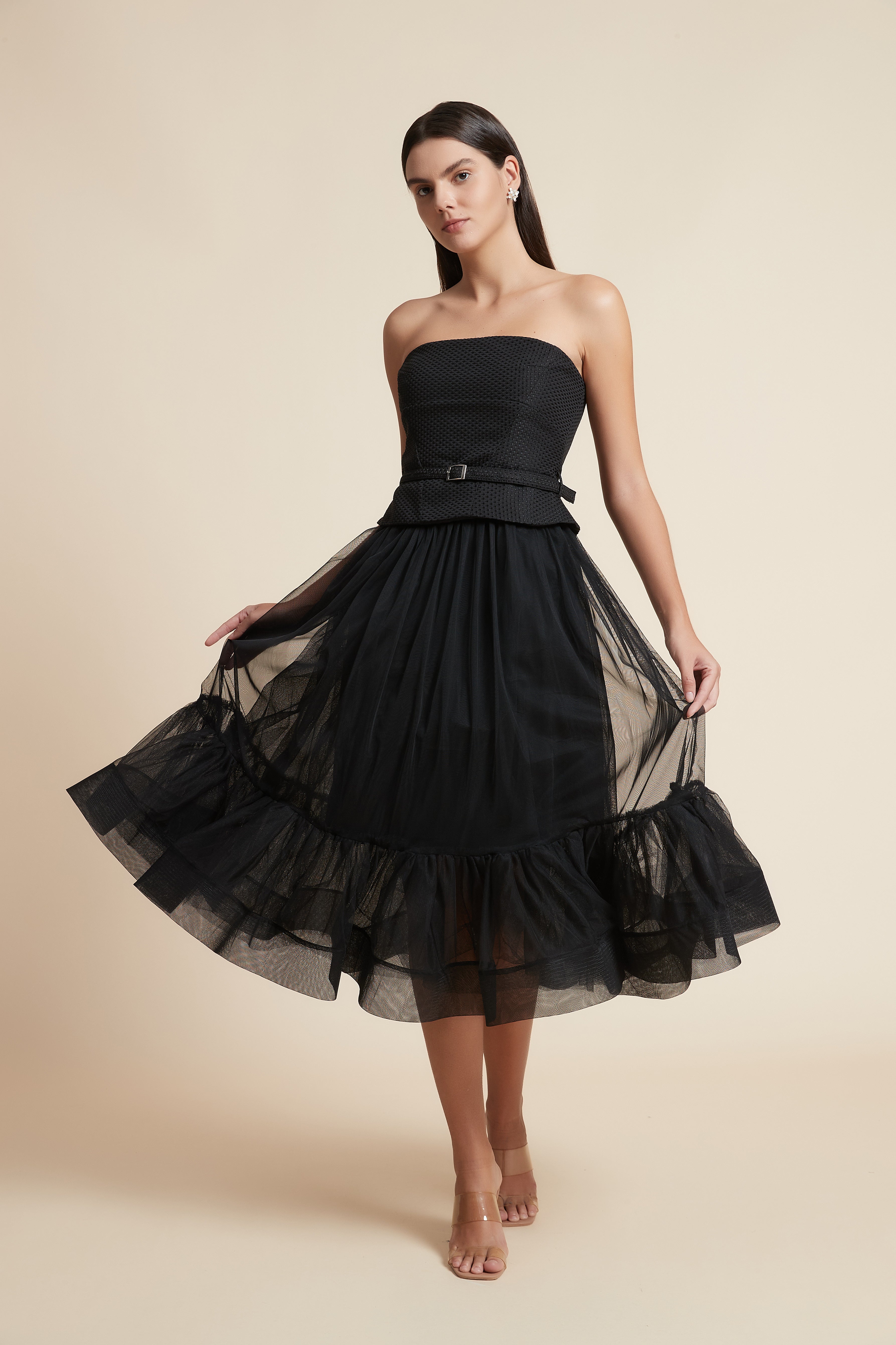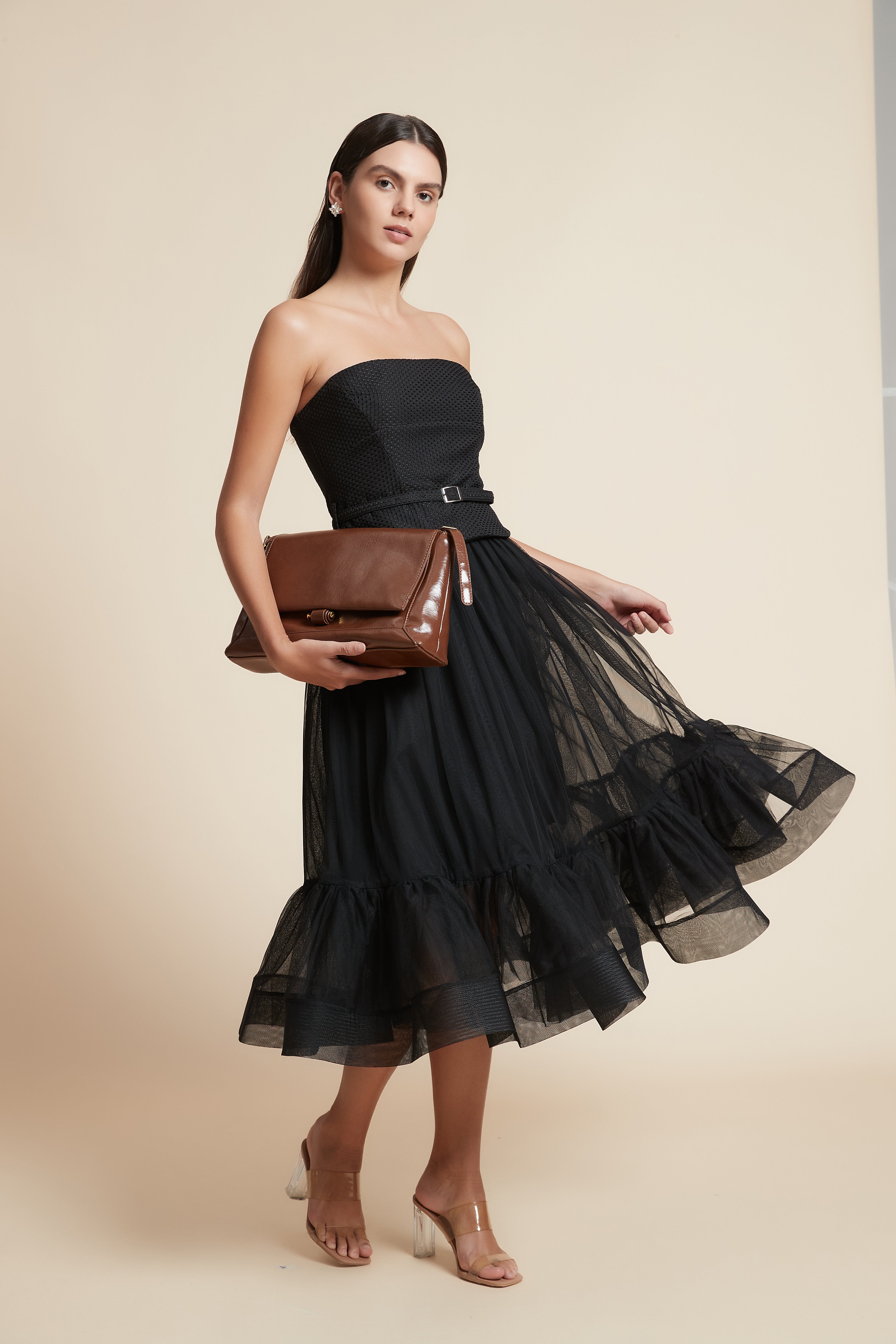 إذا كنت تبحثين عن فستان أسود أنثوي يناسب سهرة خاصة، فستعجبك هذه القطعة. القصة A تمنحك صفوفًا أنيقة وراحة في الحركة، والطول ميدي يوازن بين الاحتشام والجاذبية. الفستان سادة وبلا حمالات وبلا أكمام، ما يجعله خيارًا أنيقًا للسهرة والحفلات، ومع الحزام المرفق يمكنك تحديد الخصر بسهولة لإطلالة أنثوية. سمك القماش متوسط، لذلك مناسب لكل المواسم ويمكن ارتداؤه في مناسبات مسائية أو خروجات رومانسية. لا يحتوي على بطانة أو جيوب، ما يجعله خفيفًا وبسيطًا في الشكل، وفي القصّة العادية سيليق بمختلف الأعمار البالغة. ستحبين كيف يتحرك معك ومتى تريدين تضيفين جاكيت خفيف أو شال لتدفئة السهرات الباردة. اعثري على مقاسك في فاشن السعودية وأضيفي هذه القطعة المتنوعة إلى خزانة ملابسك اليوم.