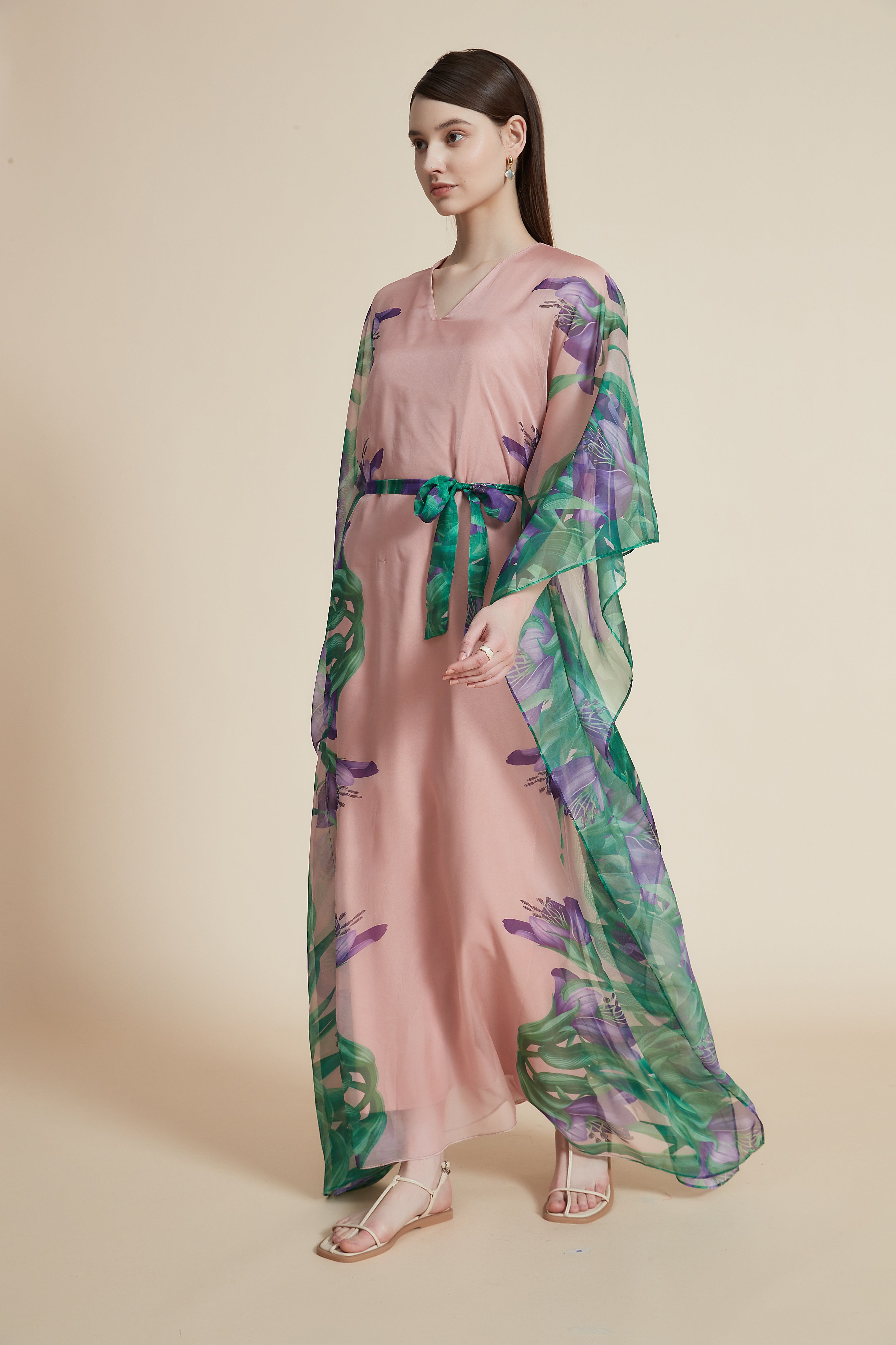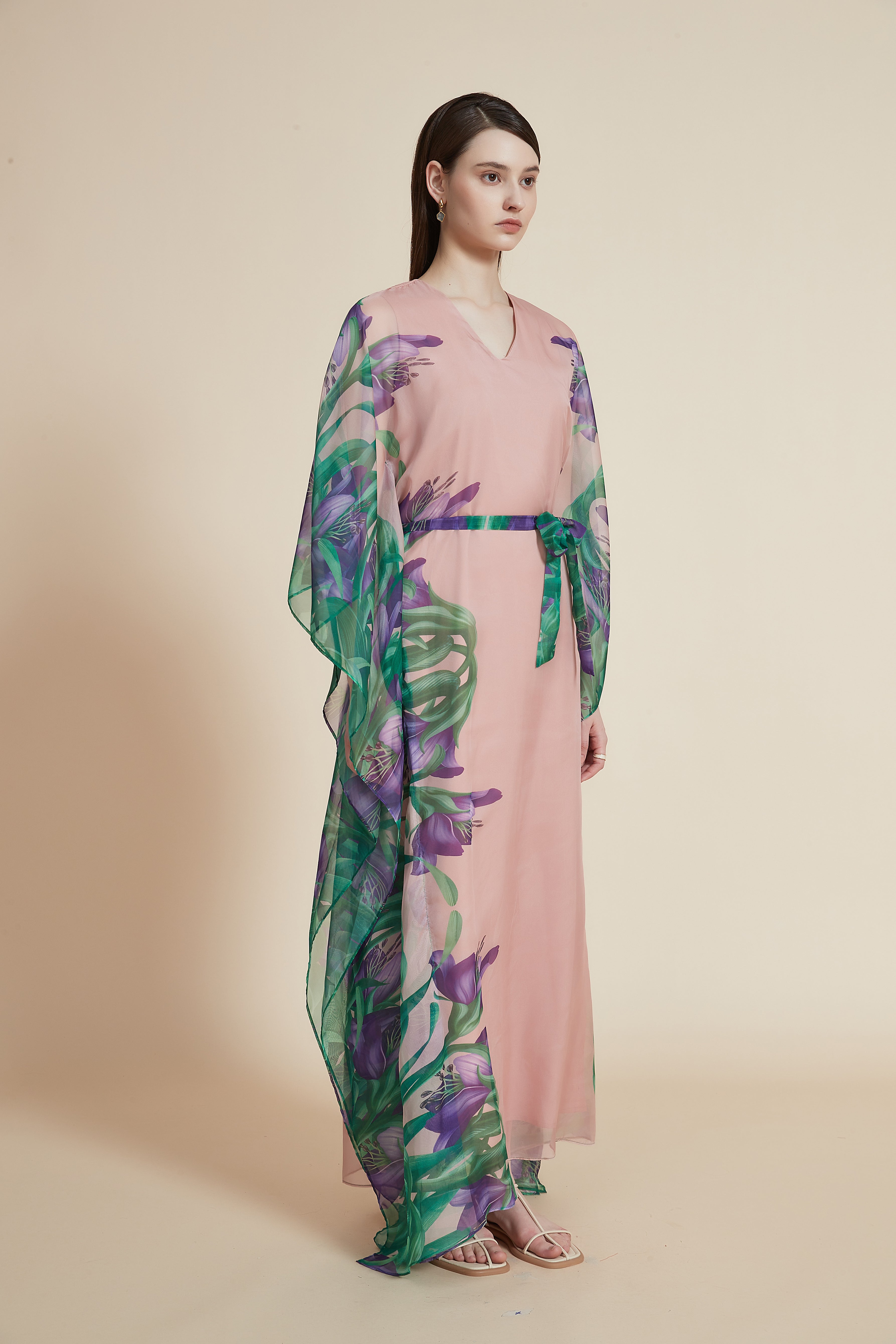 فستان ماكسي بأكمام فراشة مع طباعة زهور
