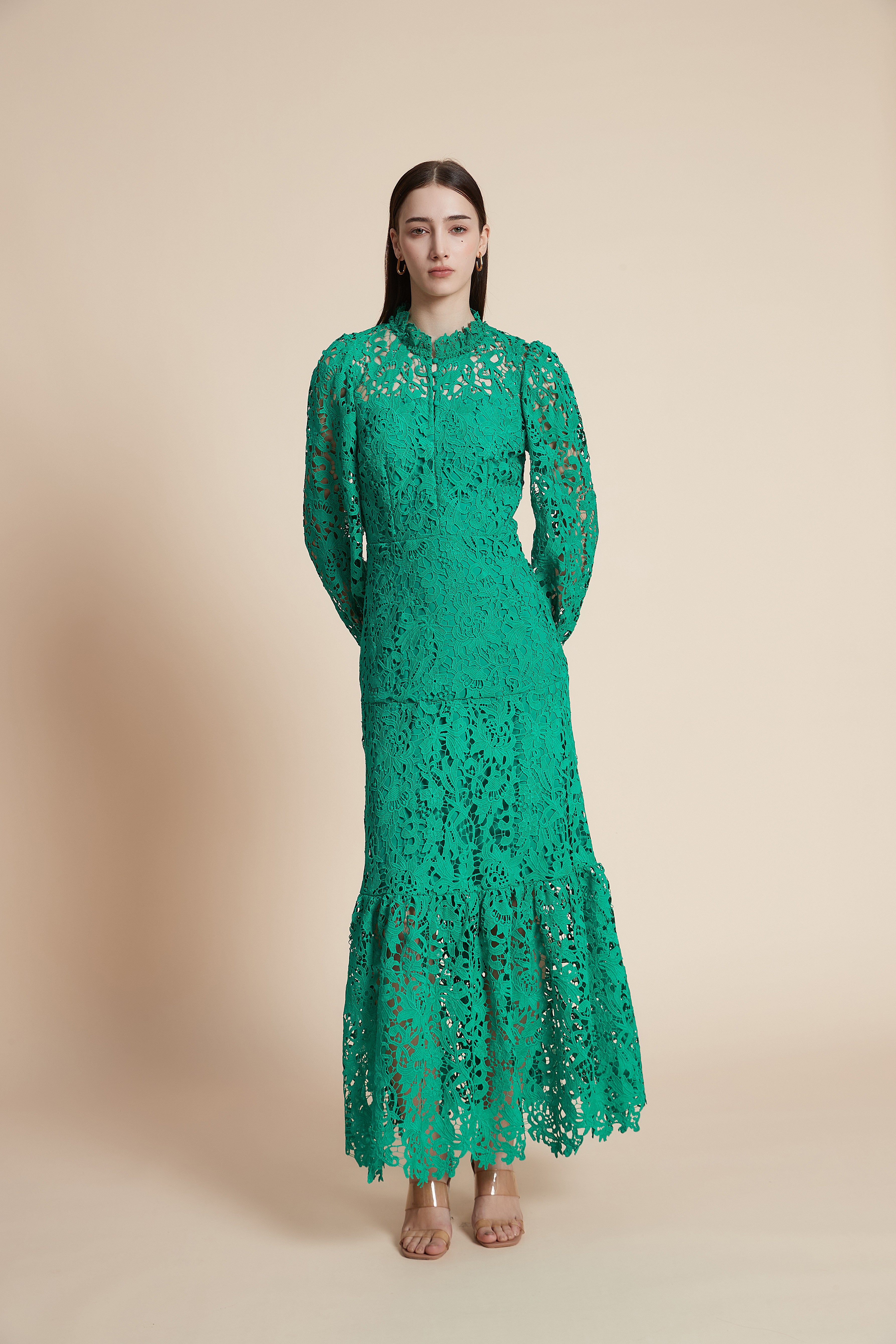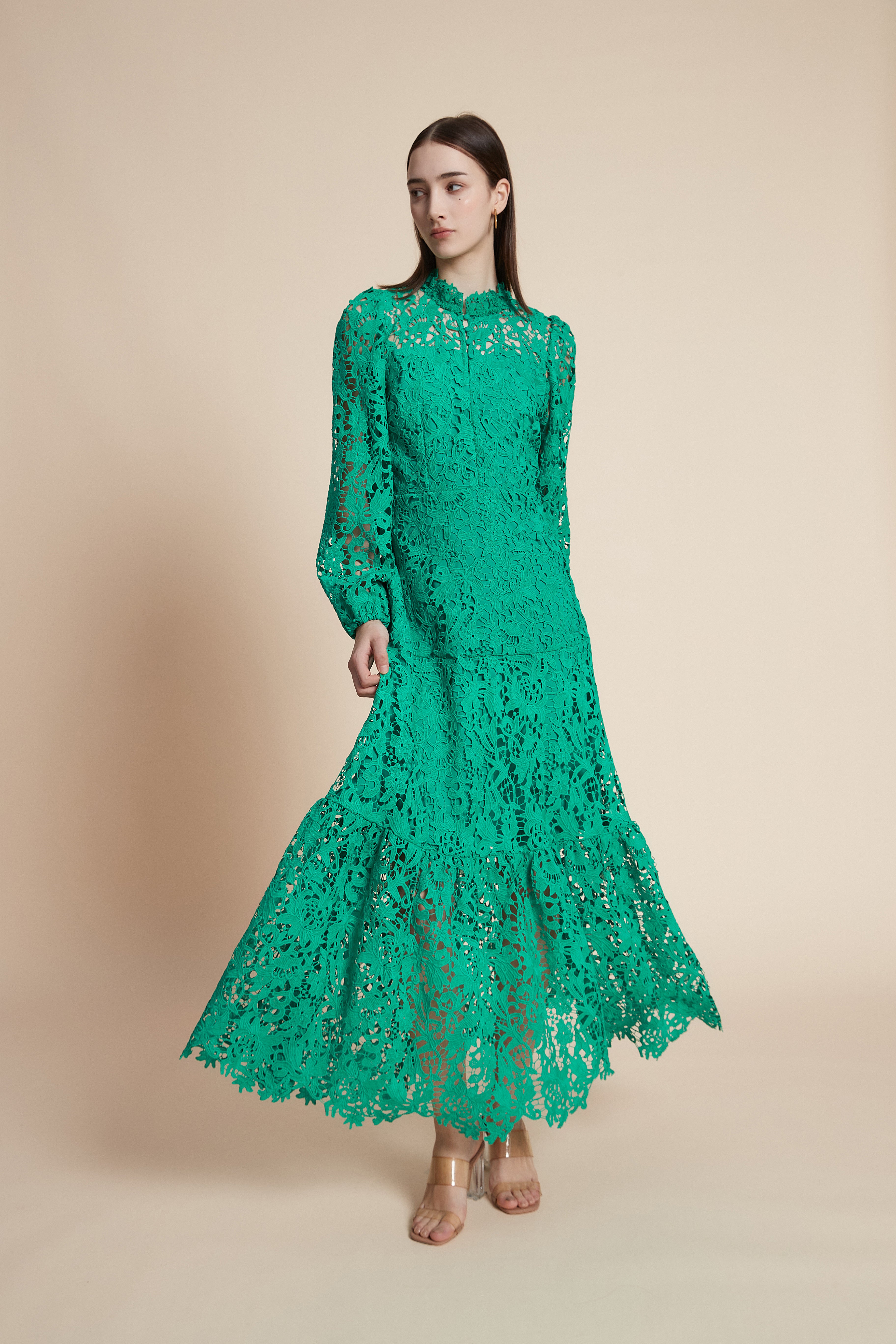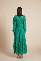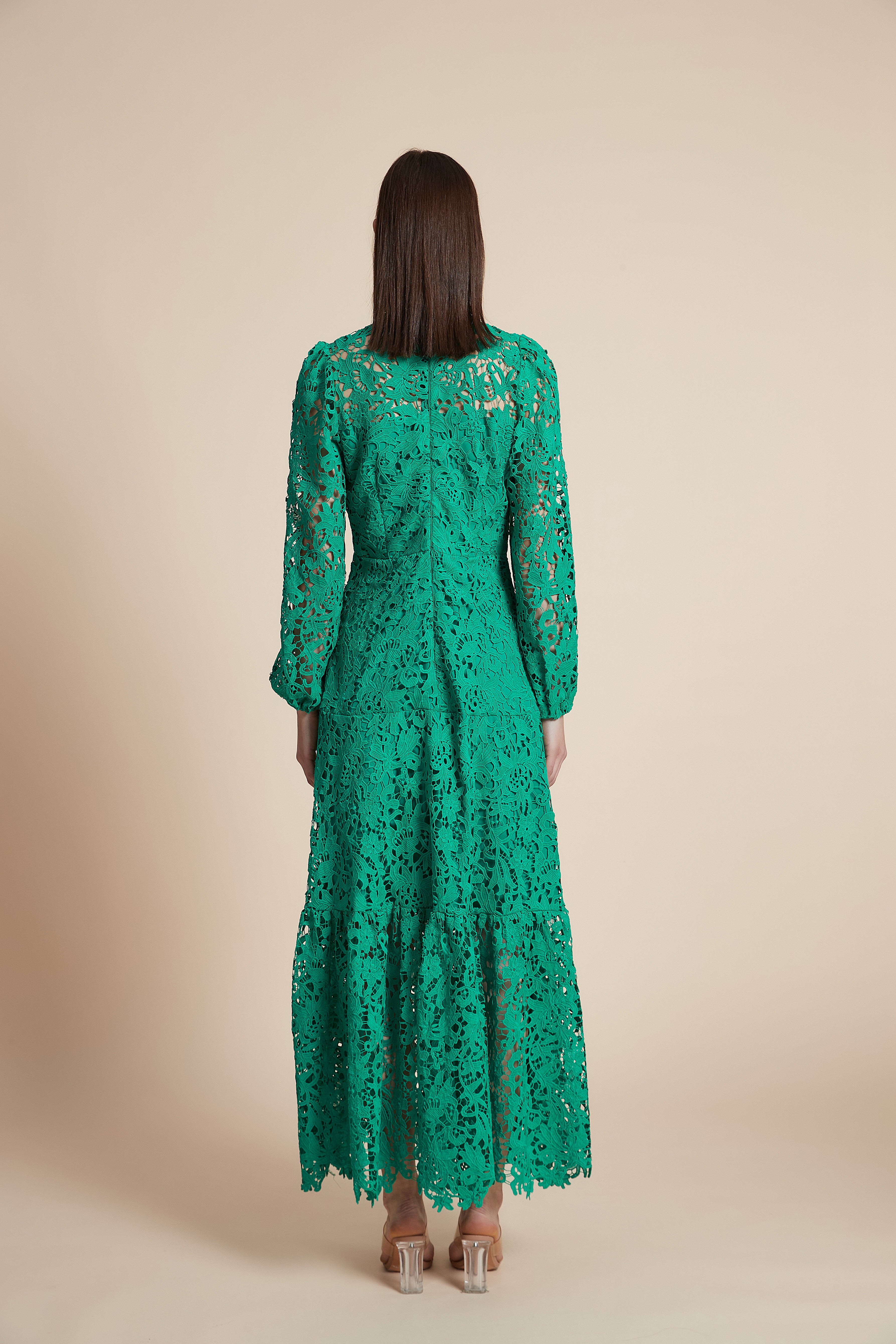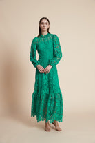 فستان طويل مخرم بكم طويل