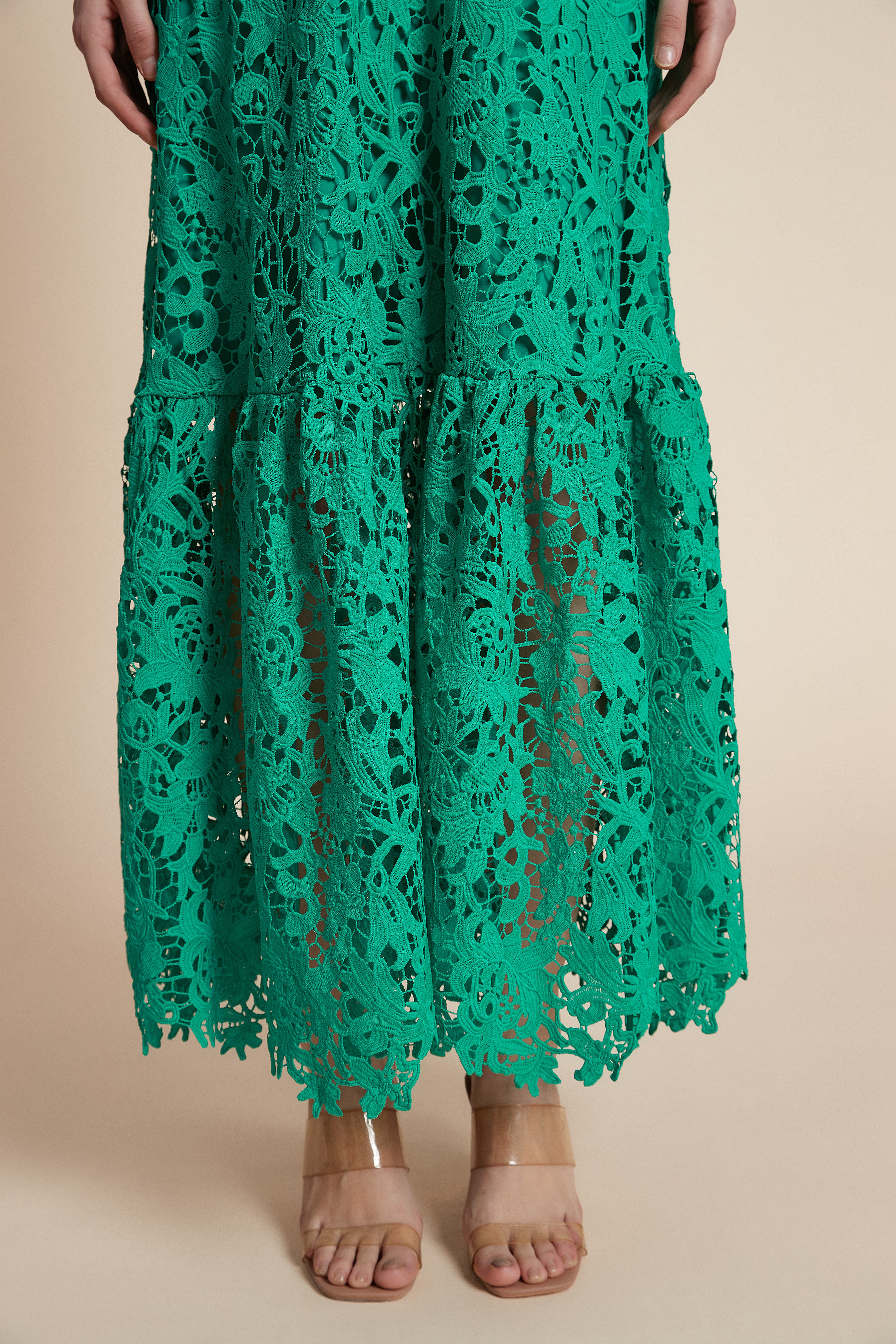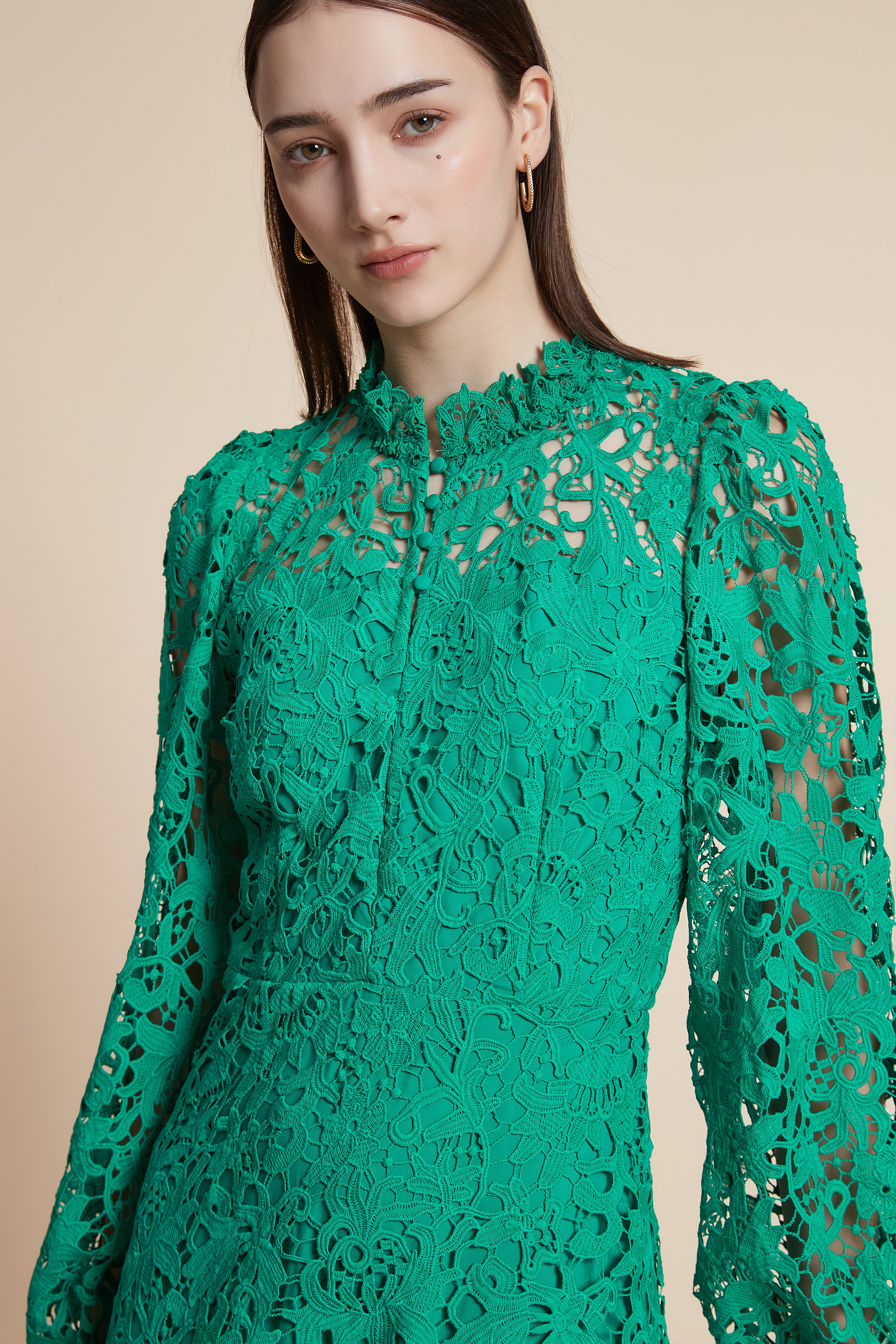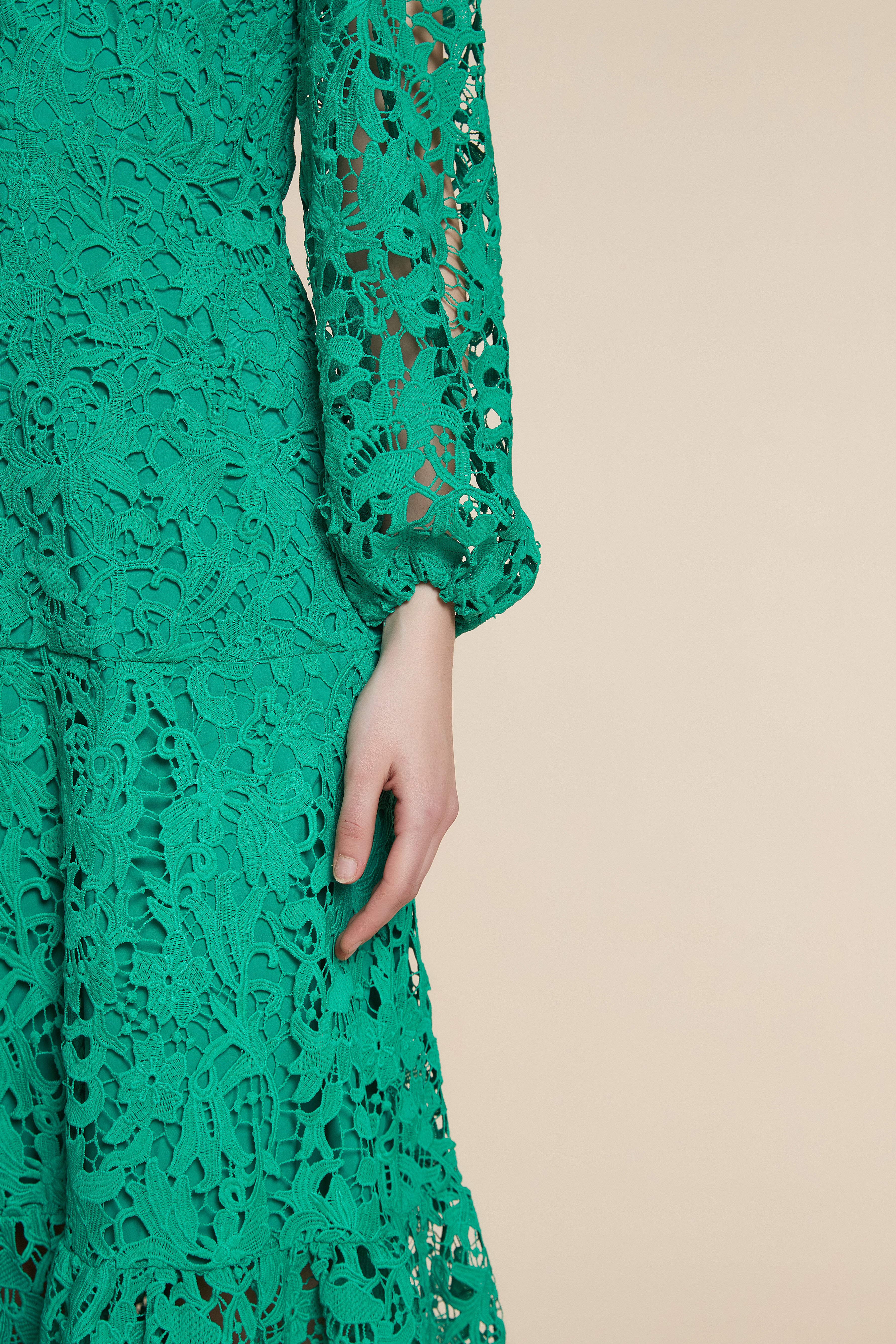 فستان طويل مخرم بكم طويل