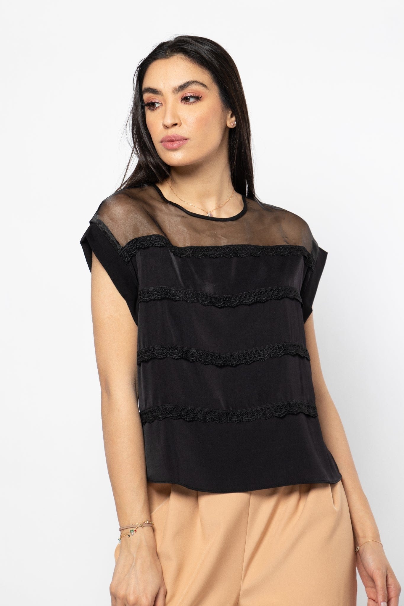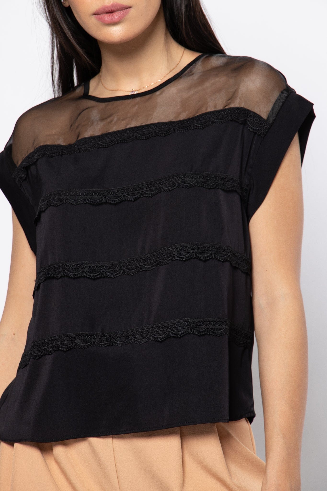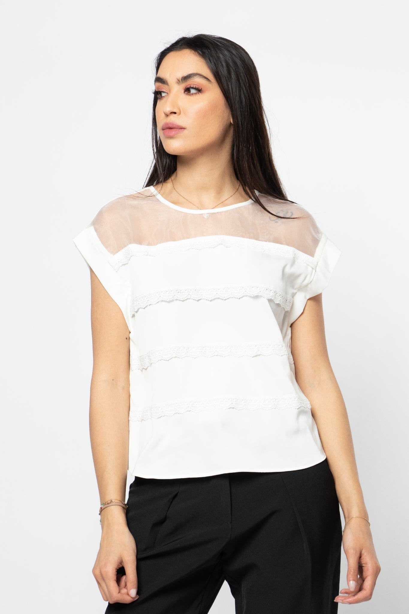 بلوزة رسمية مزينة بالدانتيل بأكتاف شيفون نسائي