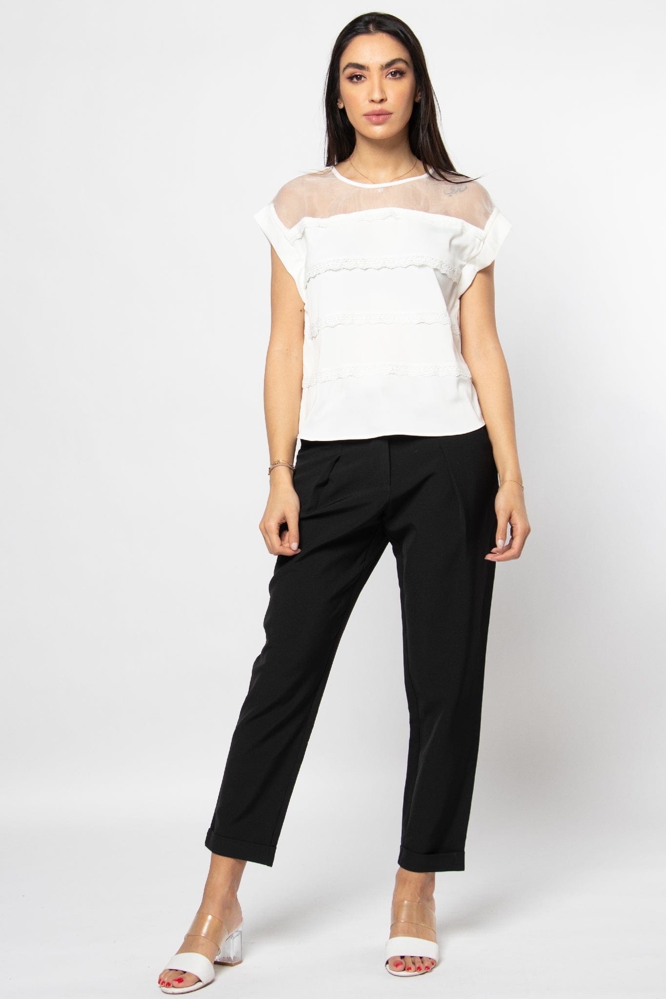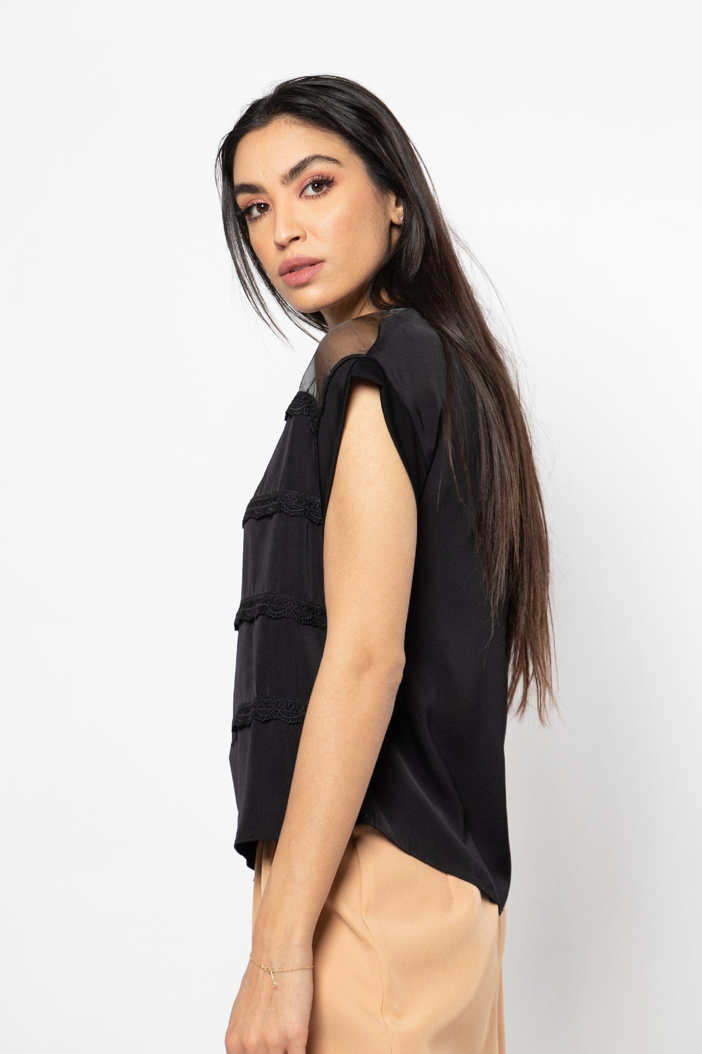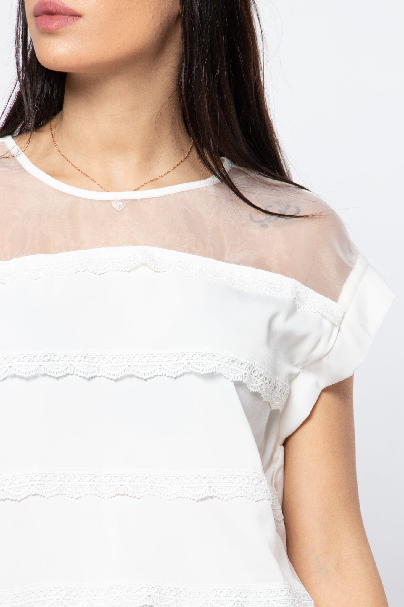 بلوزة رسمية مزينة بالدانتيل بأكتاف شيفون نسائي