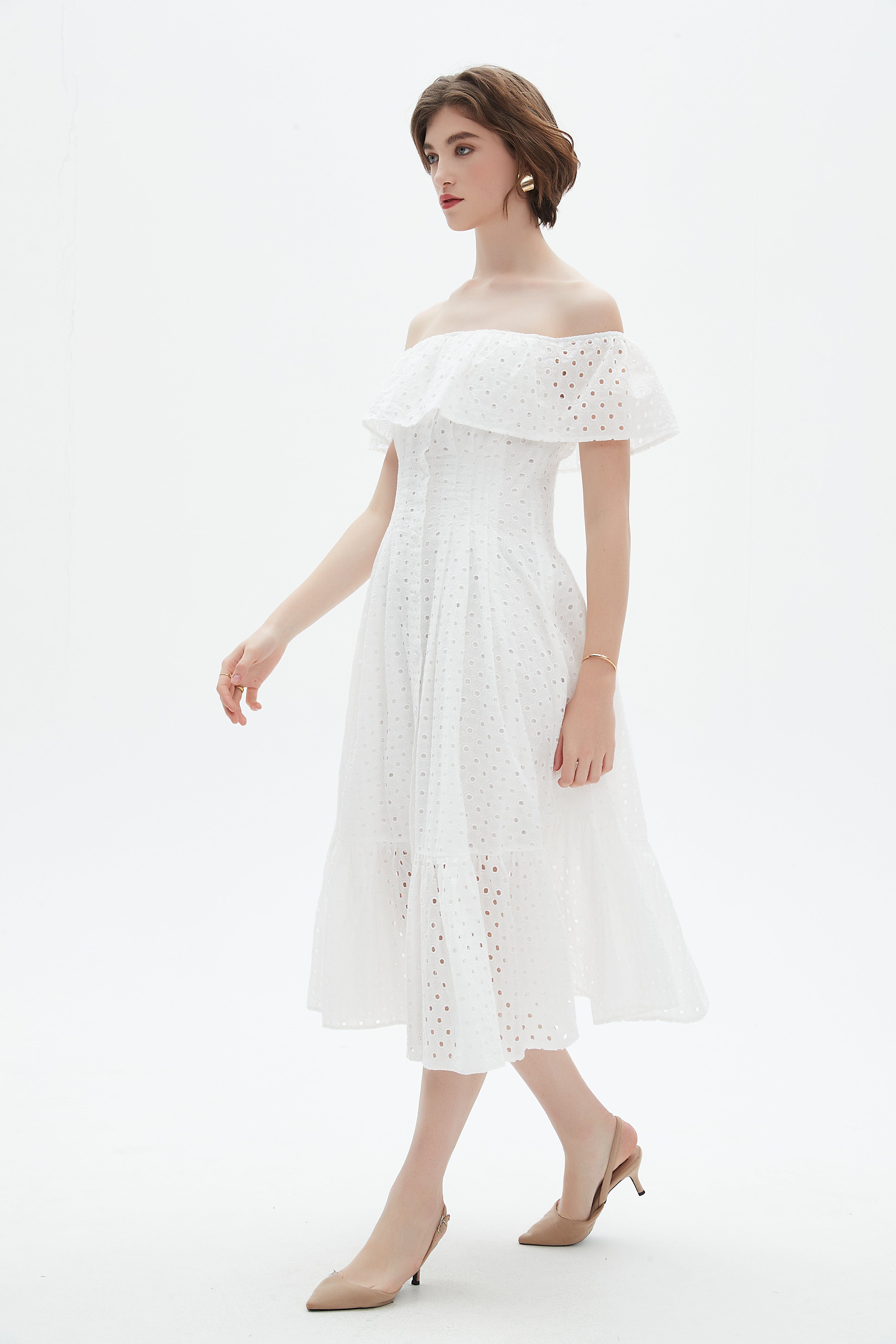 - طول ميدي أبيض سادة لطلّة صيفية أنثوية