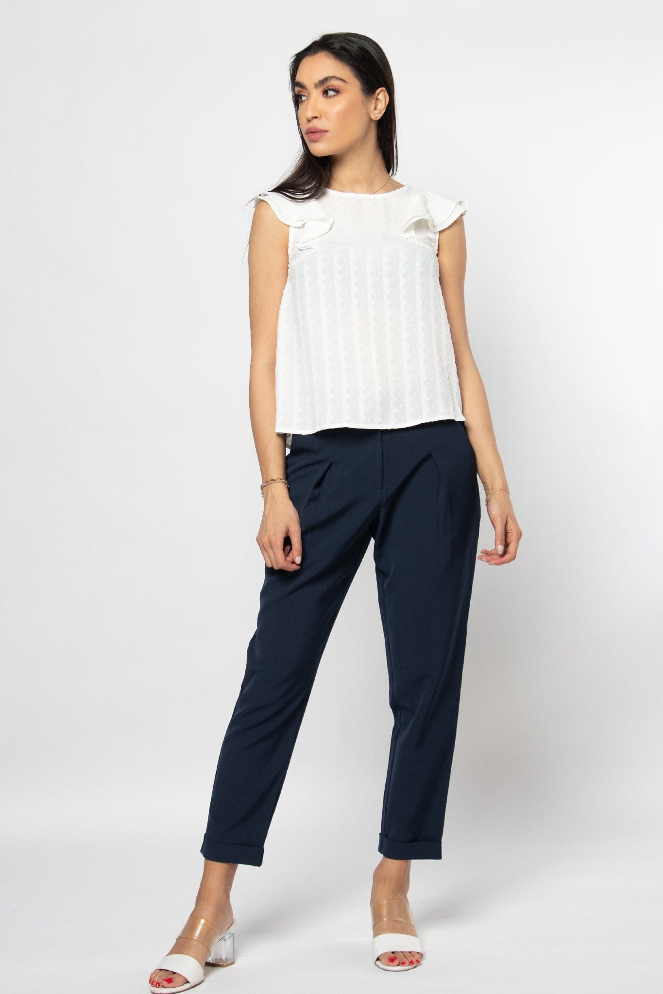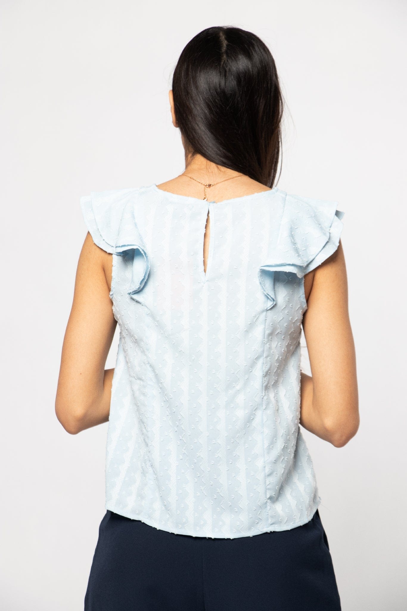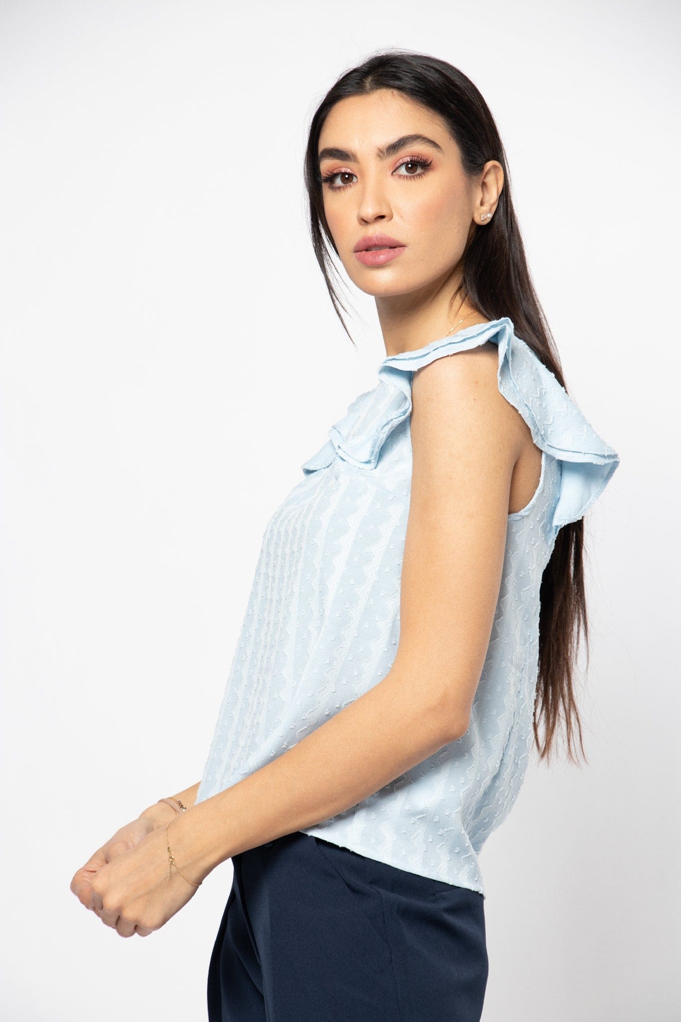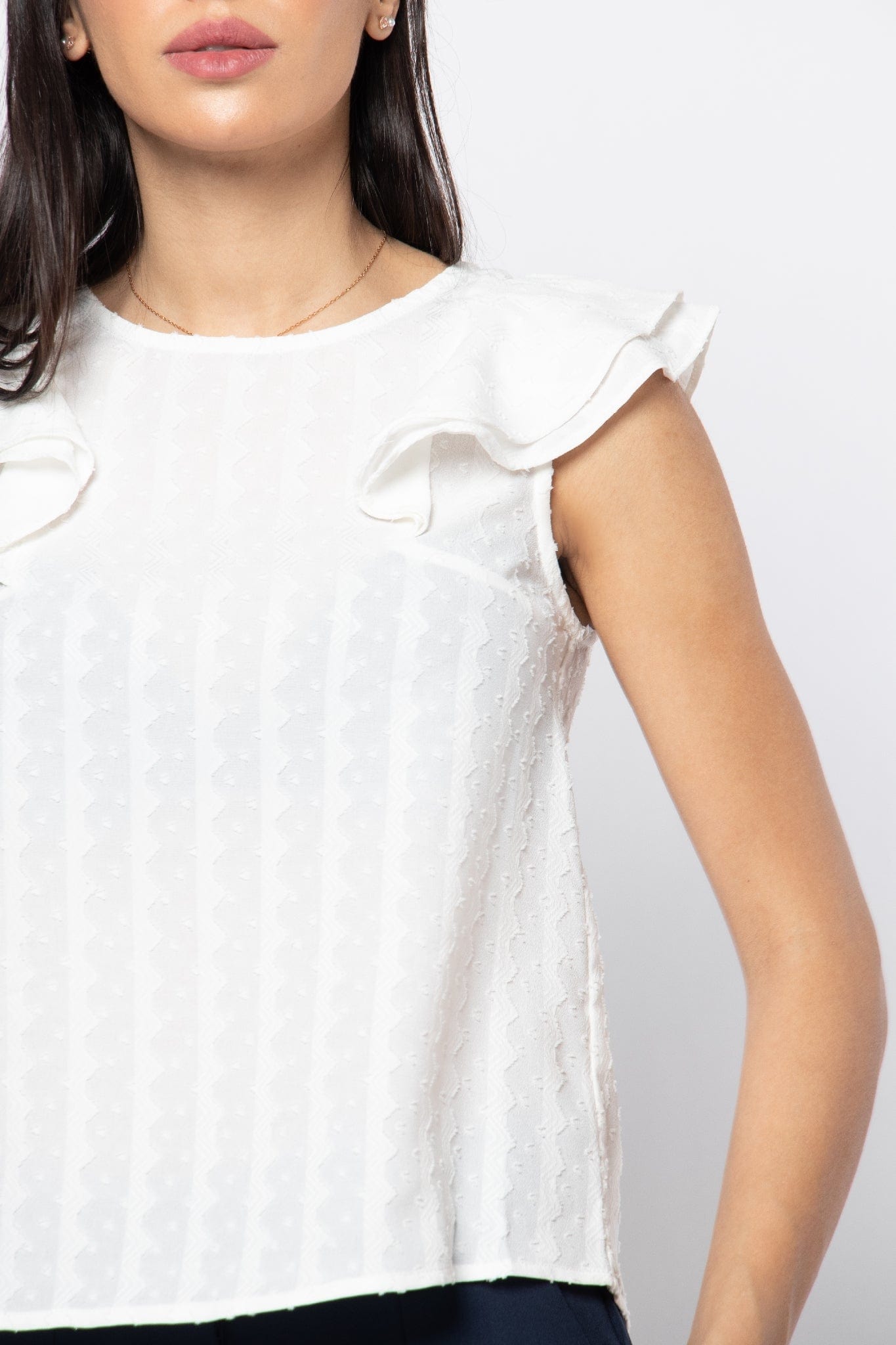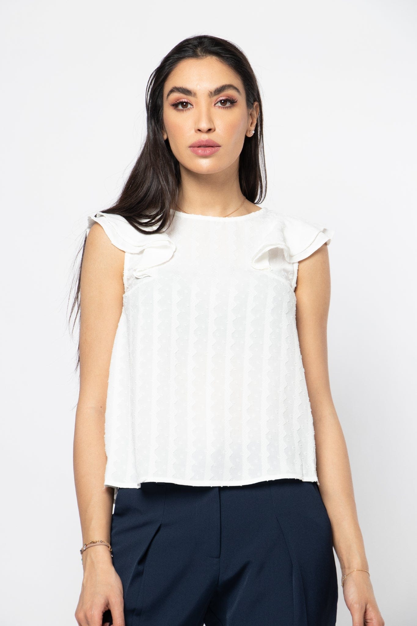 بلوزة رسمية مخططة بالطول وبأكتاف مكشكشة نسائي