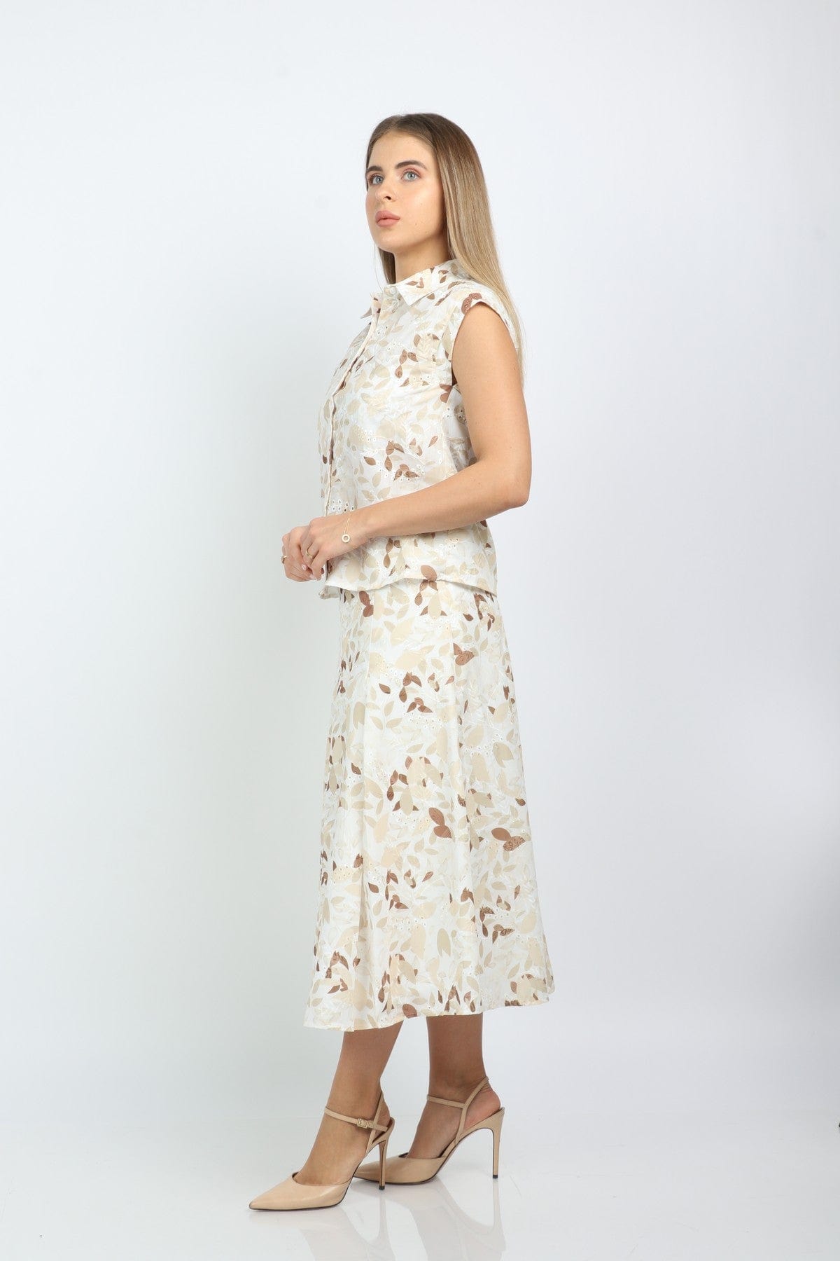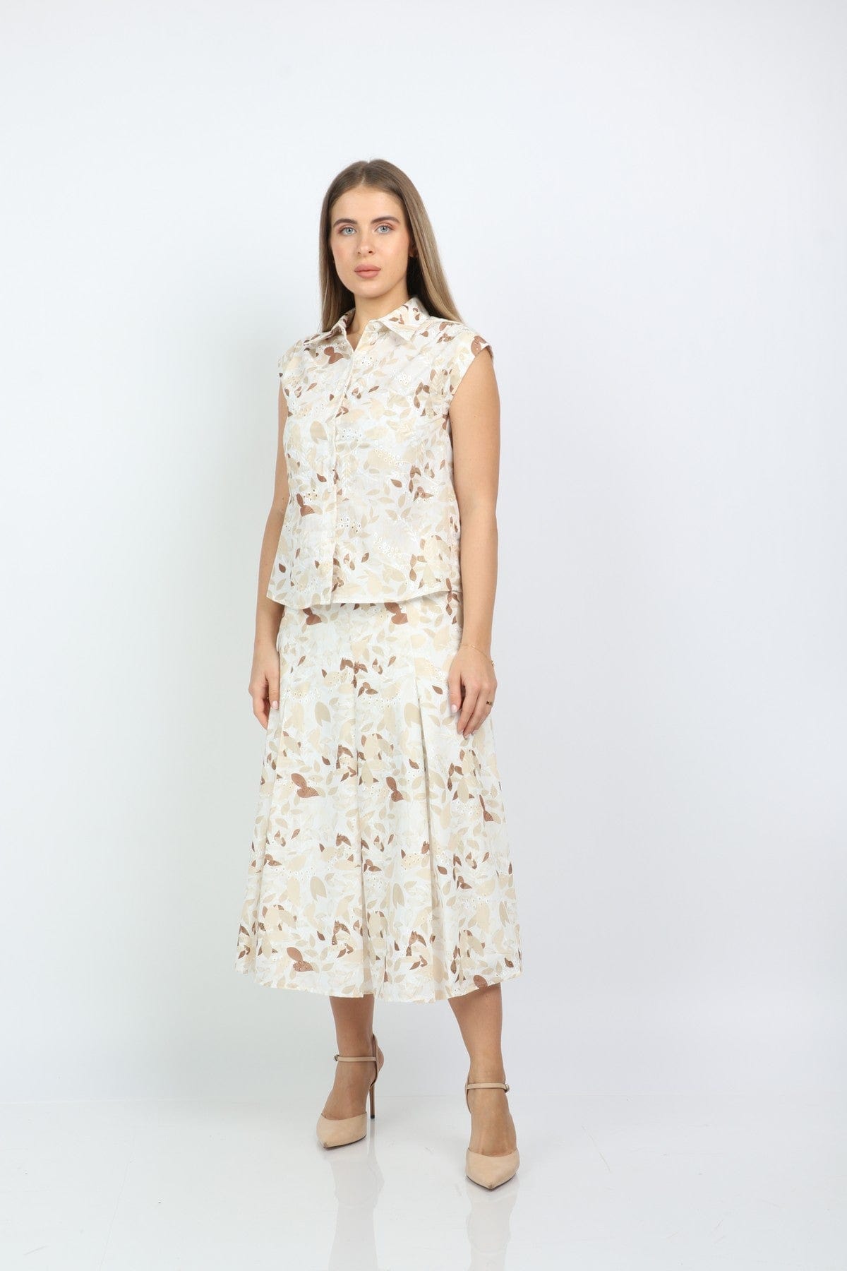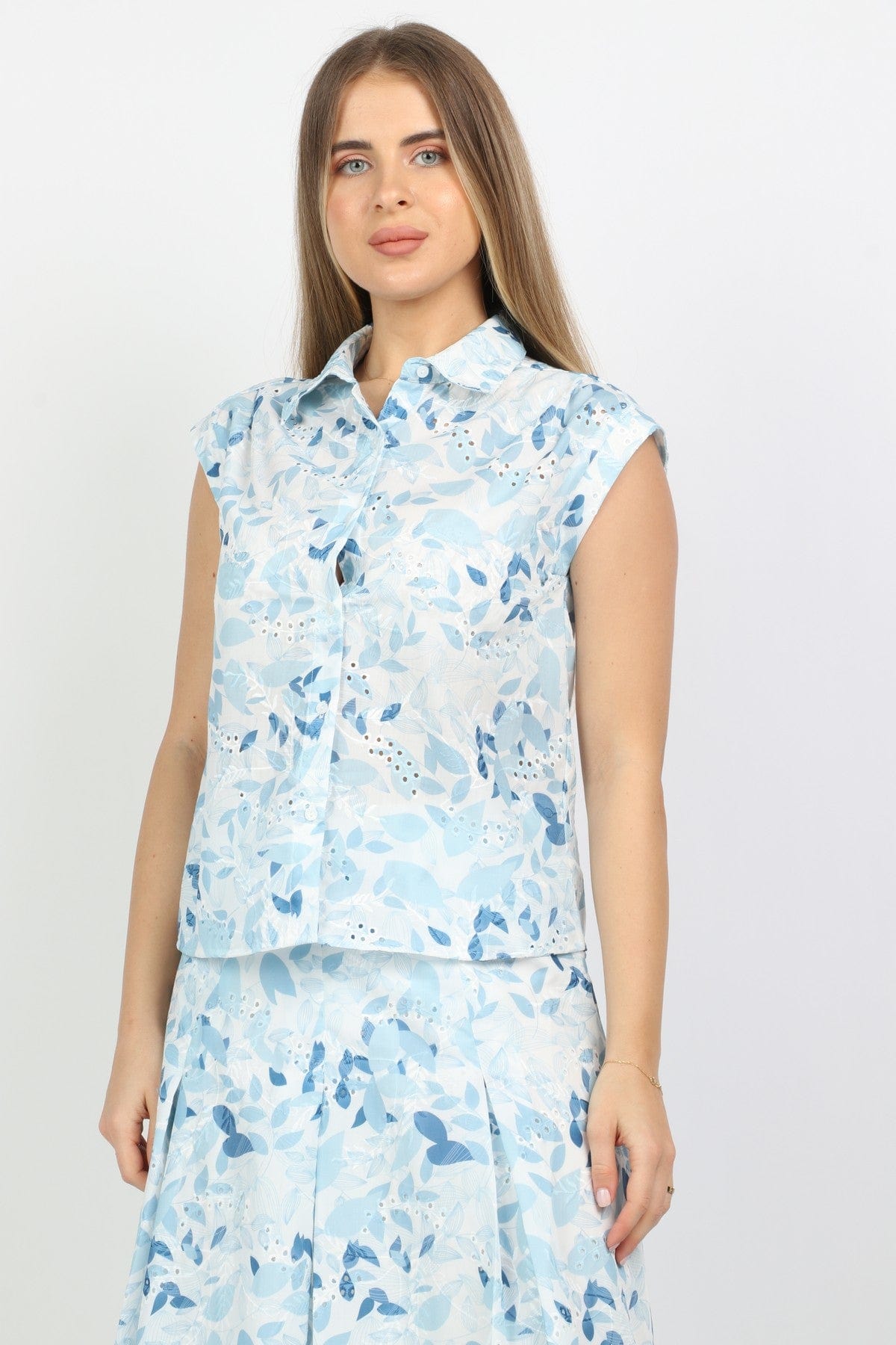 بلوزة مشجرة كت بياقة مزودة بأزرار أمامية نسائي