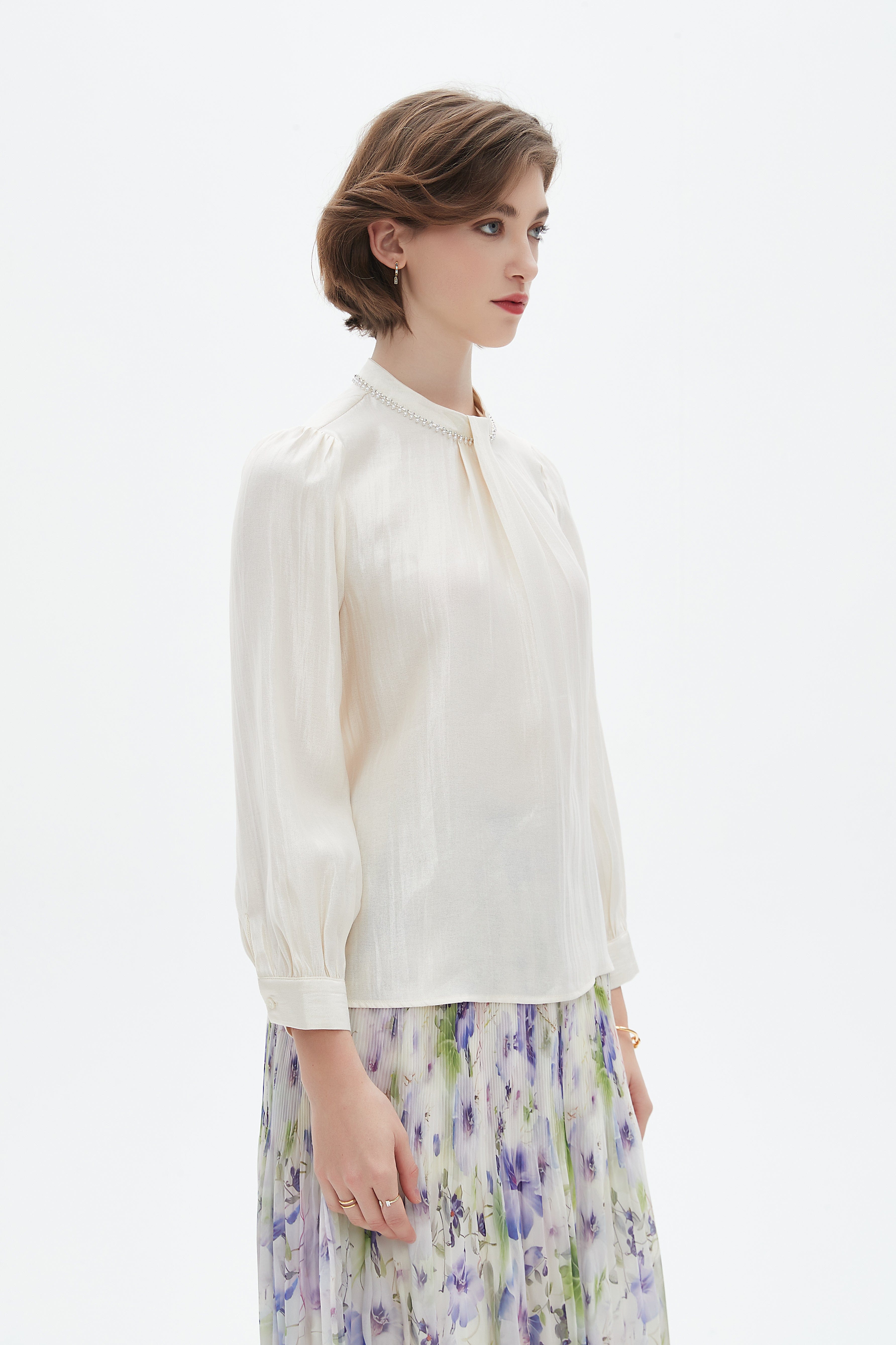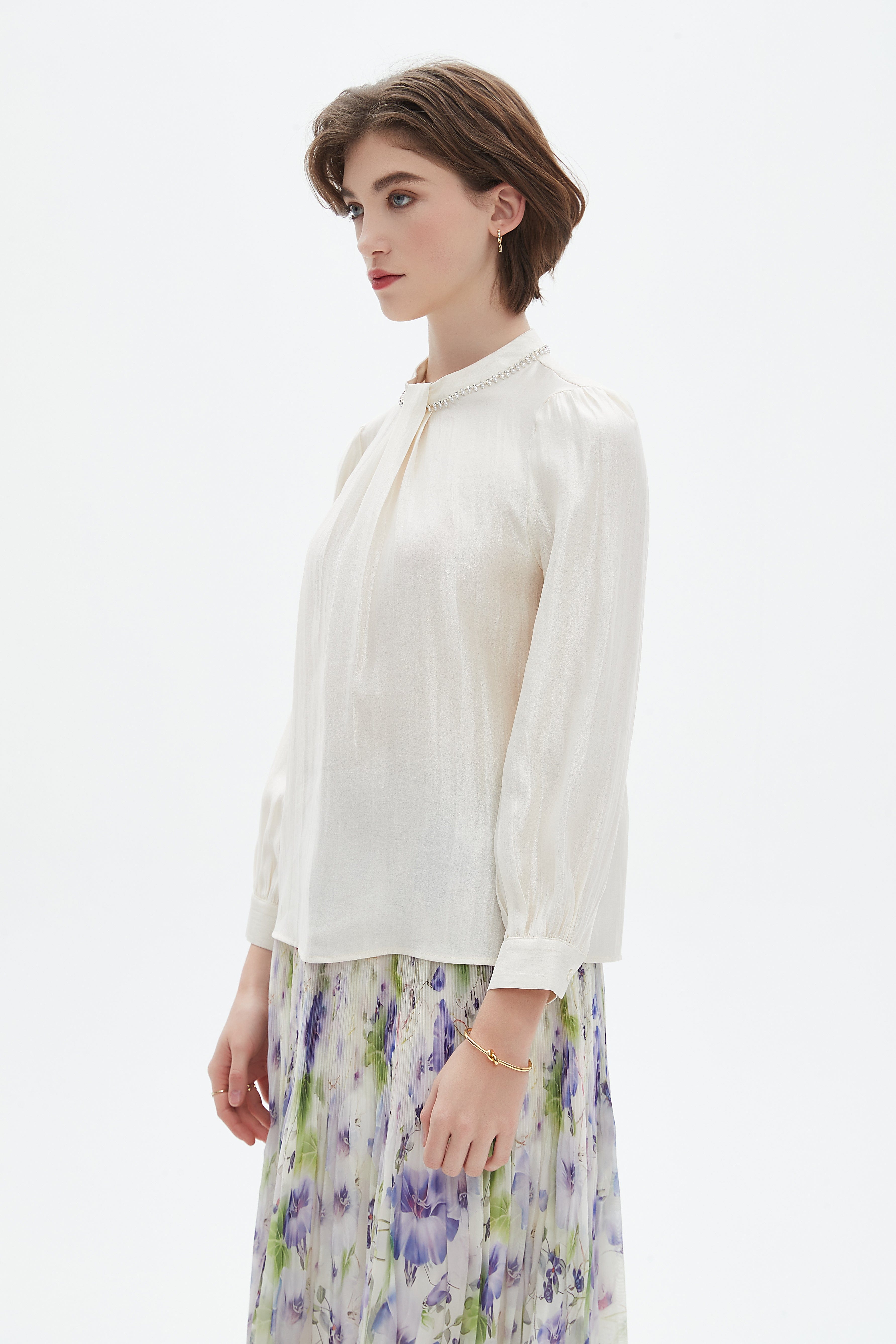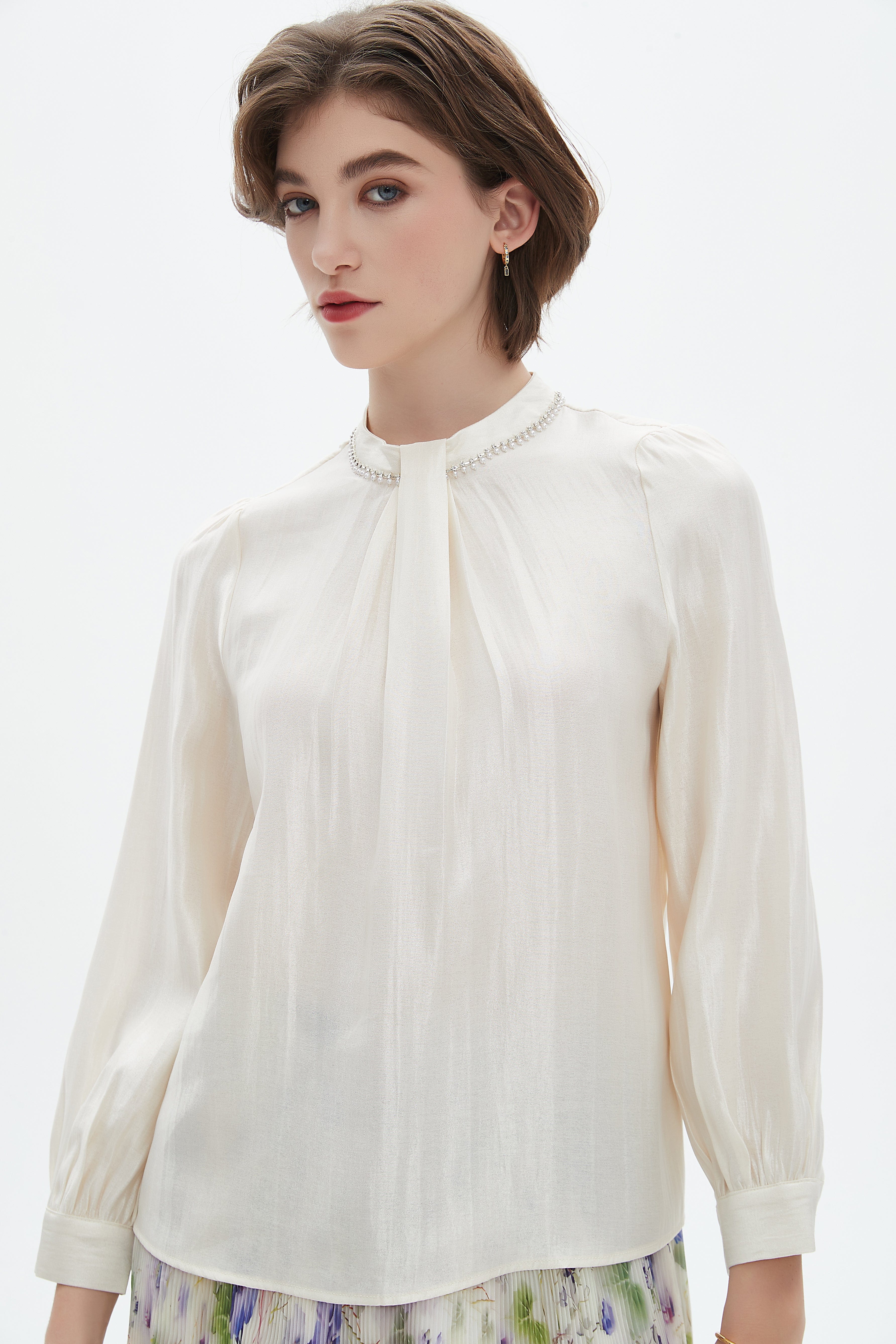 بلوزة نسائية بأكمام طويلة ورقبة مدورة