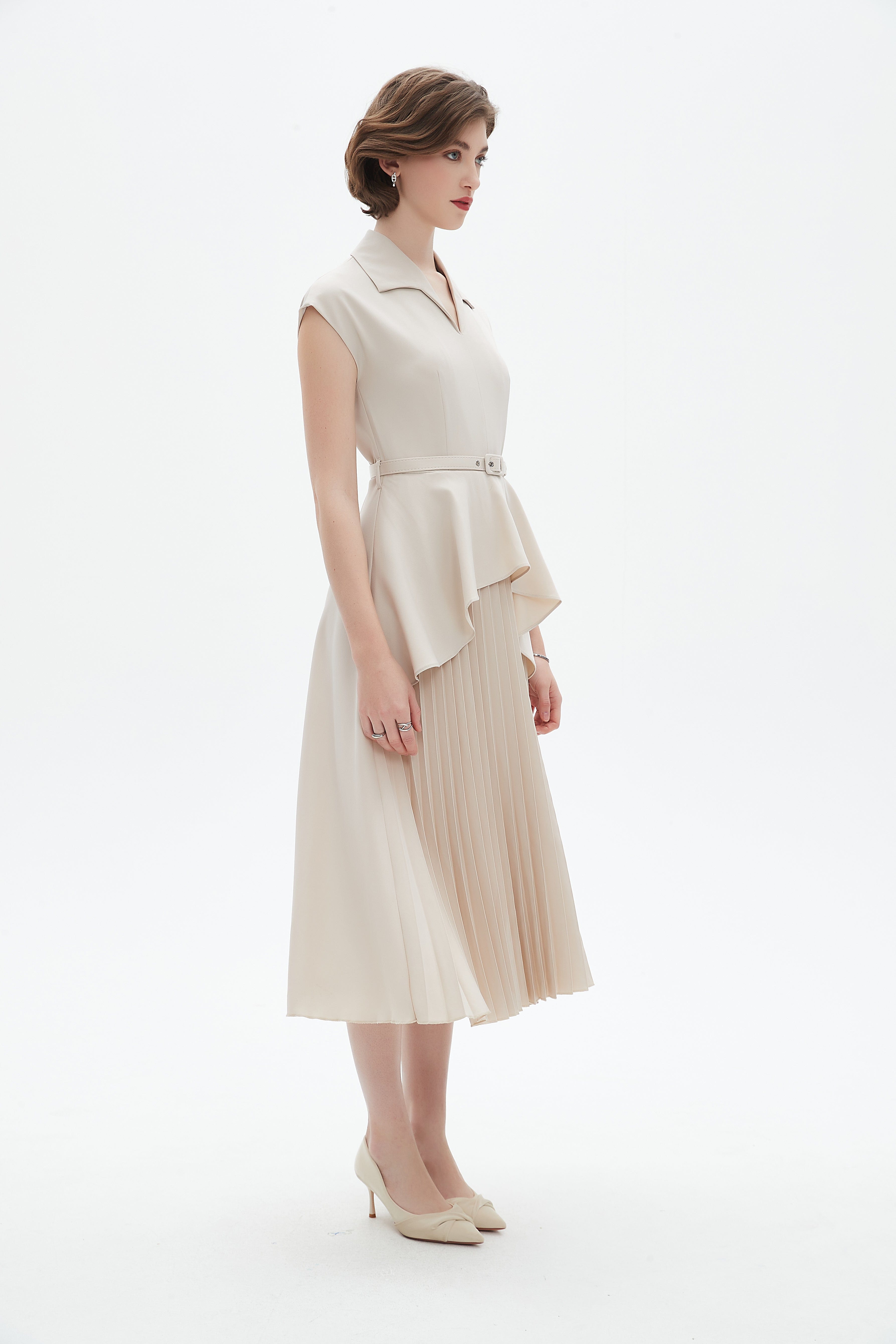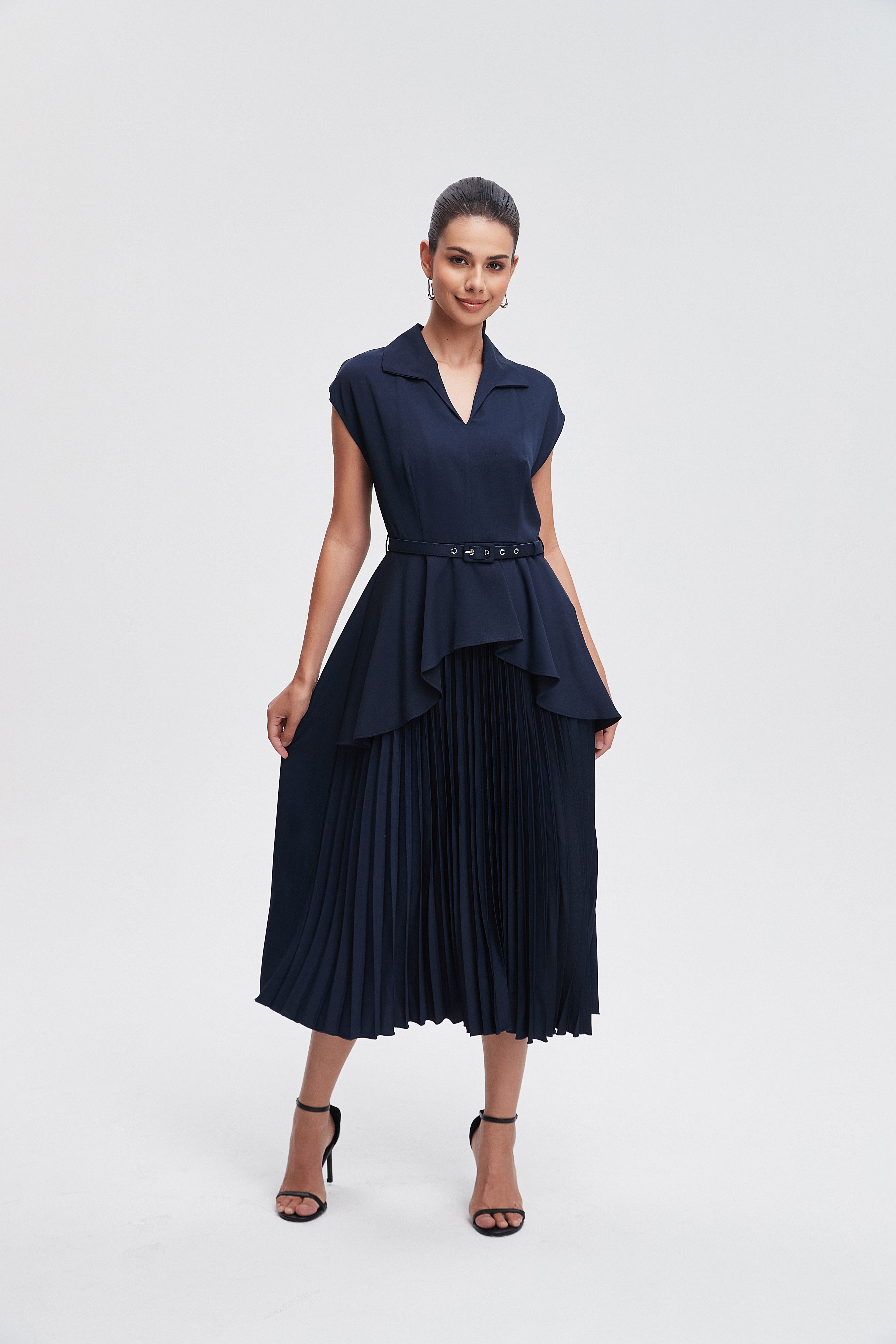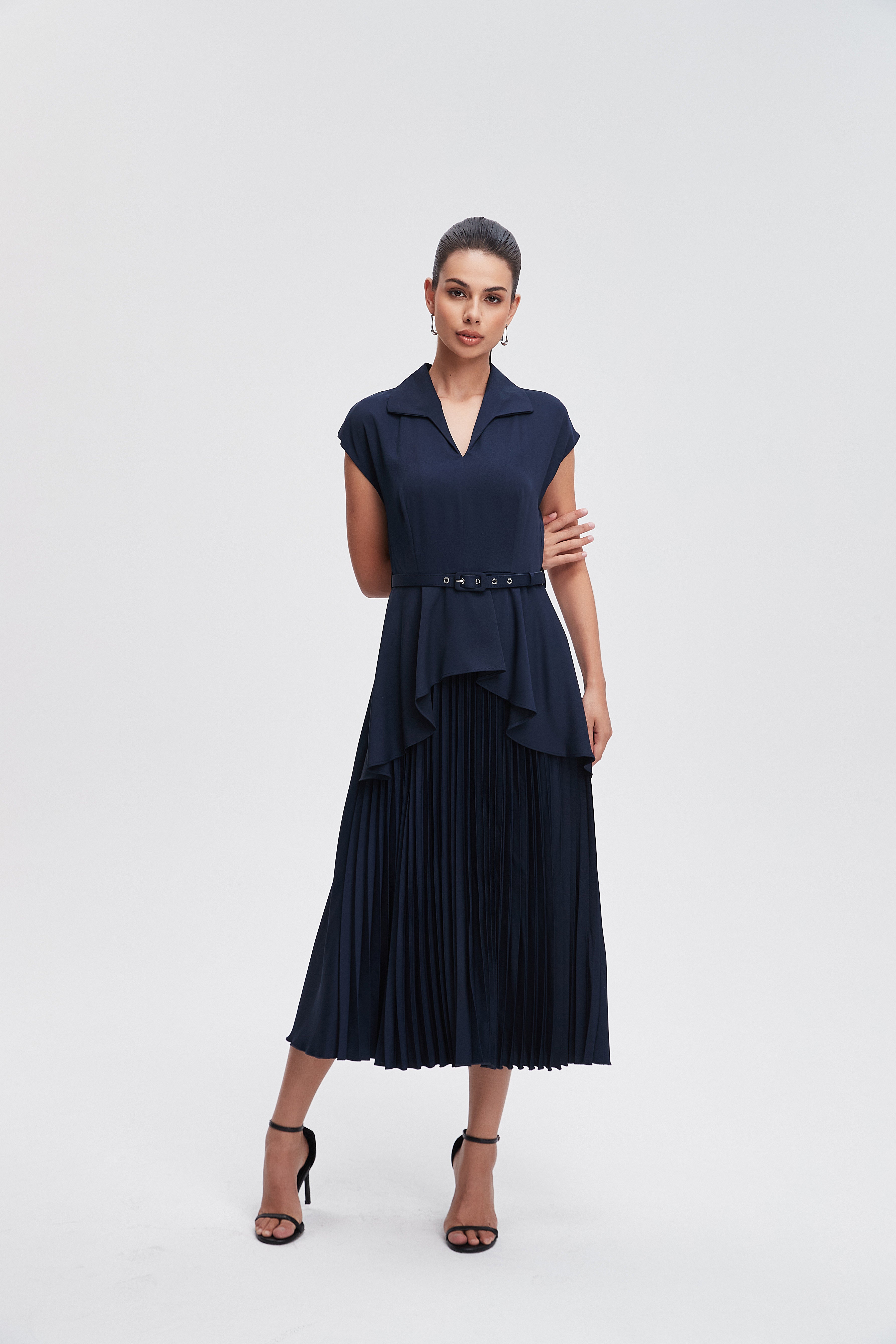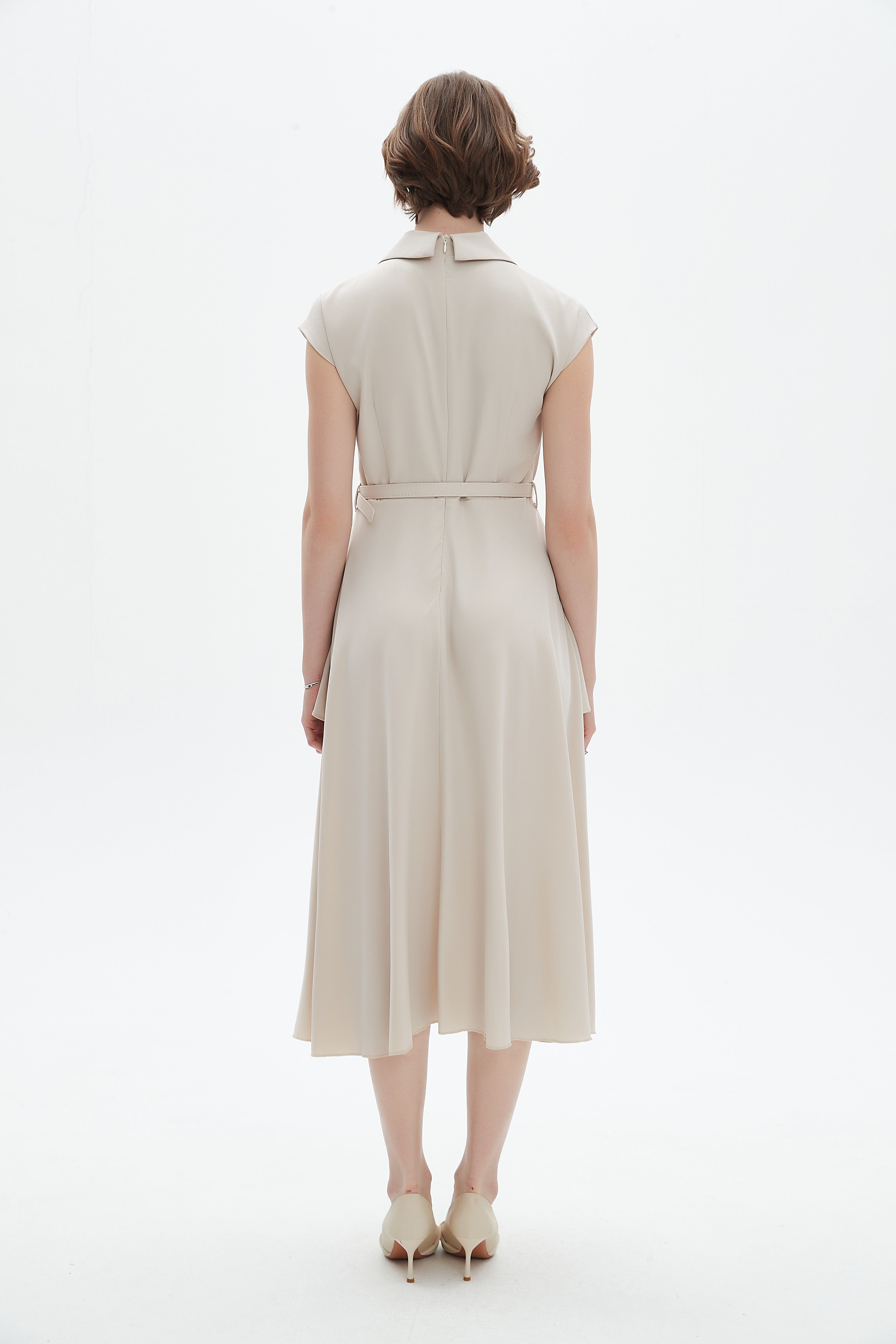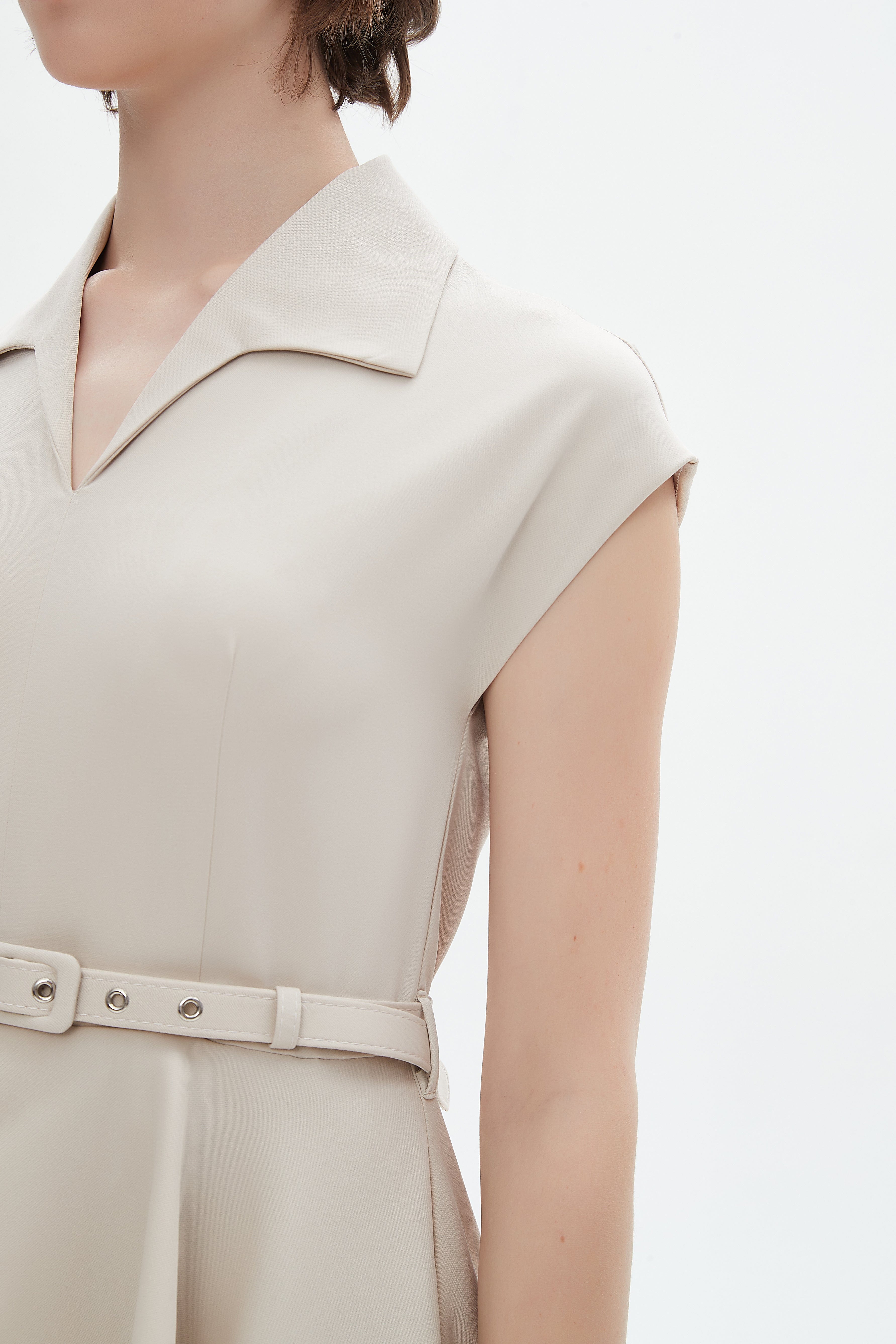 فستان ميدي بيلسيه بدون اكمام بياقة قميص وحزام عالخصر