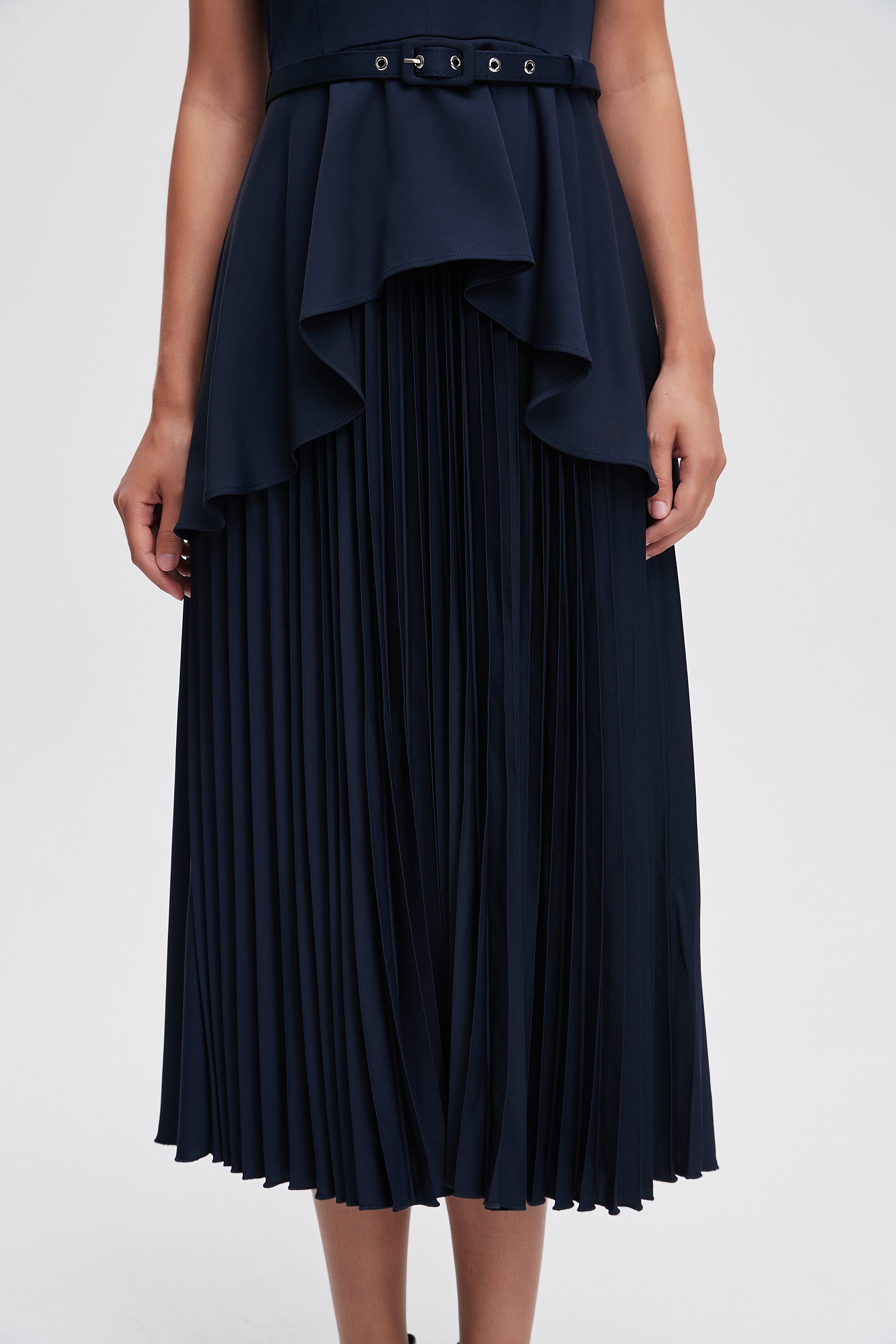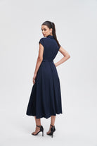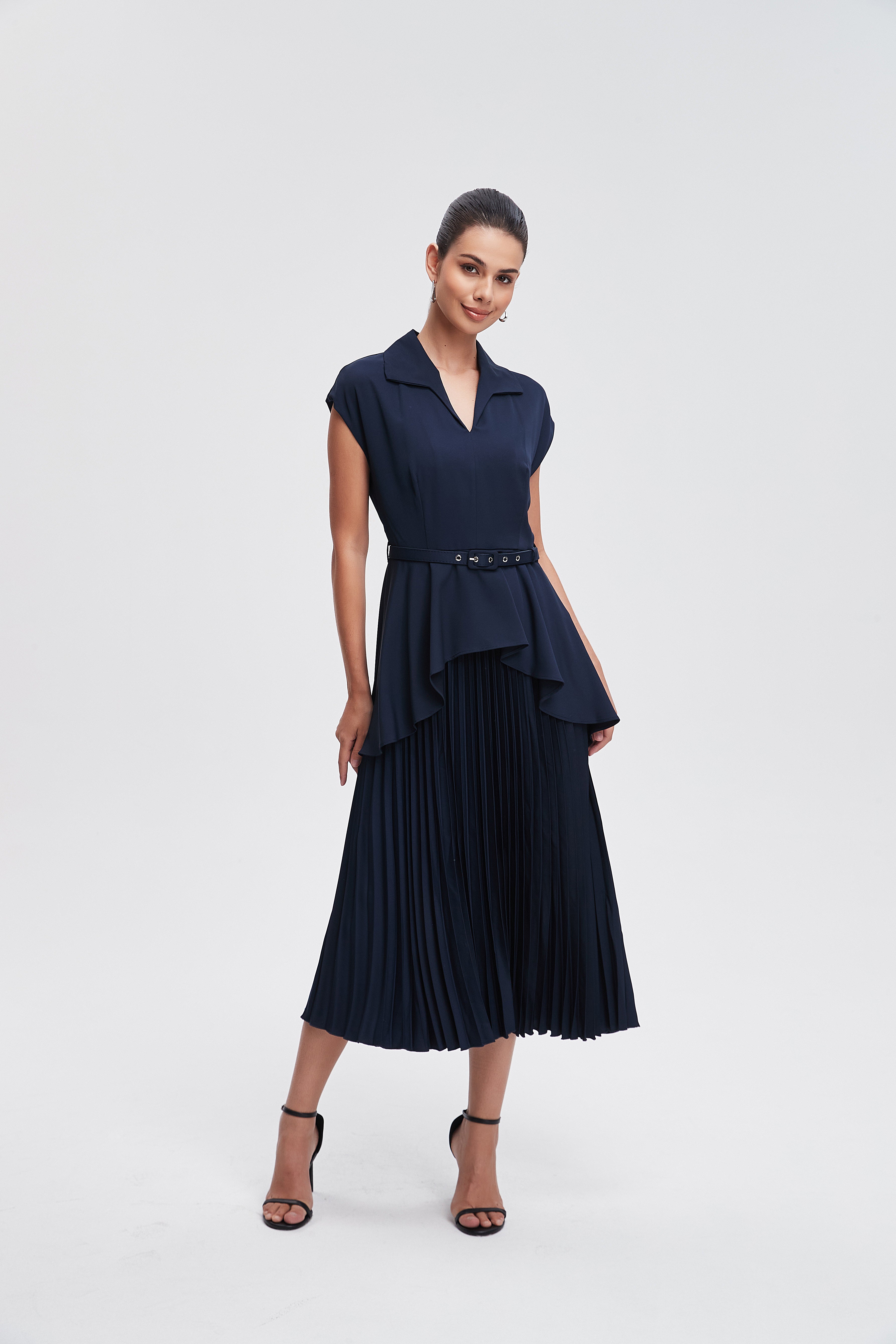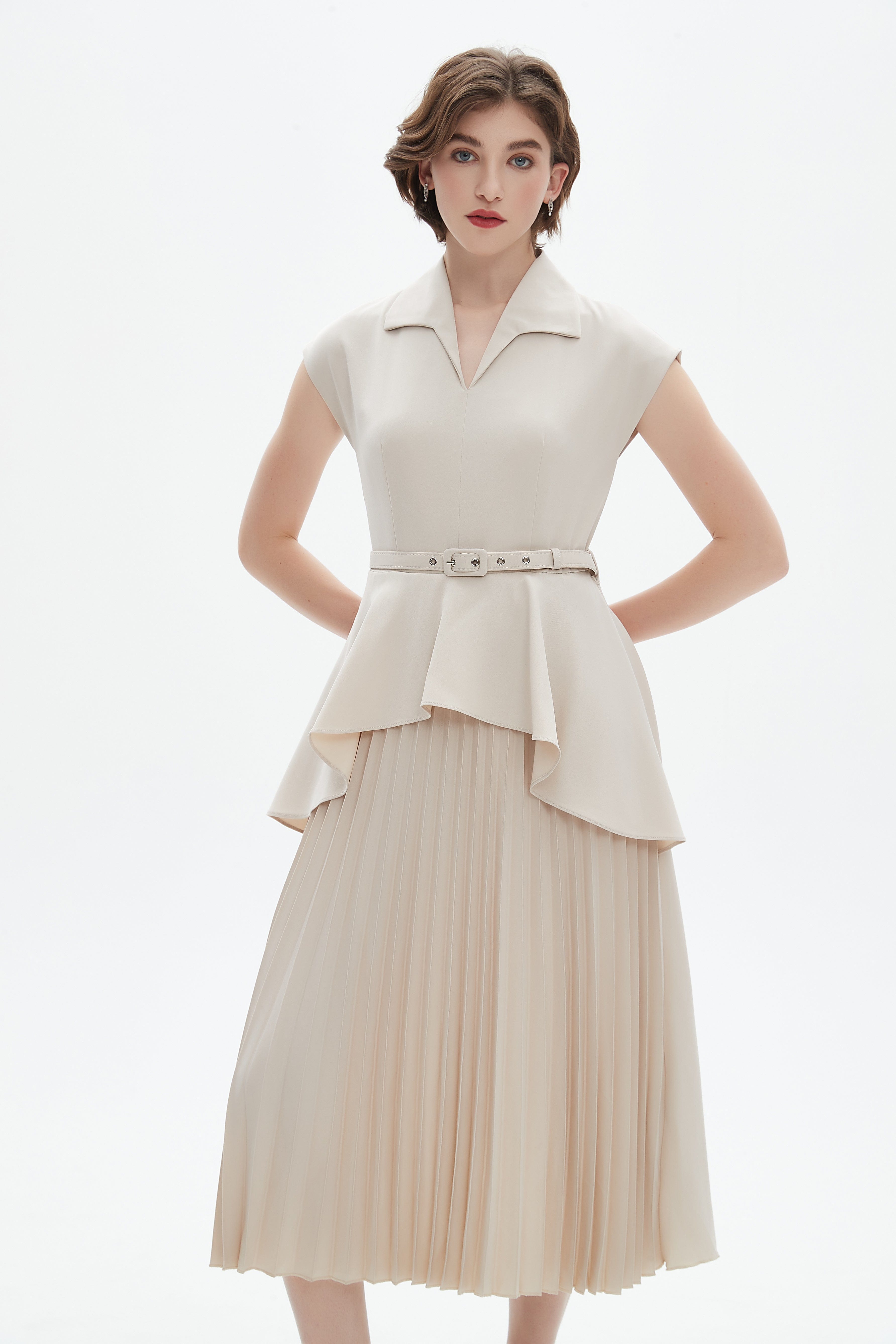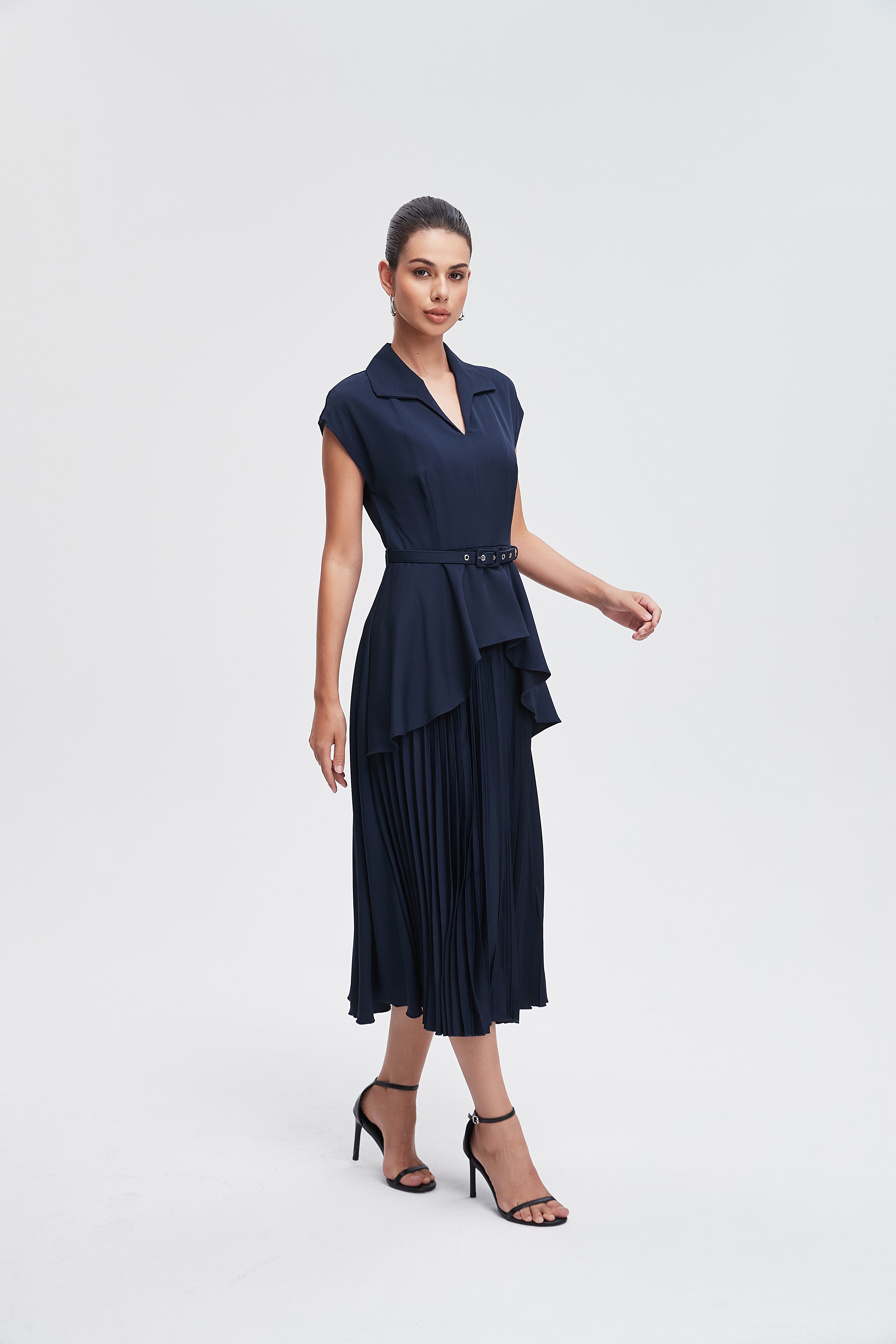 فستان ميدي بيلسيه بدون اكمام بياقة قميص وحزام عالخصر