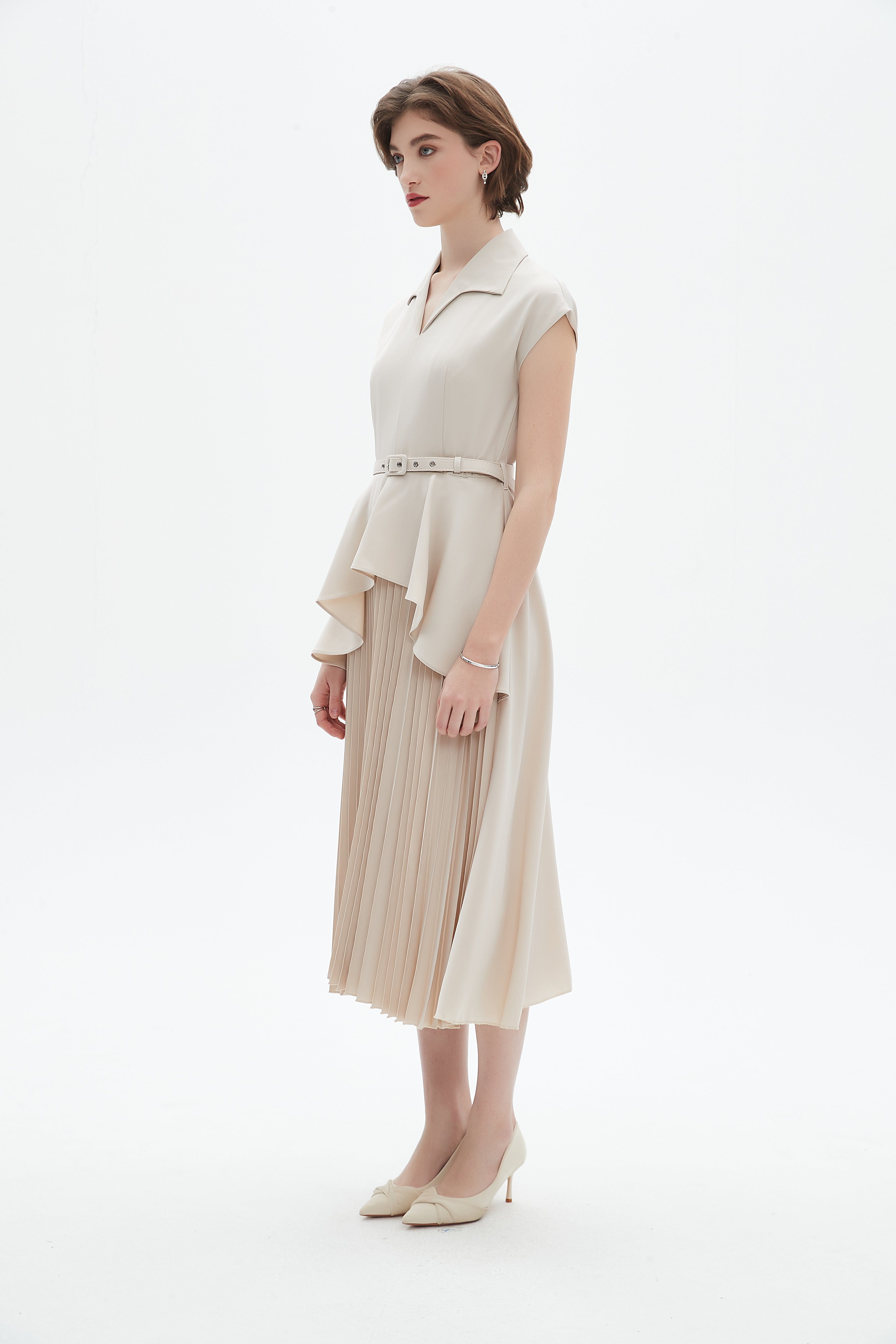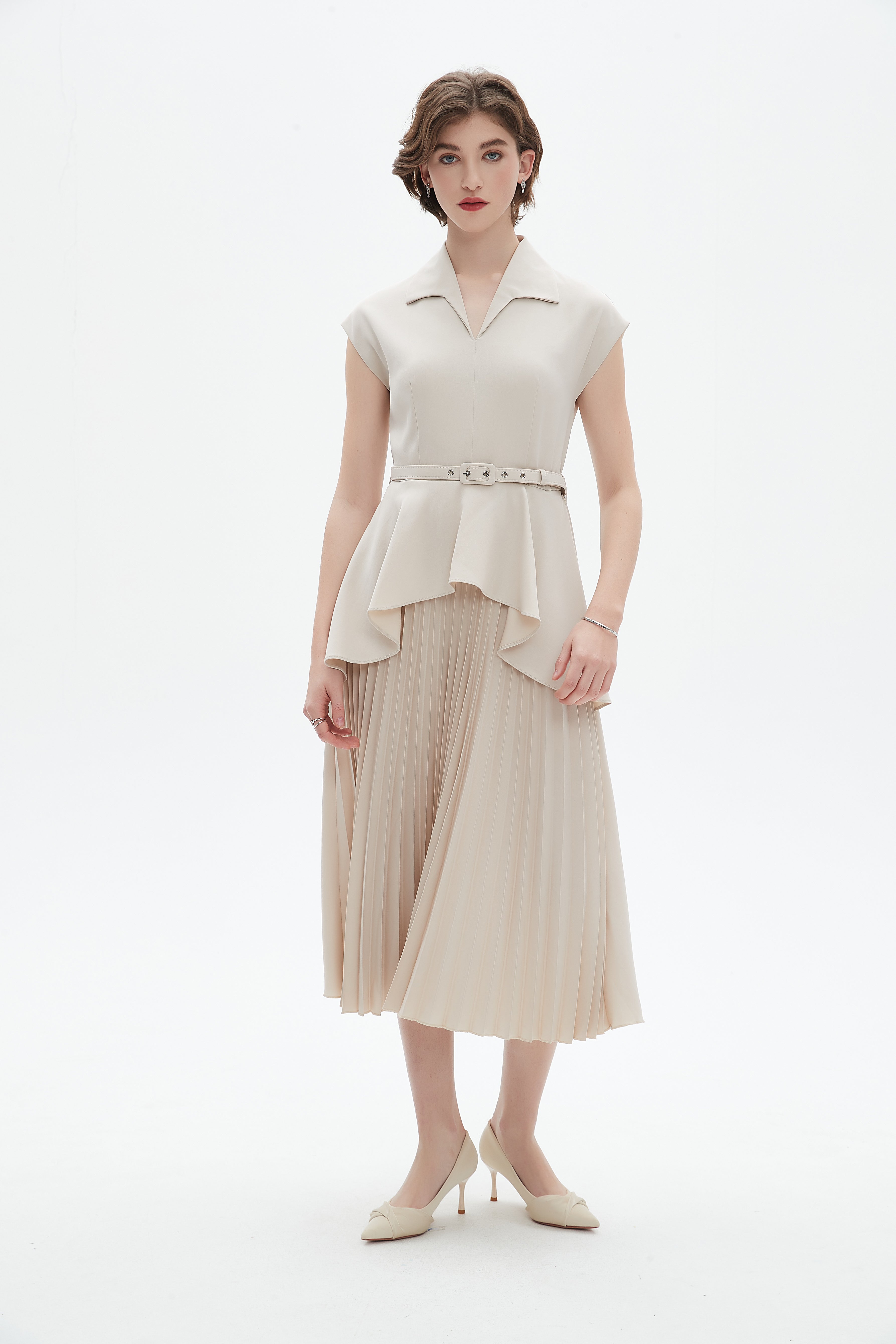 هل تبحثين عن فستان رسمي يبرز أنوثتك من غير تعقيد؟ هذا الفستان رائع للقاؤات المكتبية والمناسبات الرسمية. الخامة الأساسية من بوليستر 100% تمنحك مظهر مرتب وسهل العناية، مع وزن متوسط يناسب كل المواسم. القصة A مريحة وتسرح بحركة جذابة عند المشي، والطول ميدي يمنح توازناً أنيقاً بين المحافظة والعصرية. ياقة القميص تضيف لمسة رسمية، والفستان بلا أكمام ليبقى مناسباً تحت بليزر أو كارديغان. الجزء العلوي مزود بكورسيه يعطي دعم وتحديد للخصر، والإغلاق يتم بواسطة الحزام المرفق الذي يكمل مظهره البيج الهادئ. لا جيوب داخلية، والقصة عادية لتناسب الإطلالات الرسمية بكل سهولة. اعثري على مقاسك في فاشن السعودية وأضيفي هذه القطعة المتنوعة إلى خزانة ملابسك اليوم.