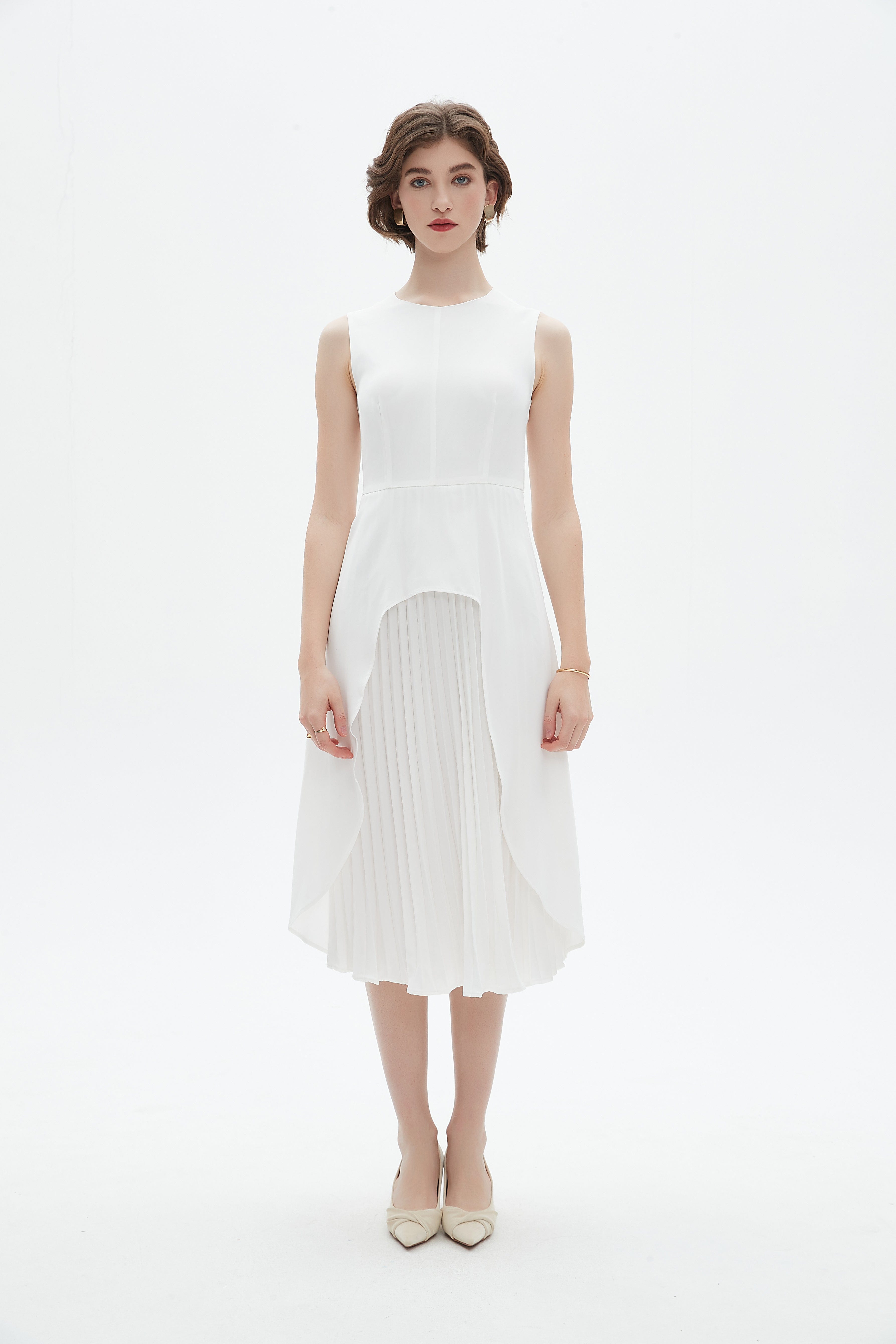 فستان ميدي بيلسيه بدون اكمام بياقة دائرية