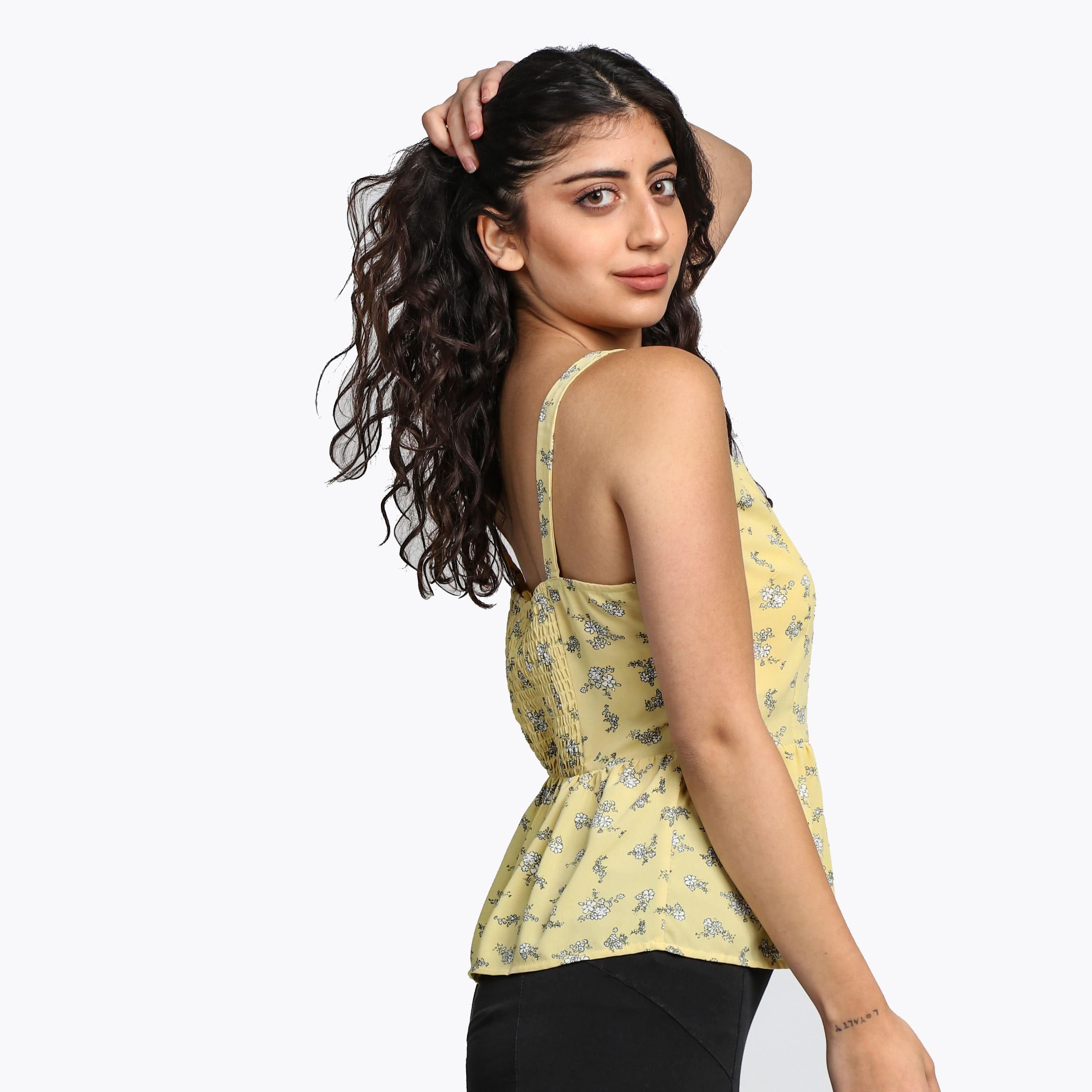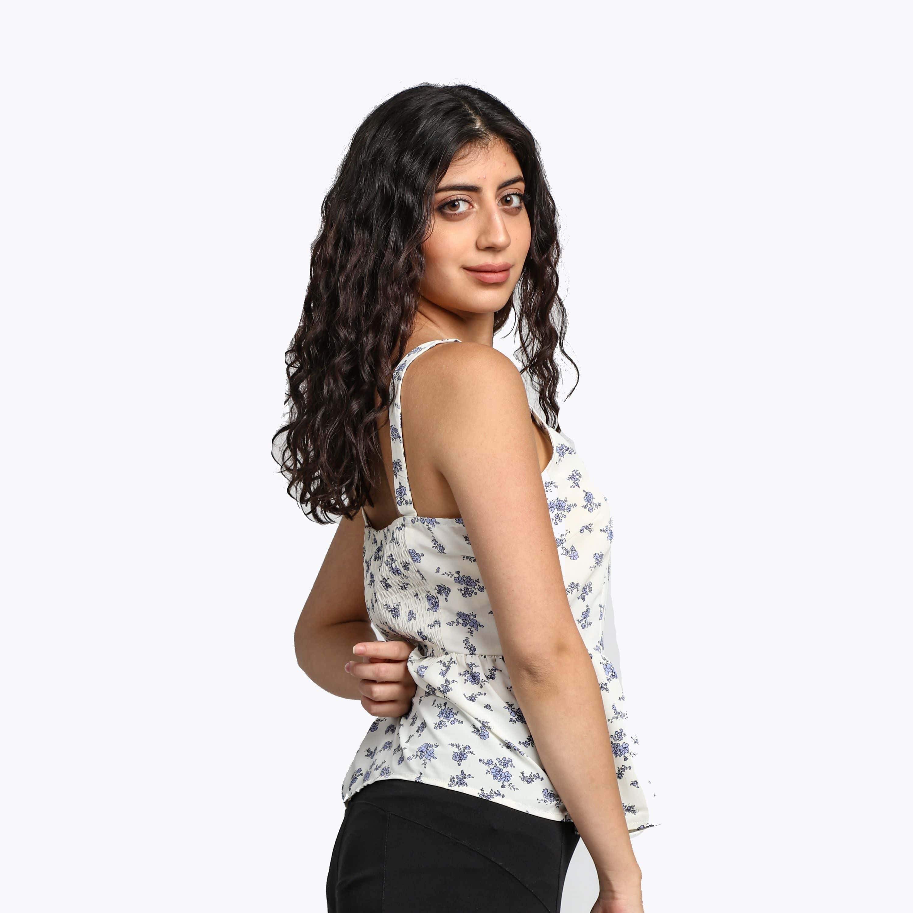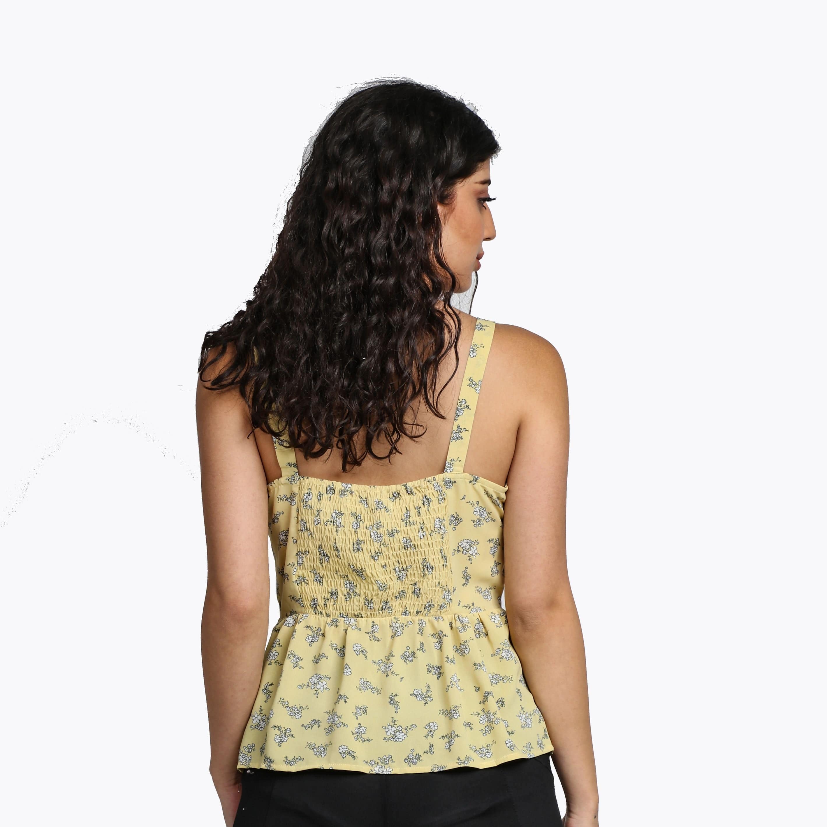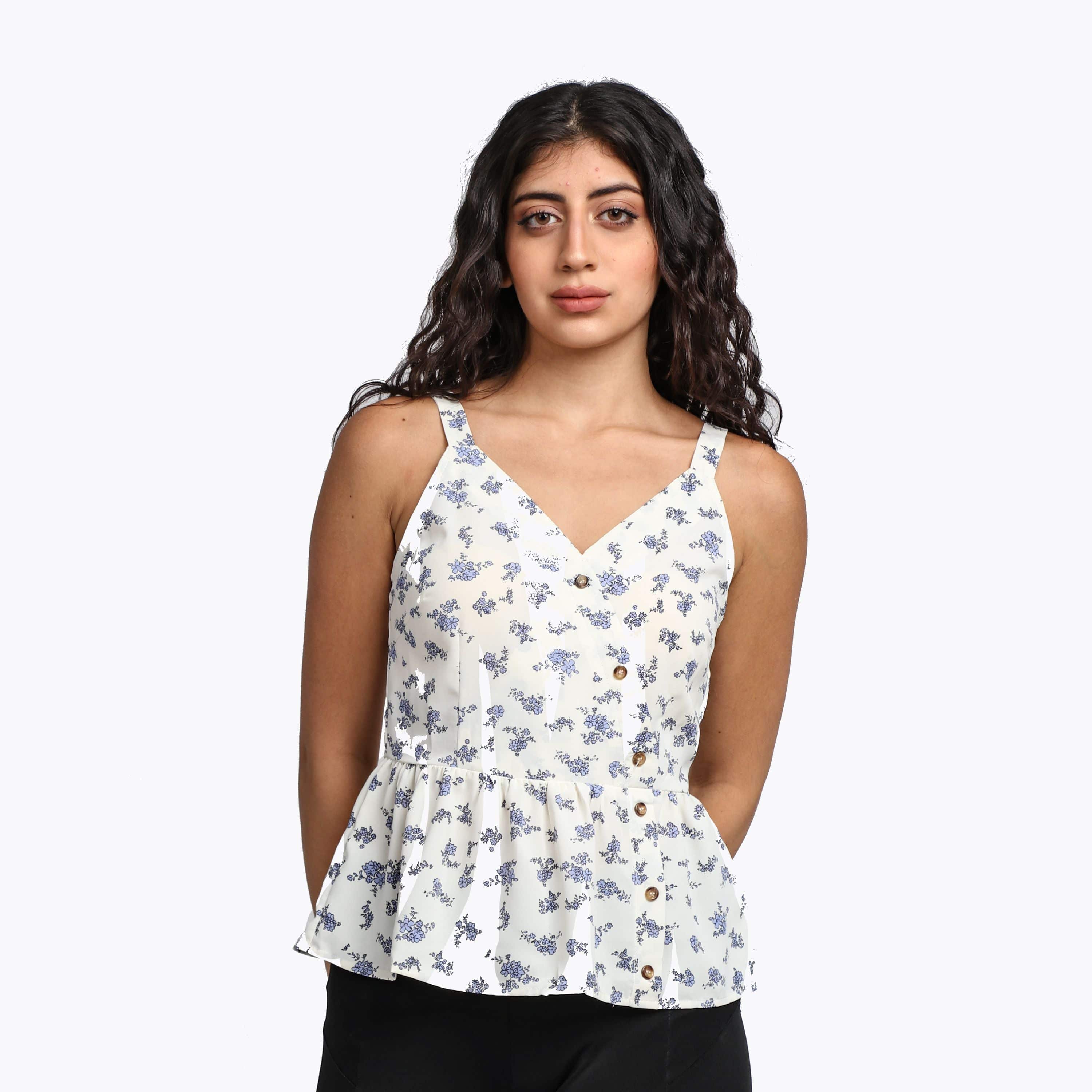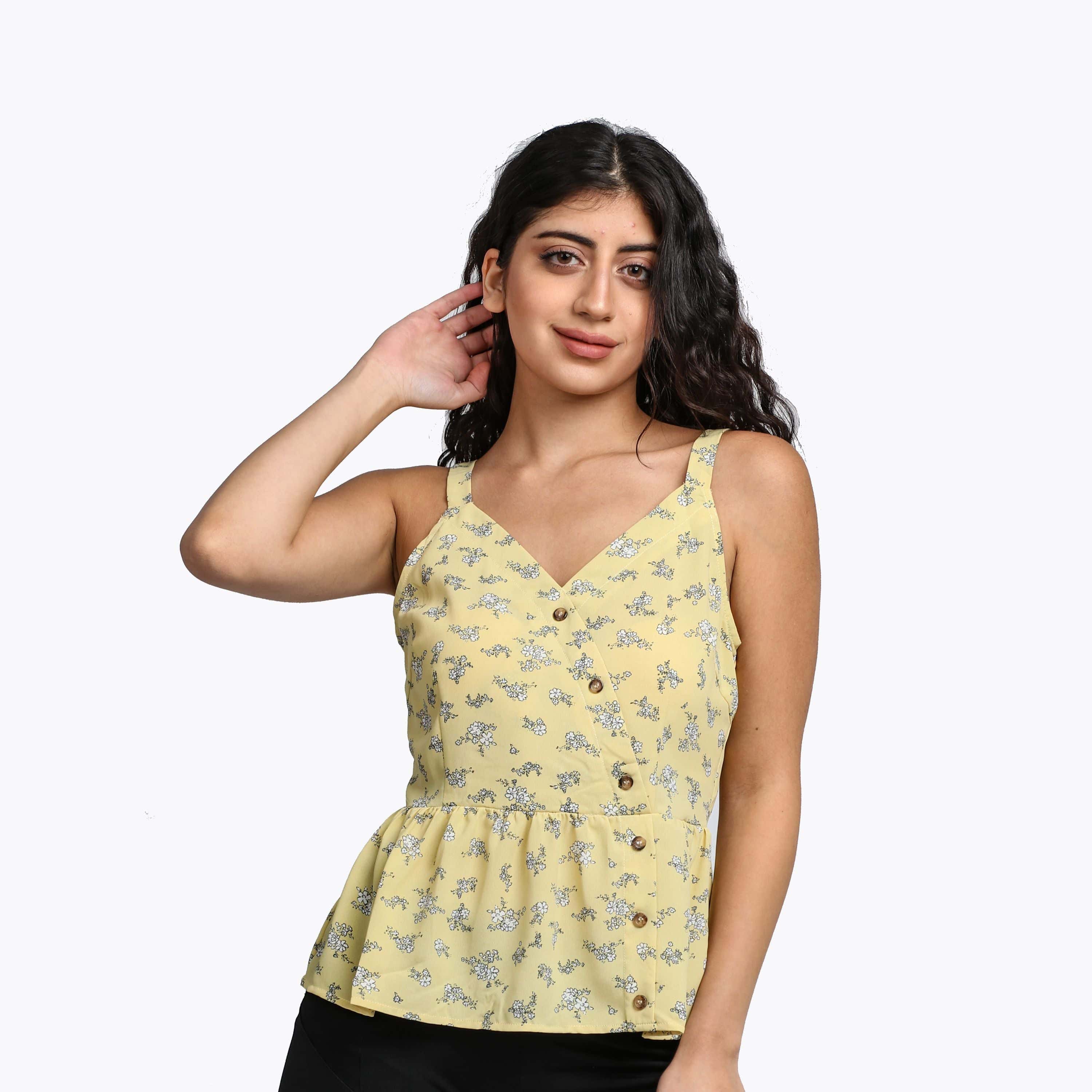 بلوزة مشجرة بأزرار جانبية وحمالات عريضة مكشكشة من أسفل نسائي