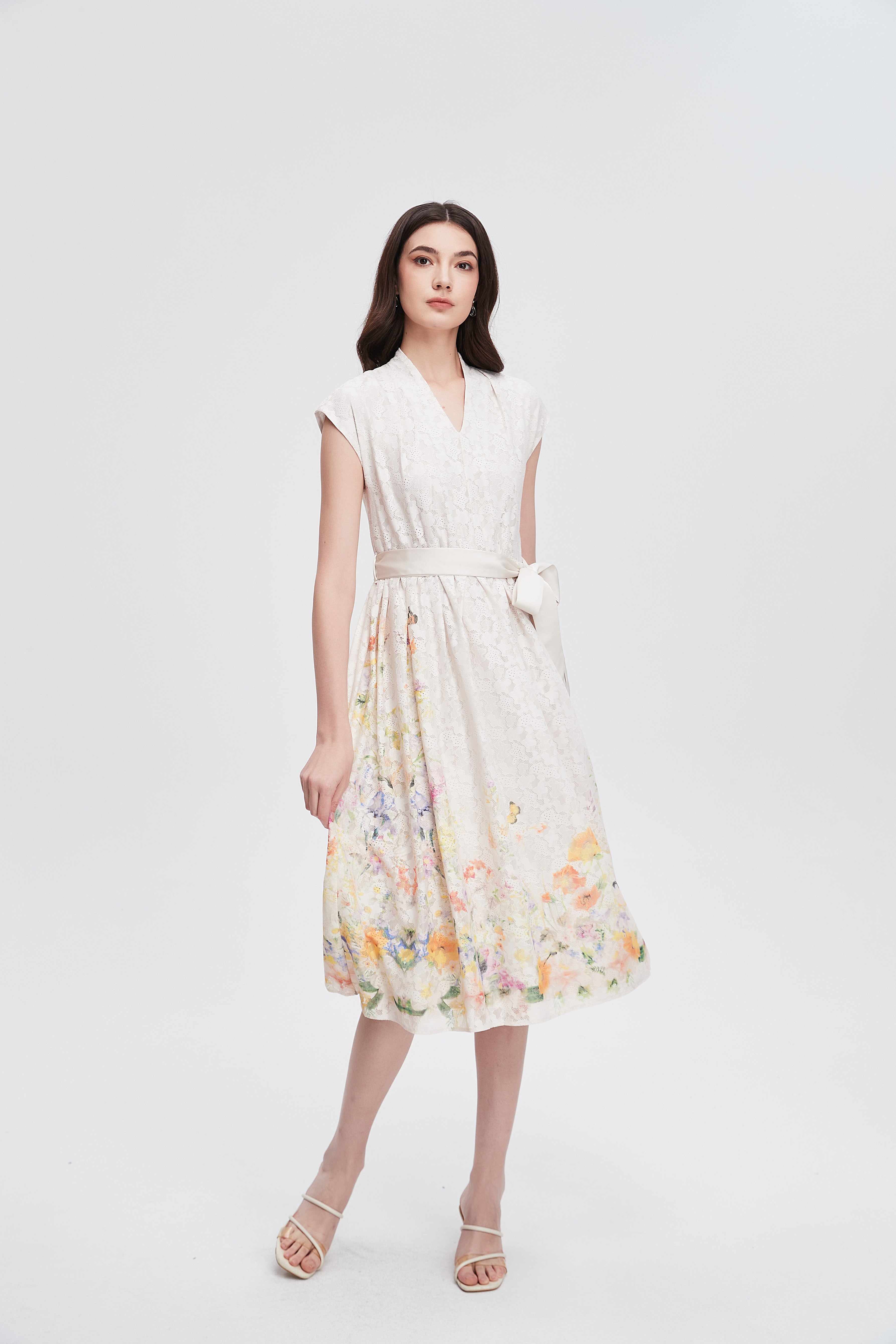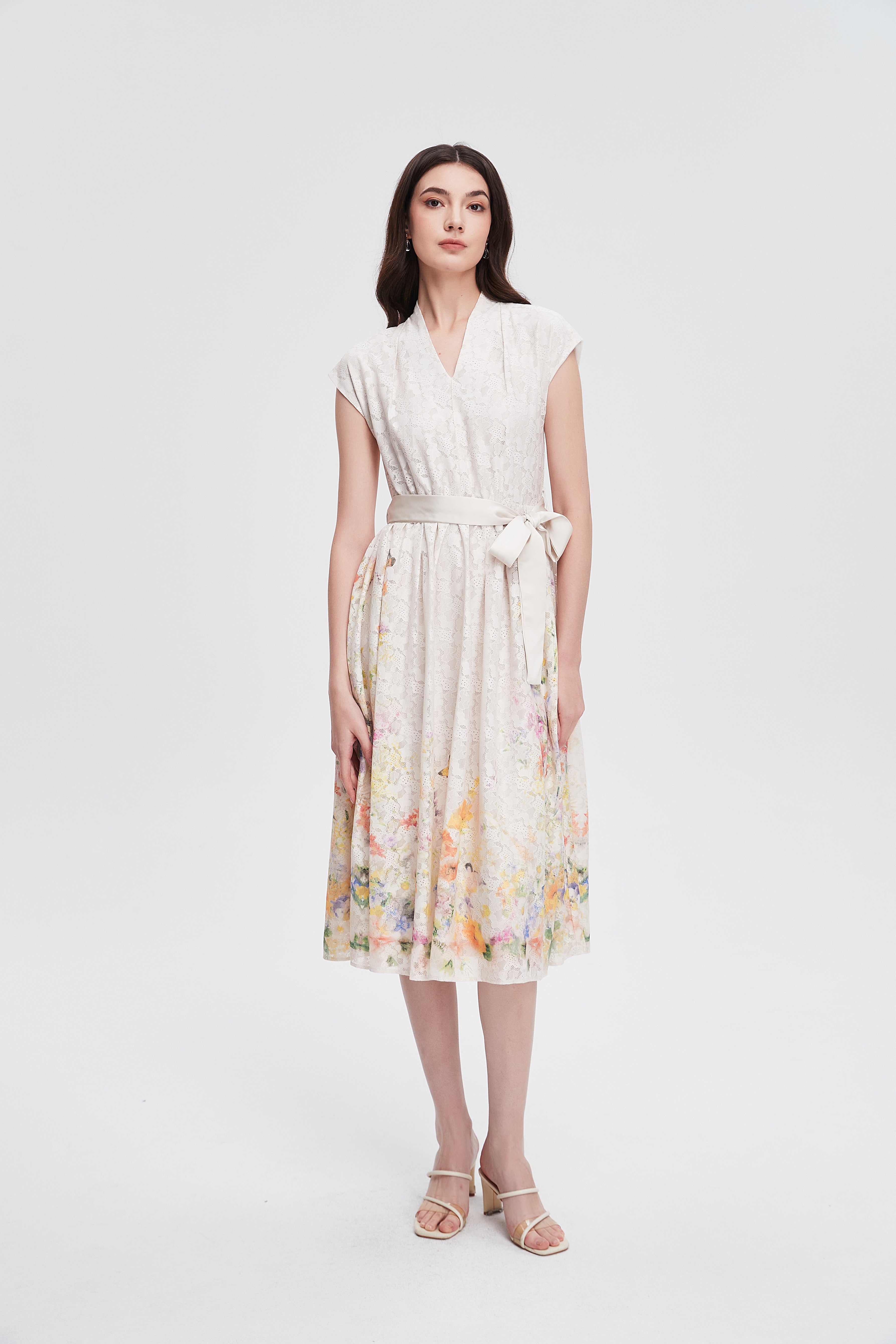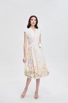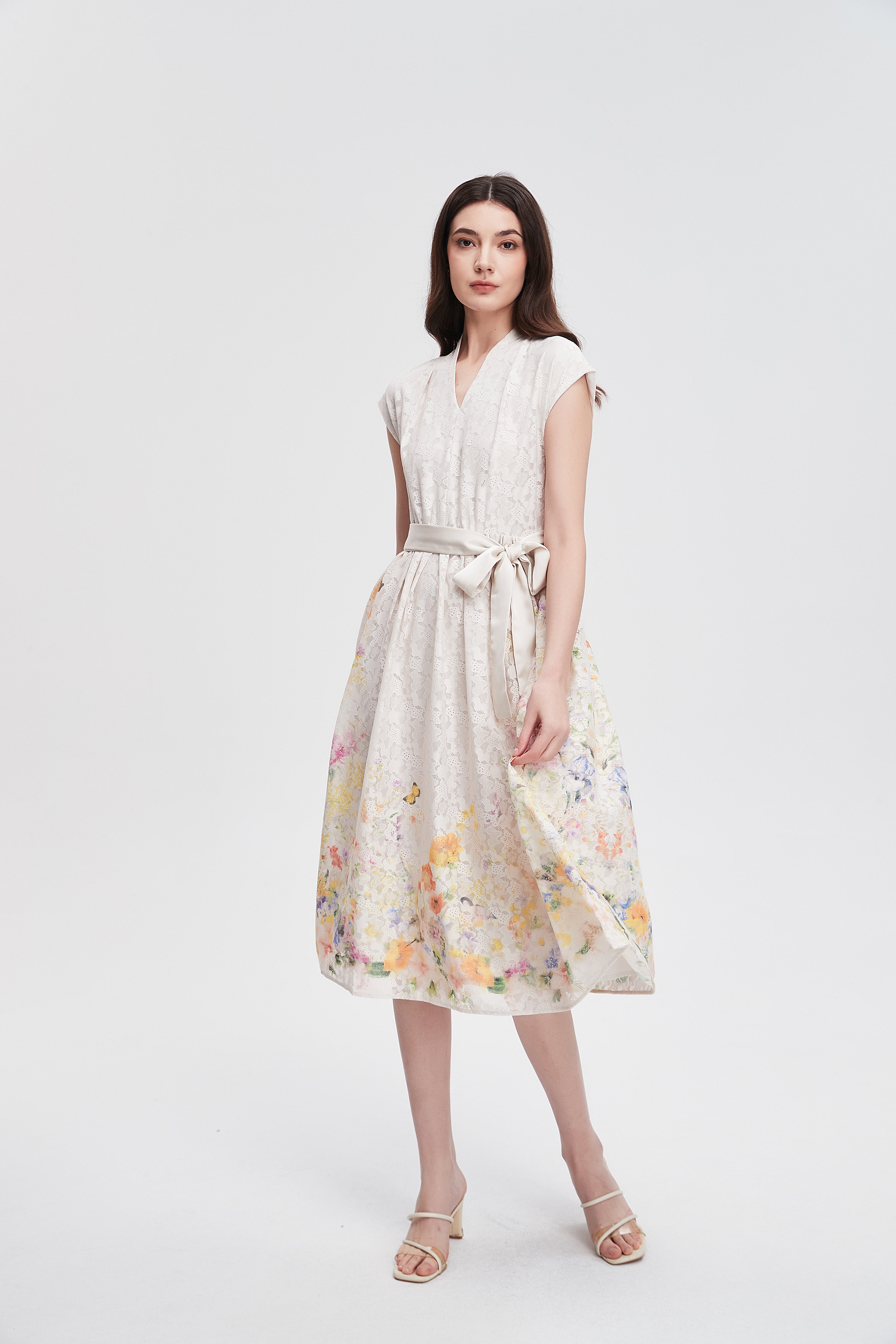 فستان ميدي مكشكش مورد بحزام على الخصر