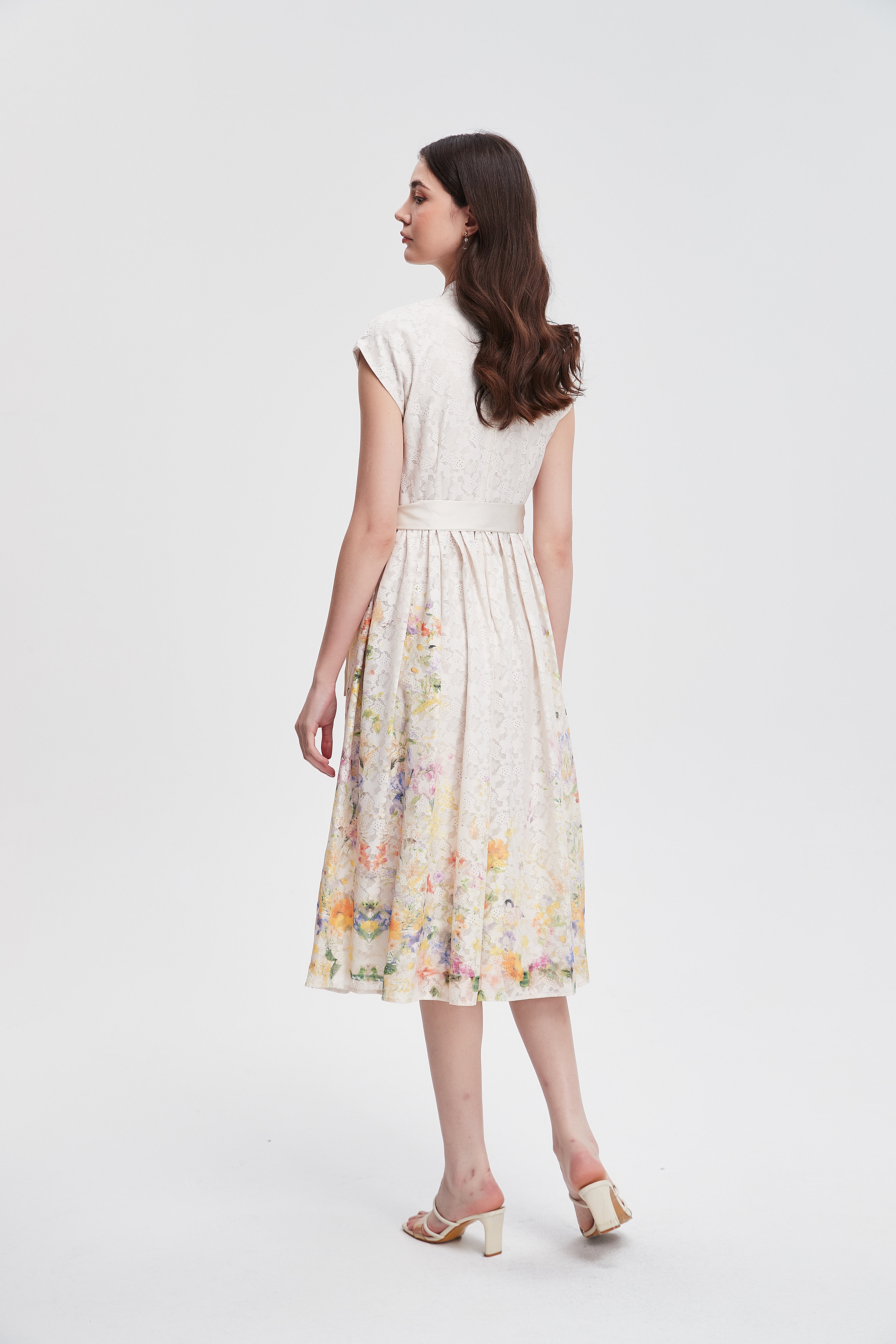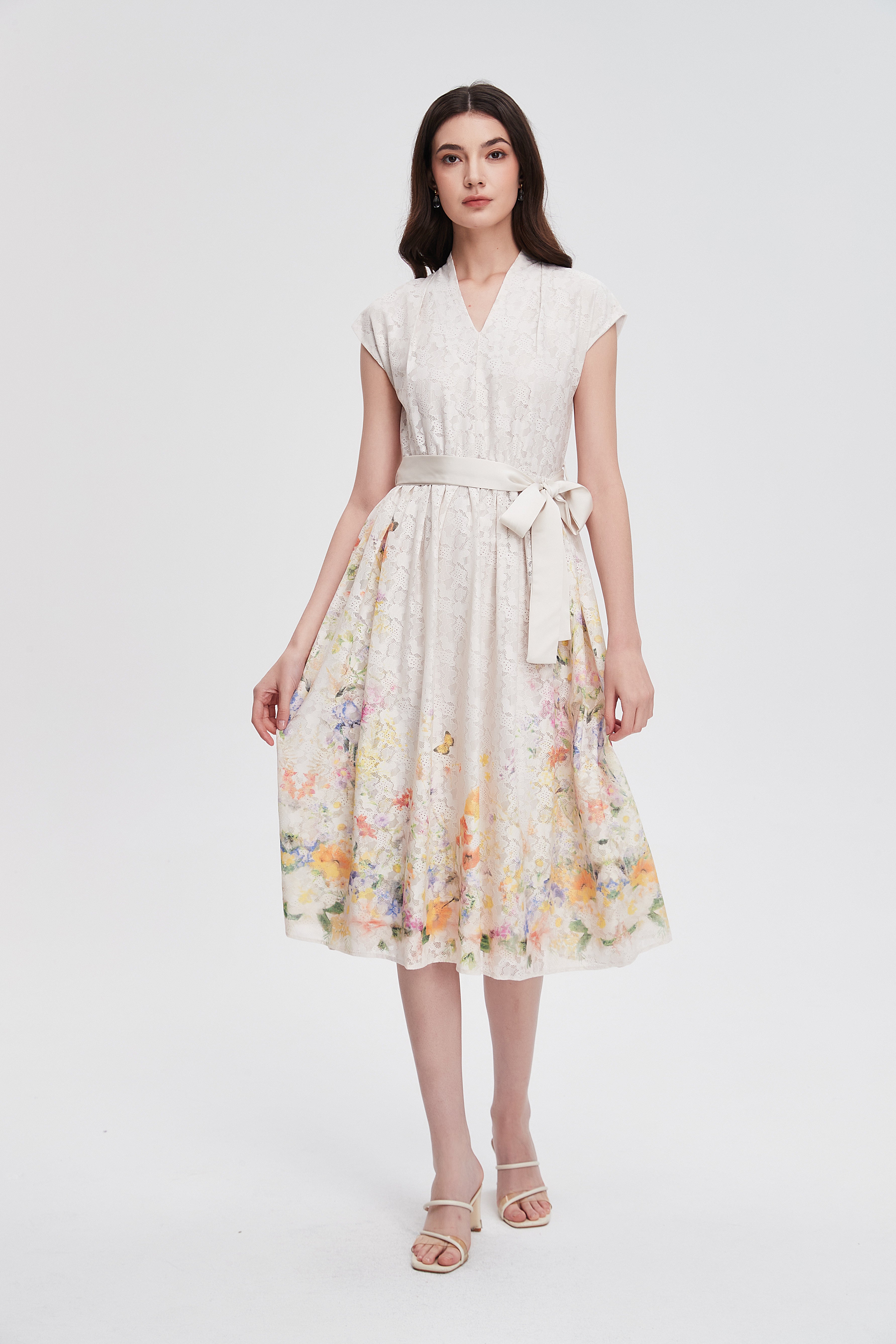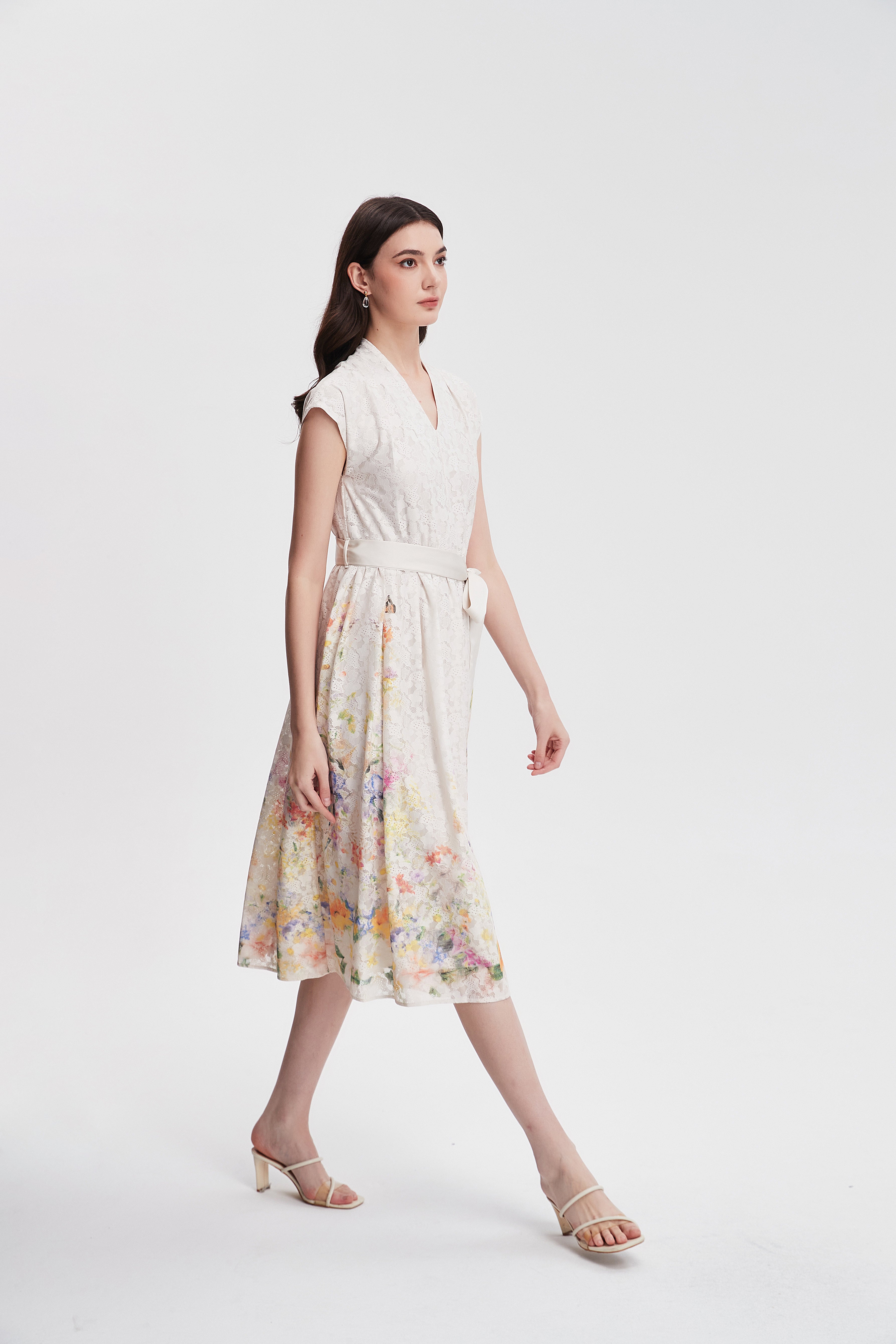 فستان ميدي مكشكش مورد بحزام على الخصر