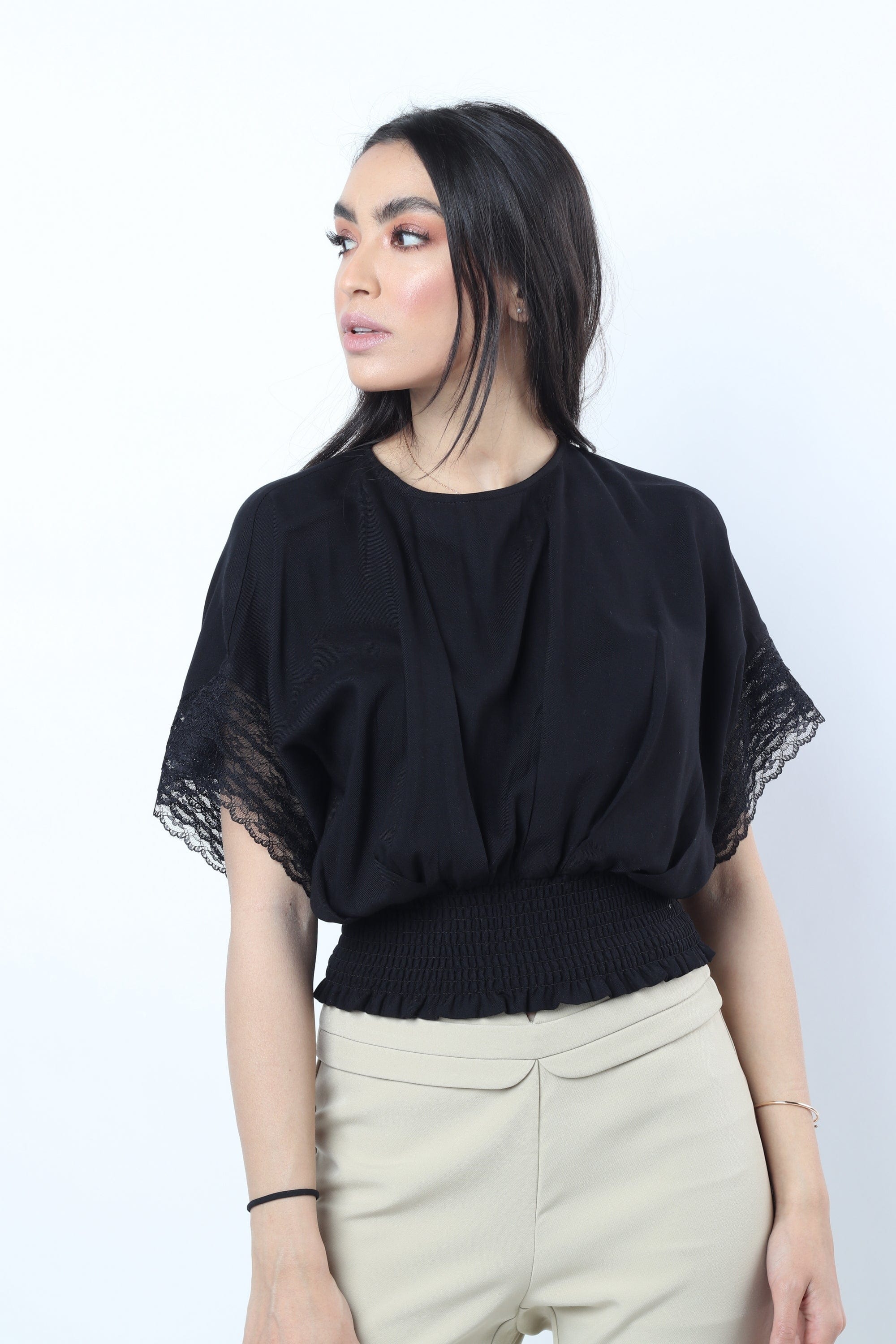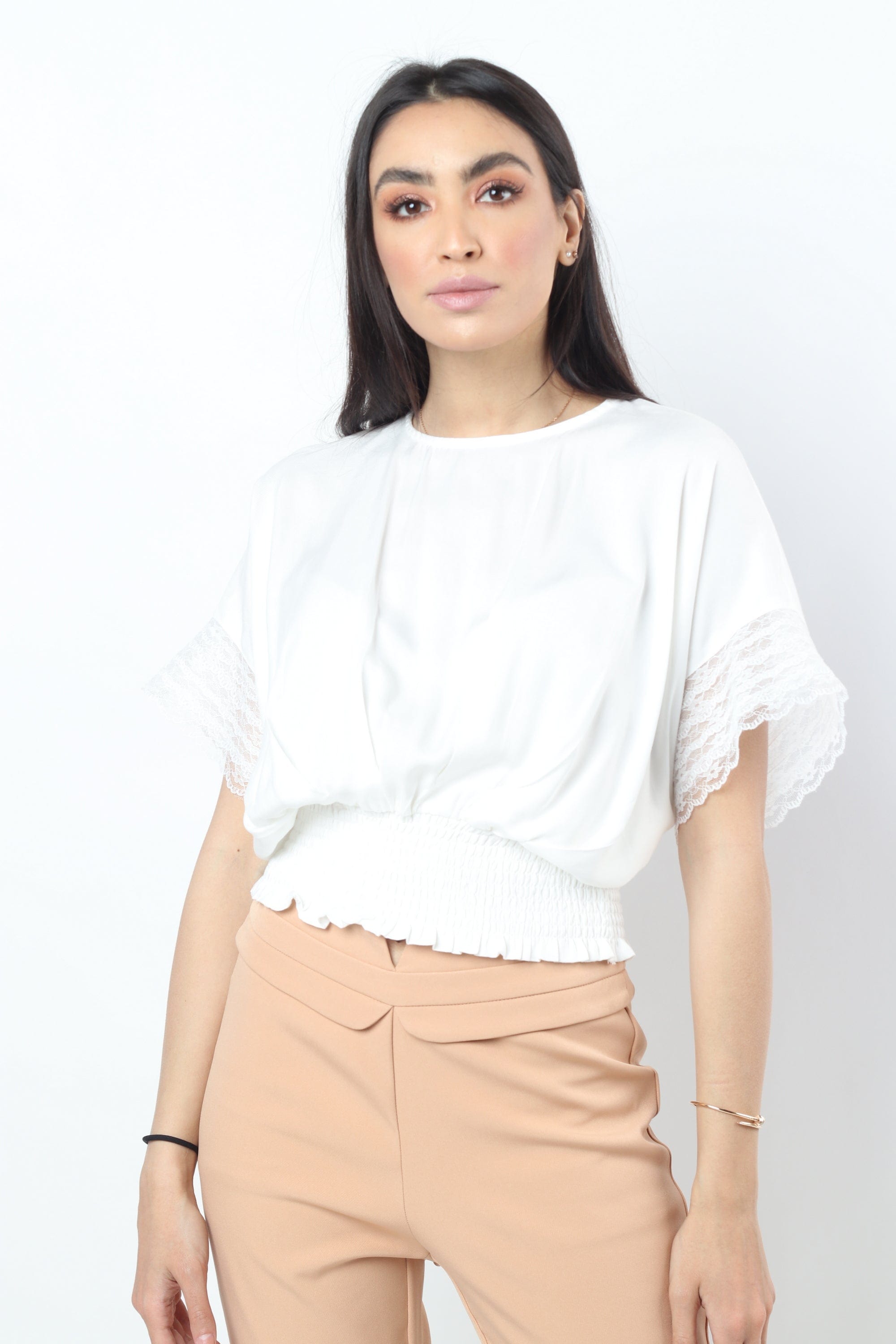 بلوزة قصيرة واسعة بوسط كم واسع قصير نسائي
