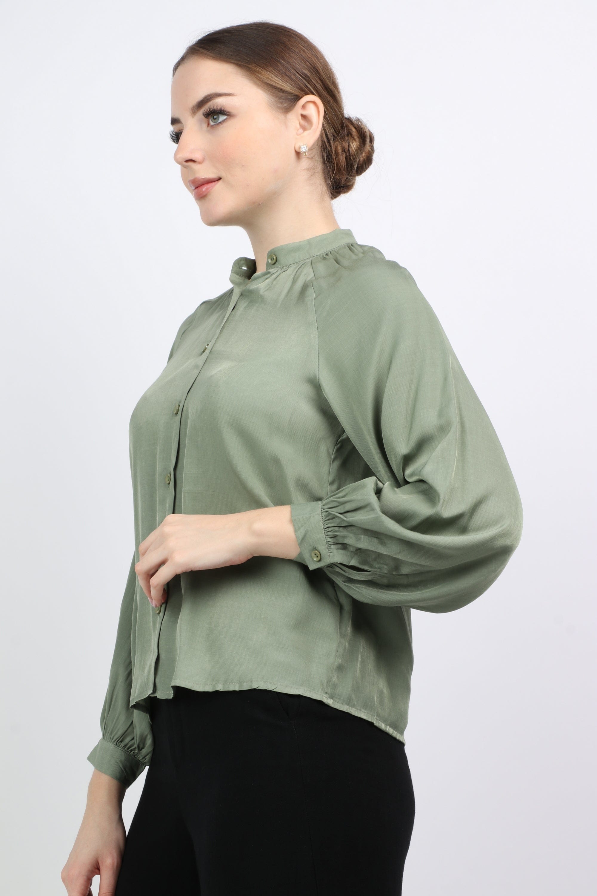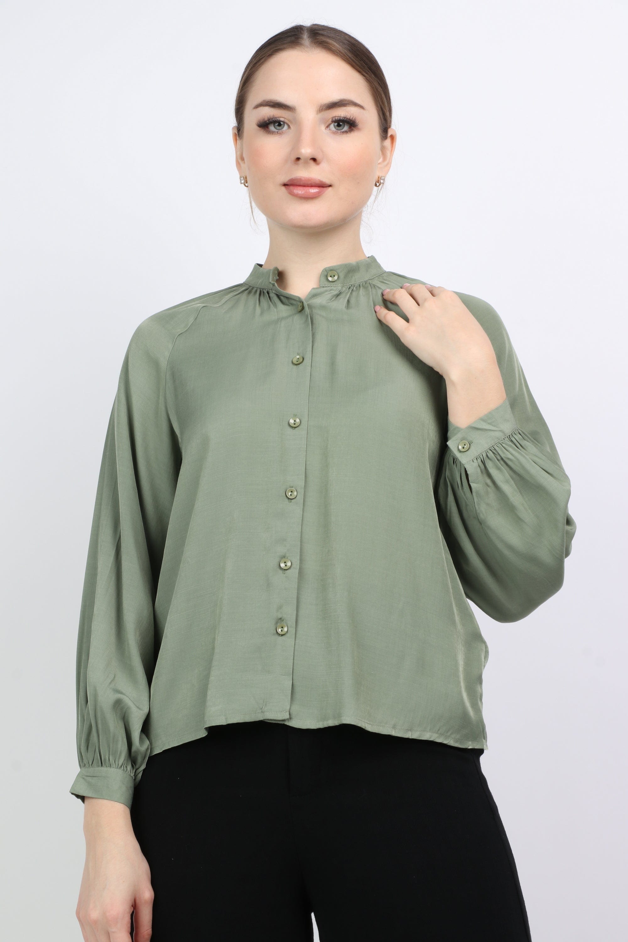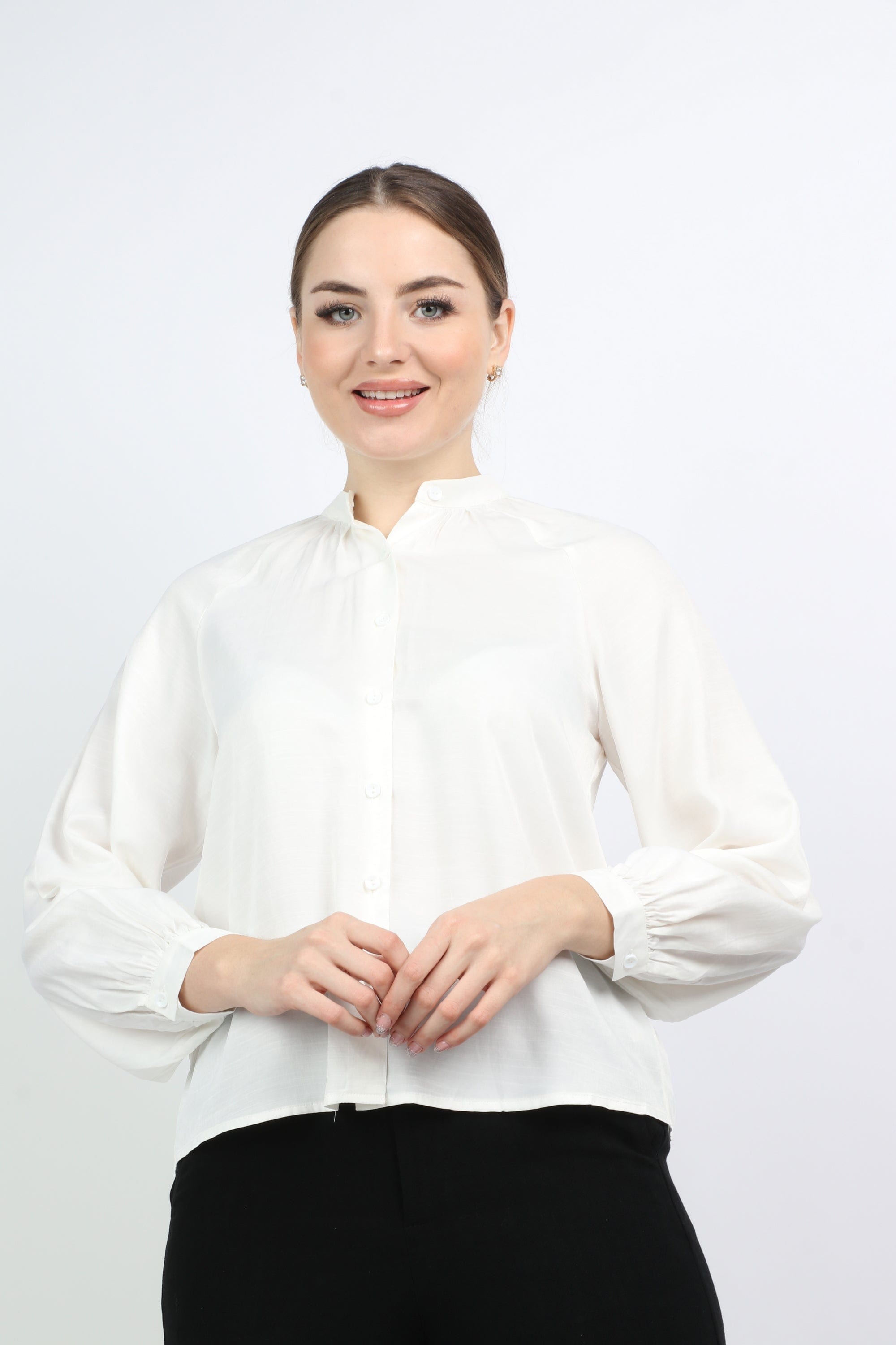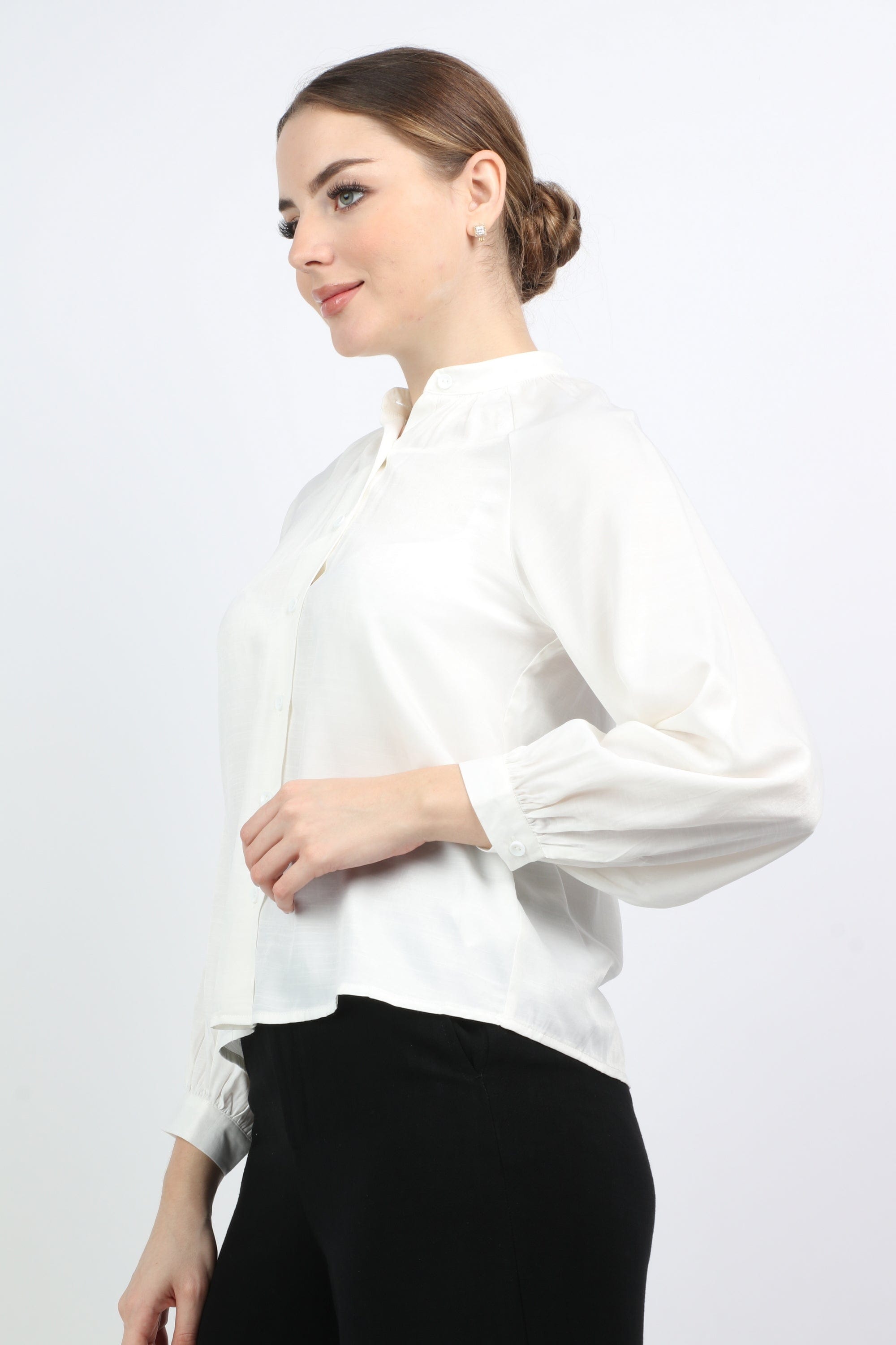 بلوزة رسمي بأزرار أمامية وكم طويل نسائي