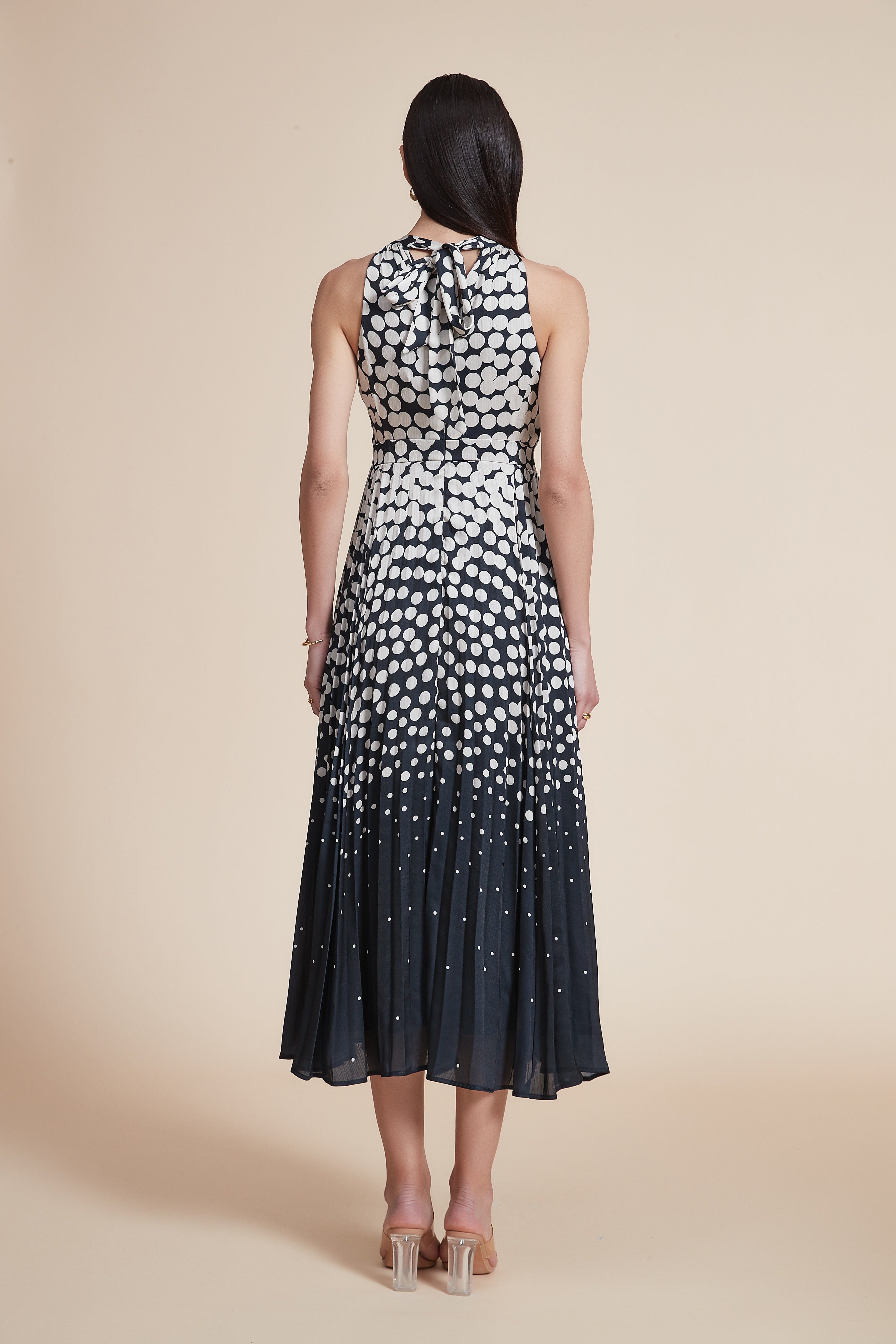 فستان نسائي ميدي منقط بدون أكمام مكشكش