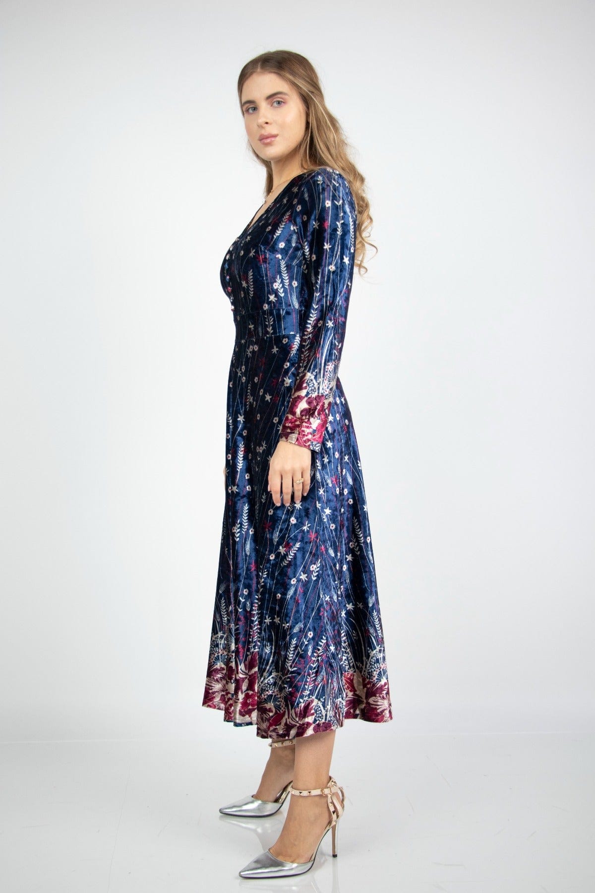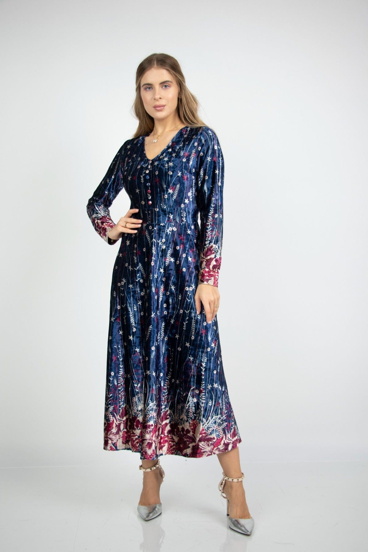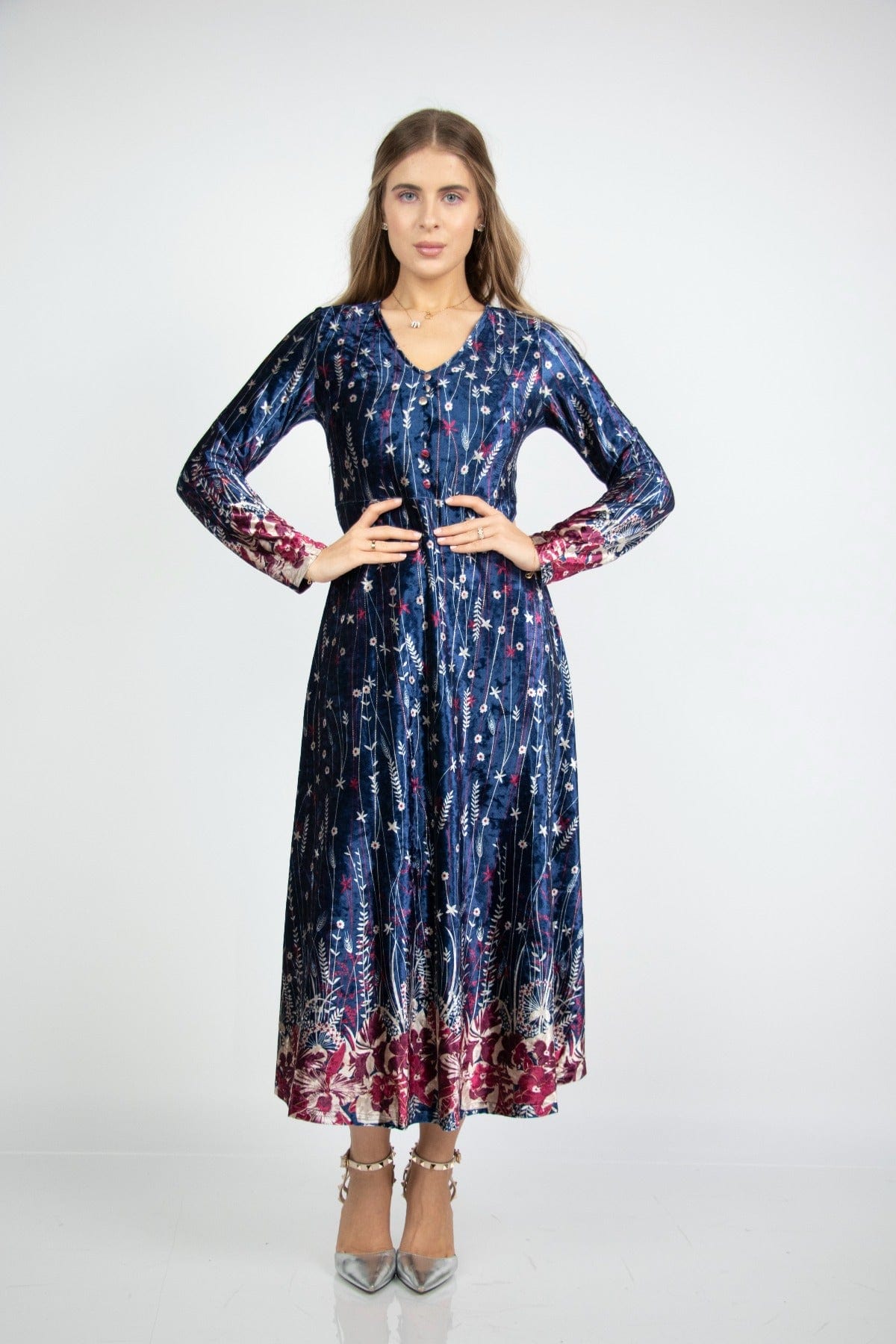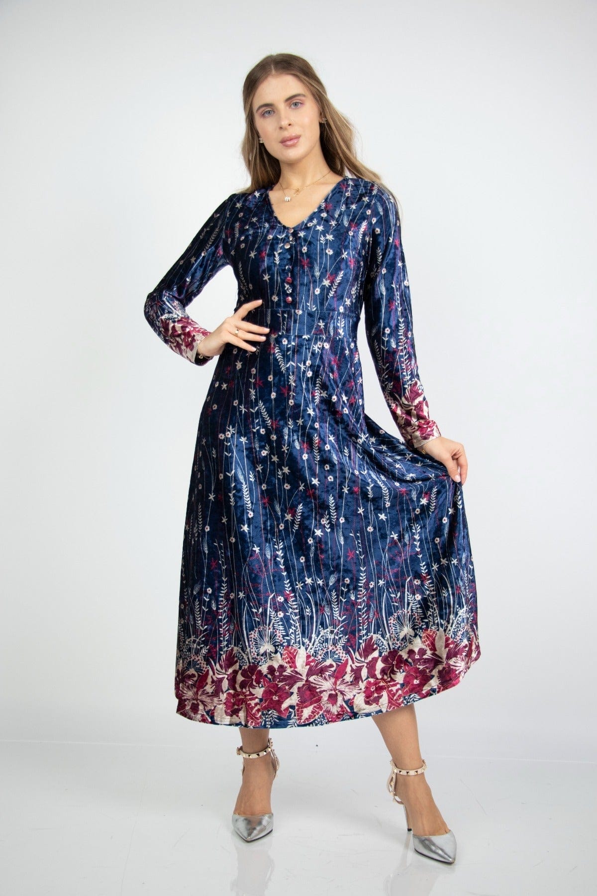 لما تبحثين عن فستان يجمع بين الأناقة والراحة، هذا الفستان الأزرق البحري هو خيارك. بقصة A مريحة وقصّة عادية يناسب المرأة البالغة المواكبة للموضة، وطوله ميدي يمنحك إطلالة أنيقة للنهار والمساء. الخامة من بوليستر 95% وإيلاستين 5% تعطيك مرونة وخفة وتحافظ على الشكل مع سماكة متوسطة مناسبة لكل المواسم. نقش الزهور مزين بتطريز يضيف لمسة أنثوية راقية، وياقة V مع أكمام طويلة توازن الإطلالة. الإغلاق بزر عملي، والفستان بدون جيوب وبلا بطانة أو حزام، مثالي للخروجات الرومانسية أو للمناسبات الأنيقة — ستعجبك كيف يتحرك معك ويمنحك ثقة دون مبالغة. اعثري على مقاسك في فاشن السعودية وأضيفي هذه القطعة المتنوعة إلى خزانة ملابسك اليوم.