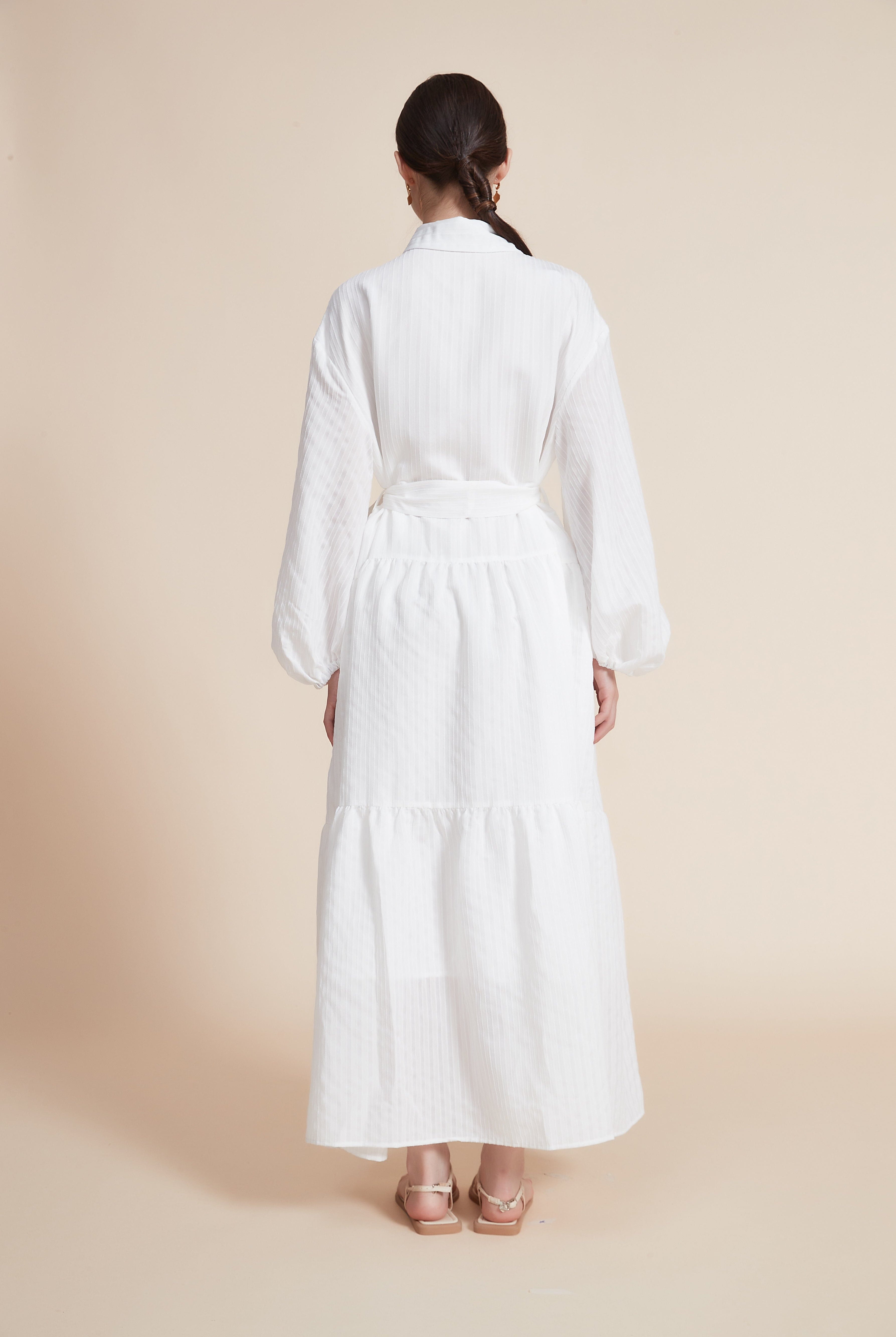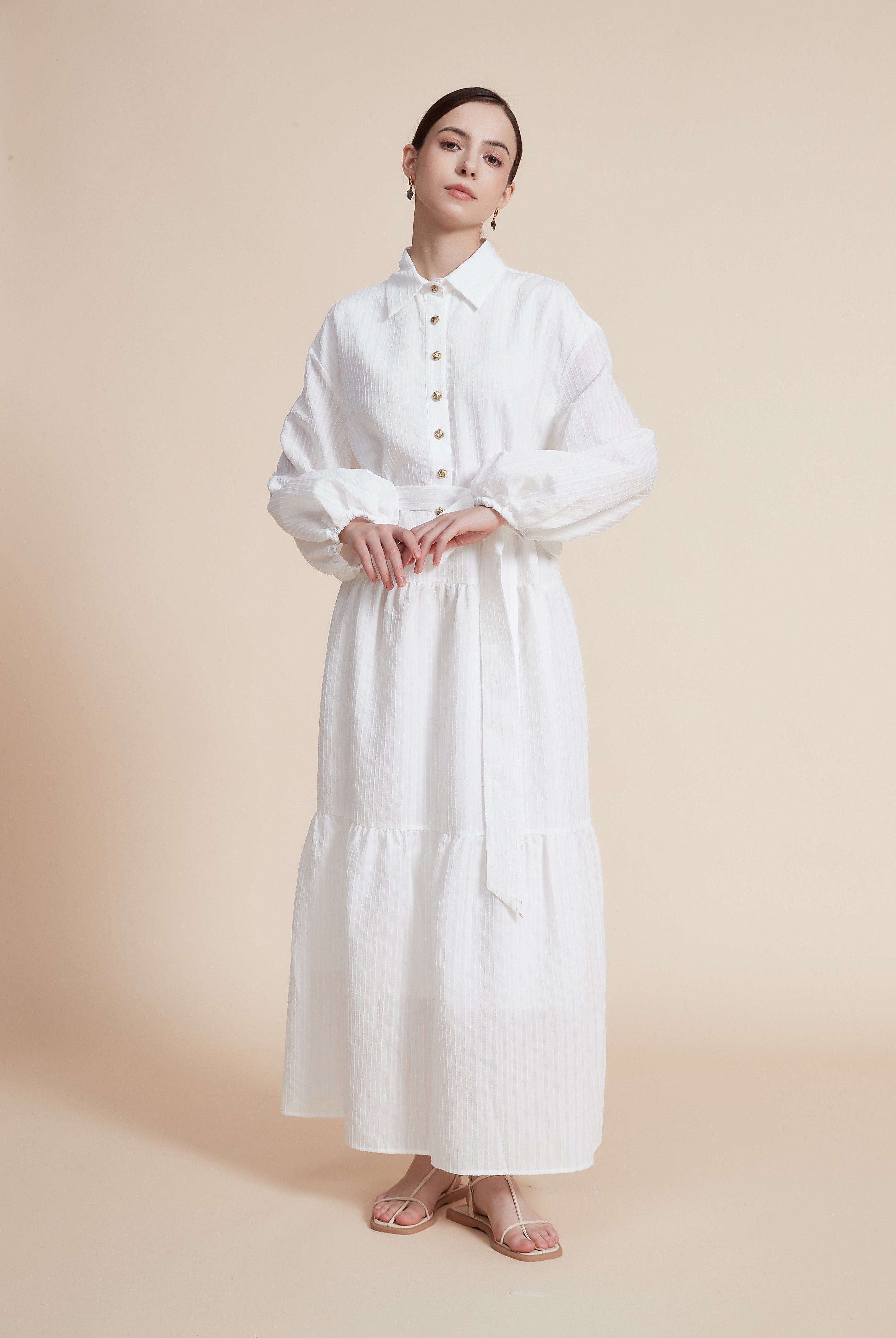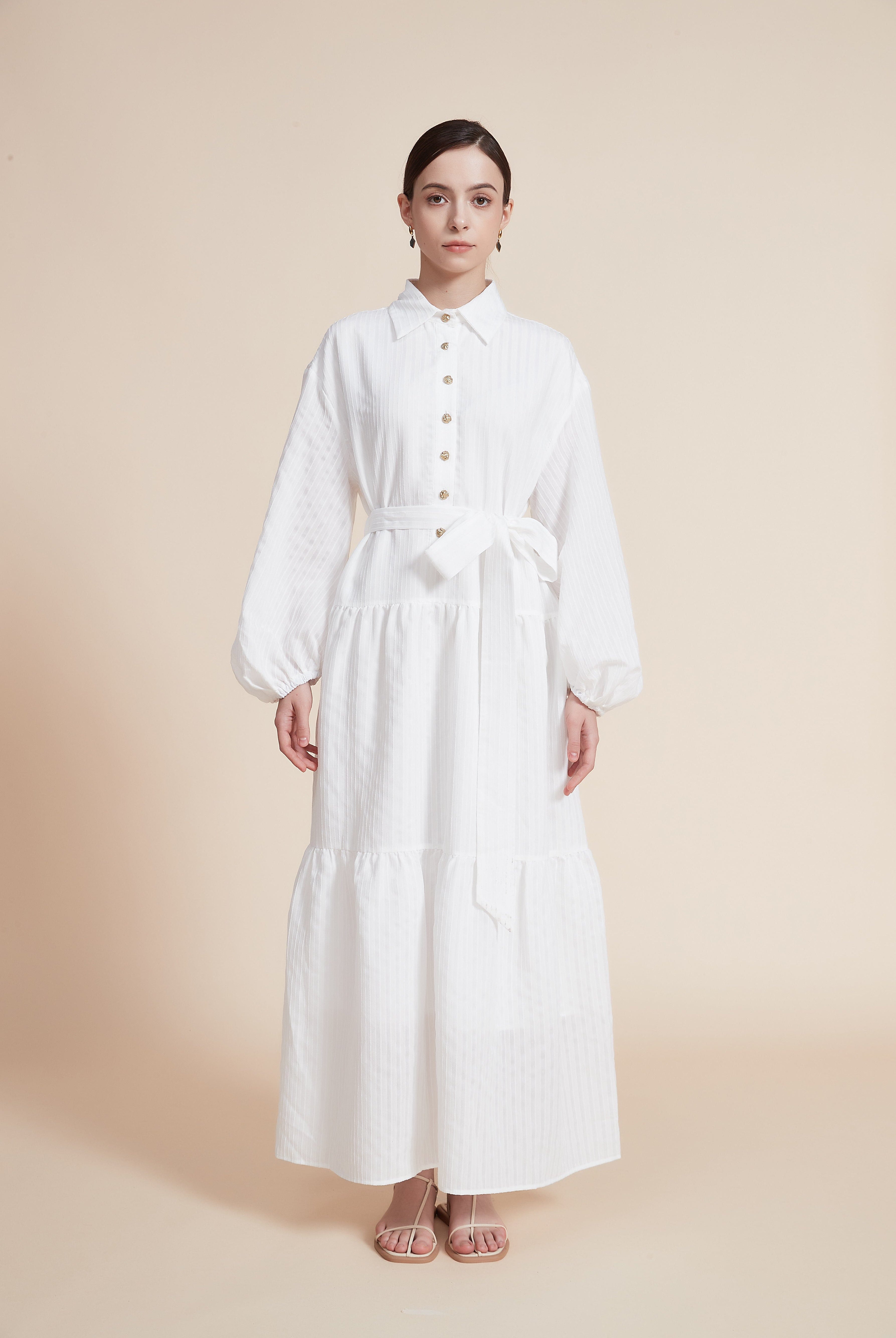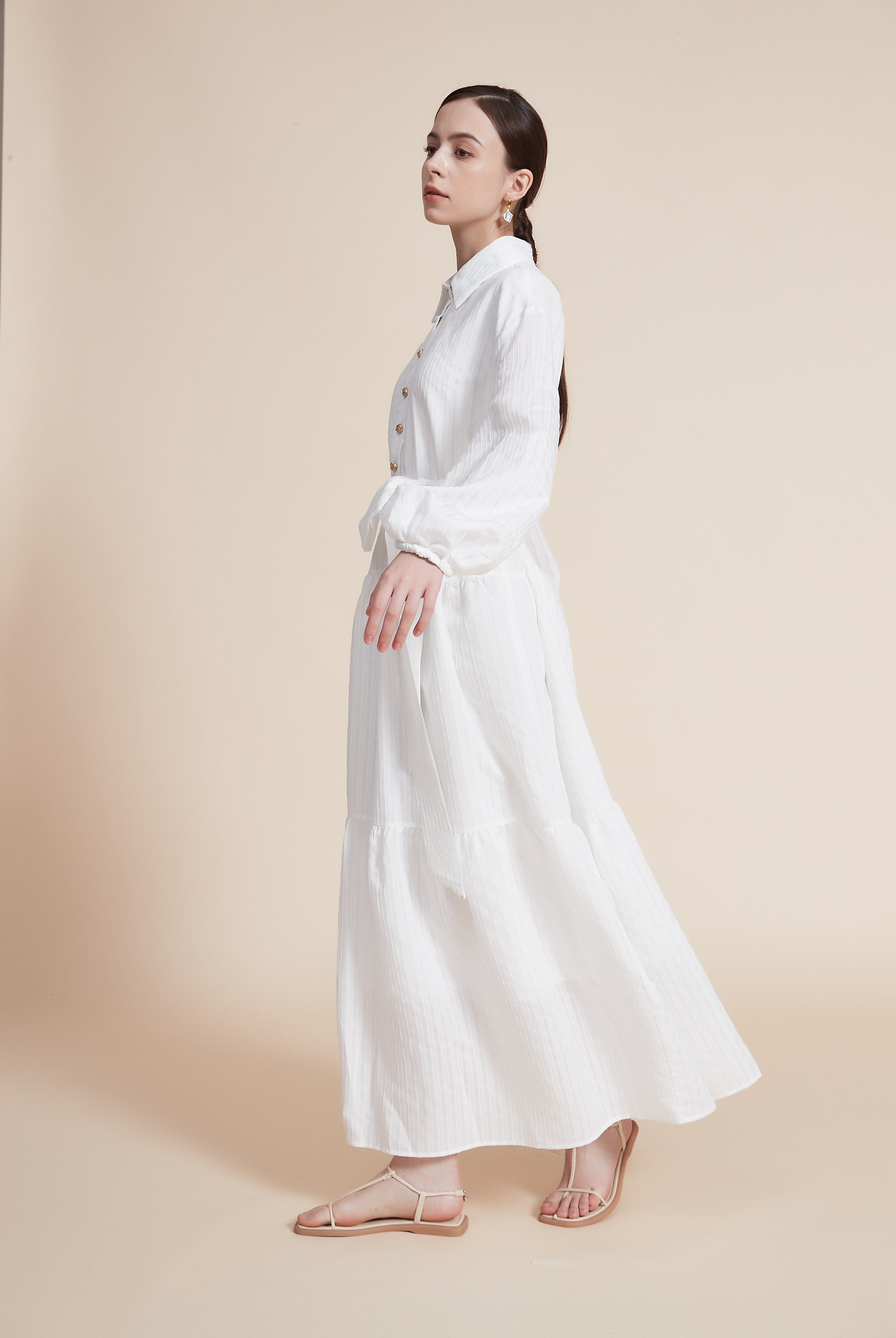 فستان طويل بأكمام طويلة واسعة وياقة قميص