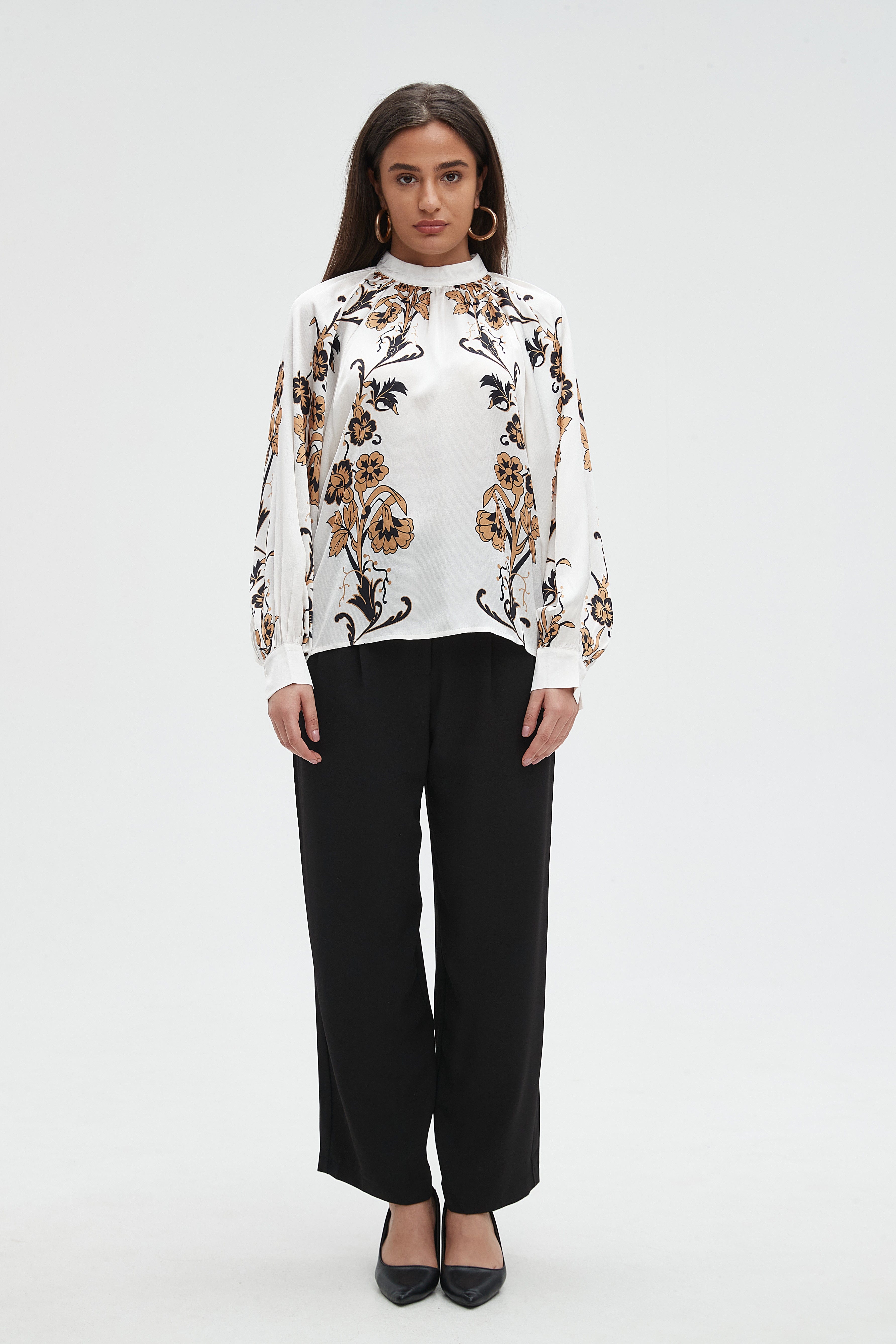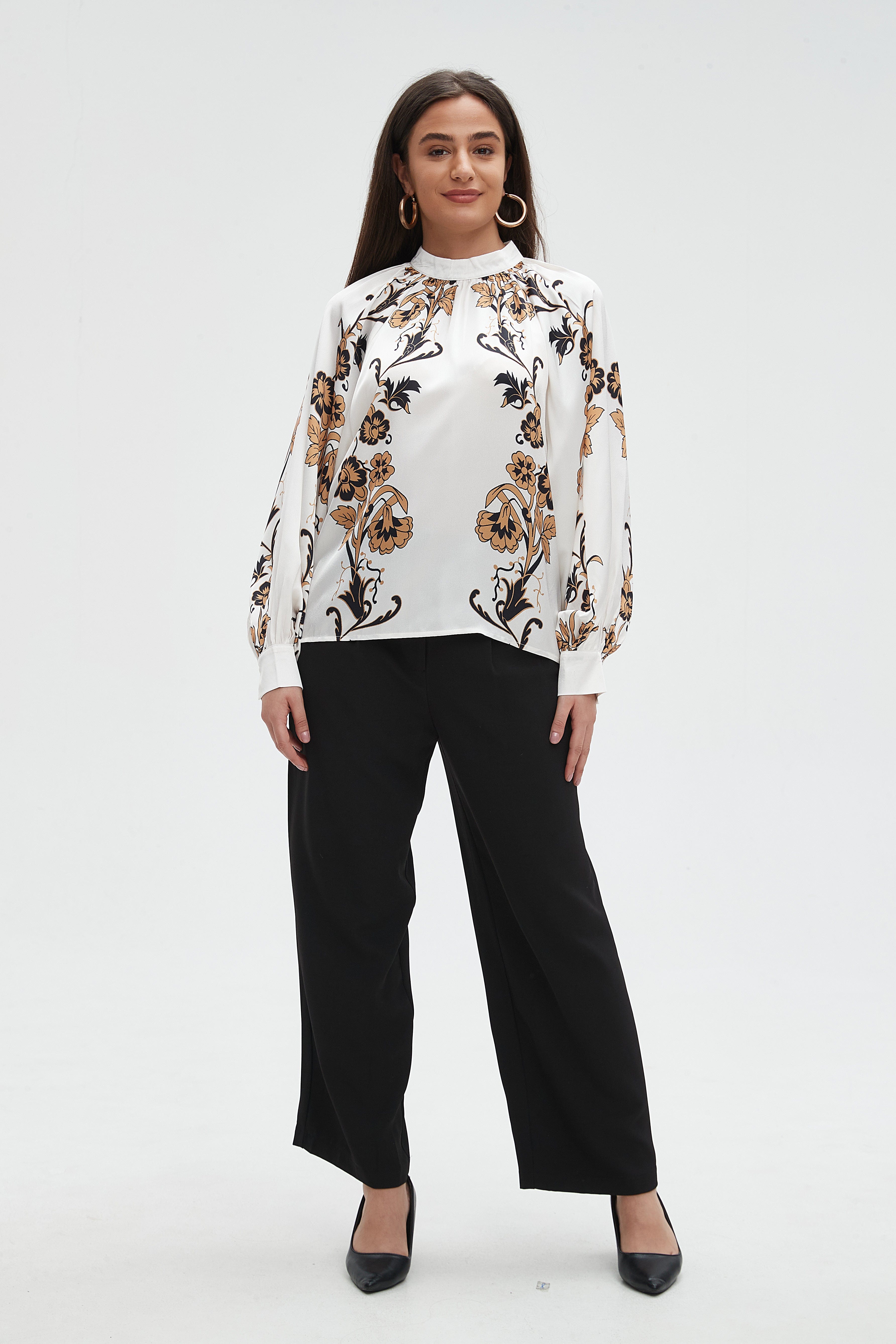 بلوزة نسائية بطبعة ورد وأكمام طويلة