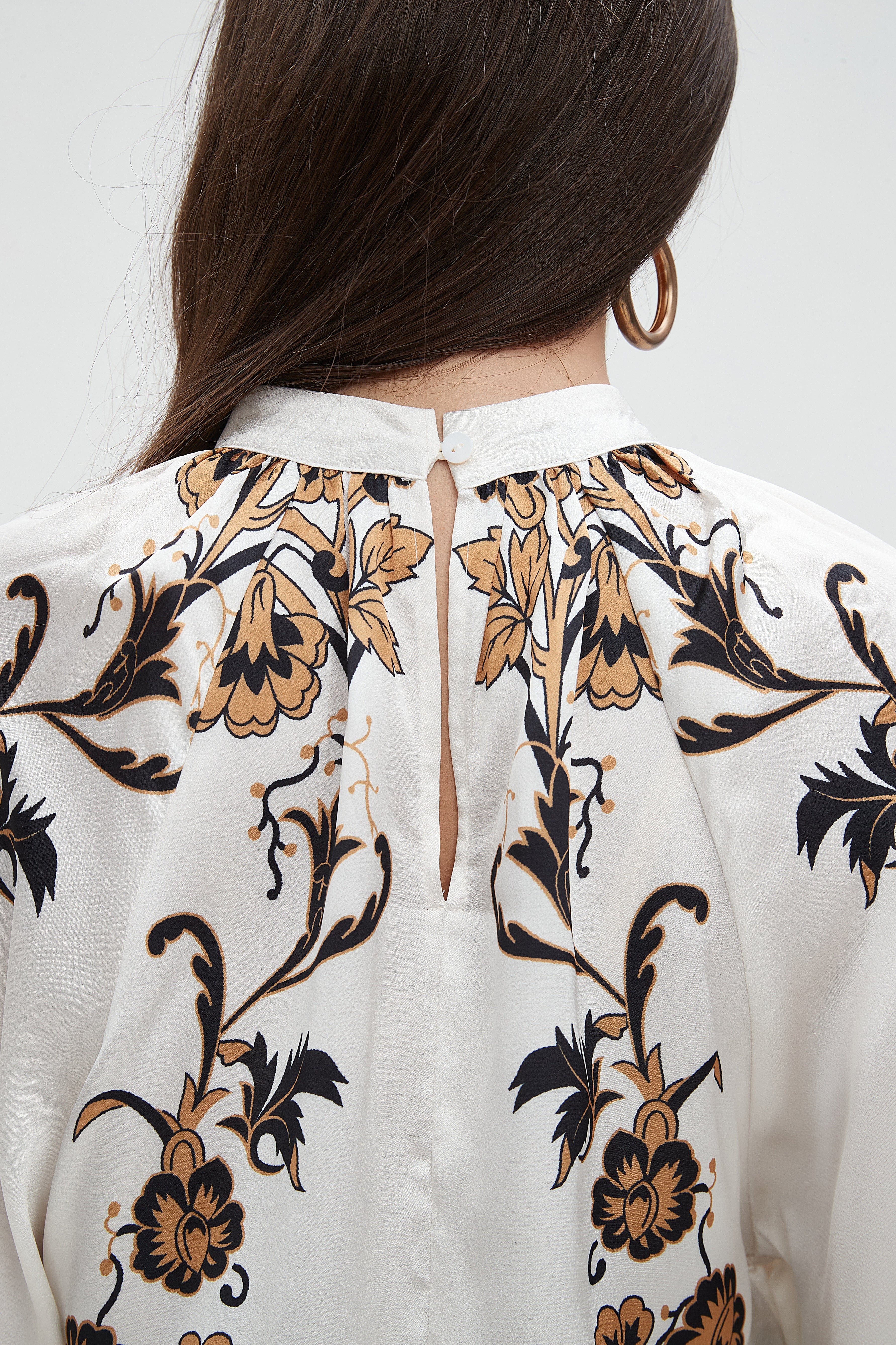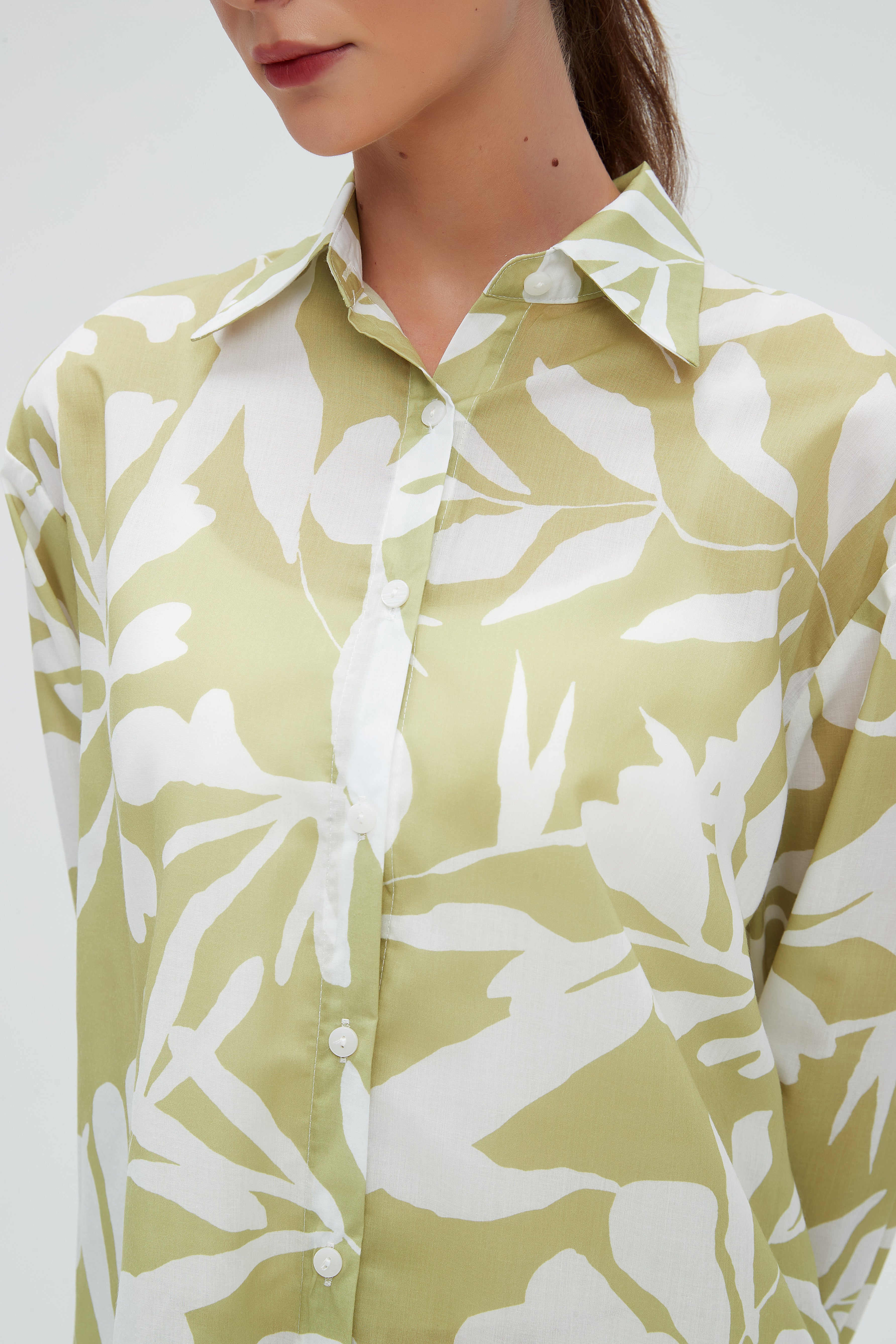 بلوزة نسائي بكم منقوشة بنقشة اشجار