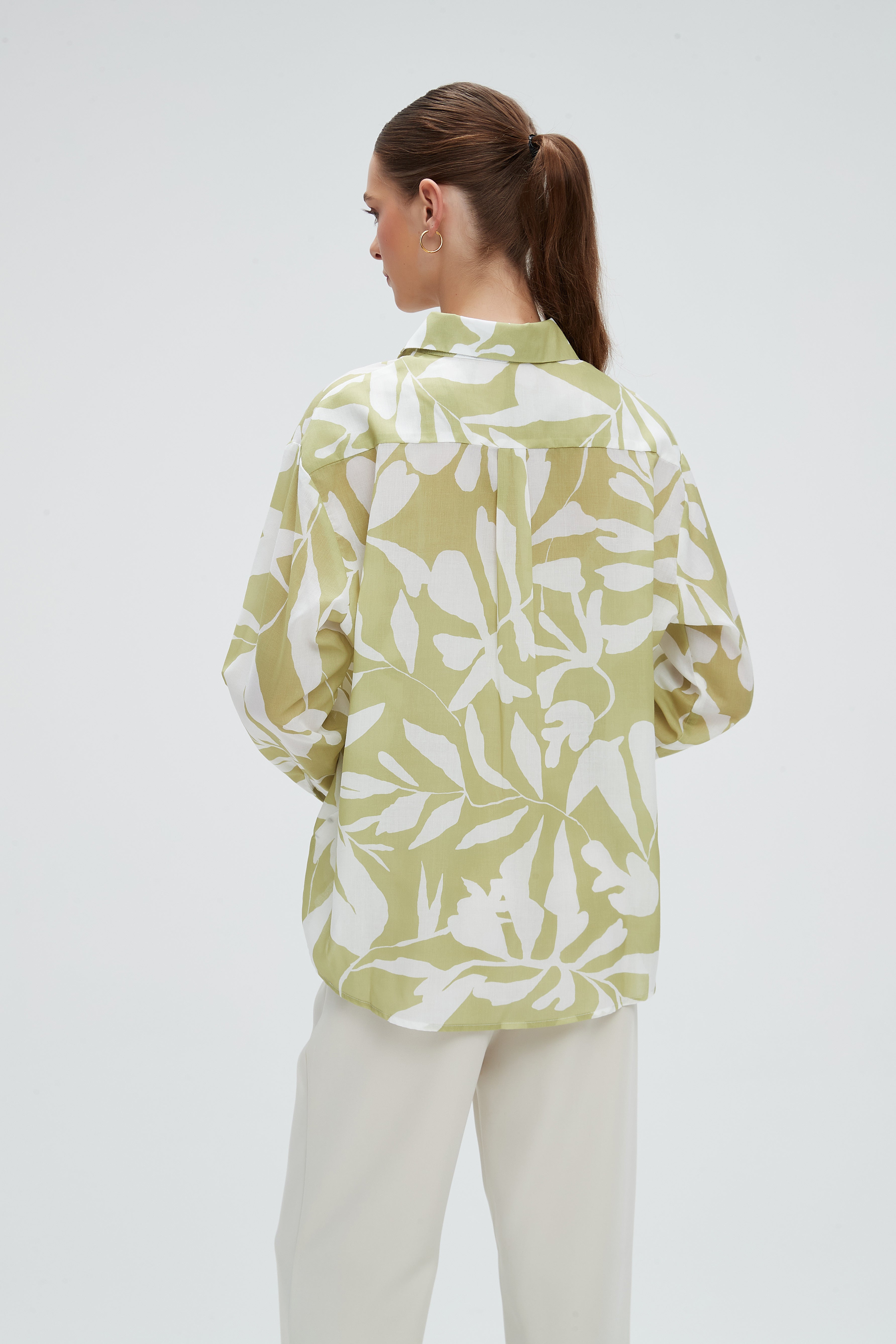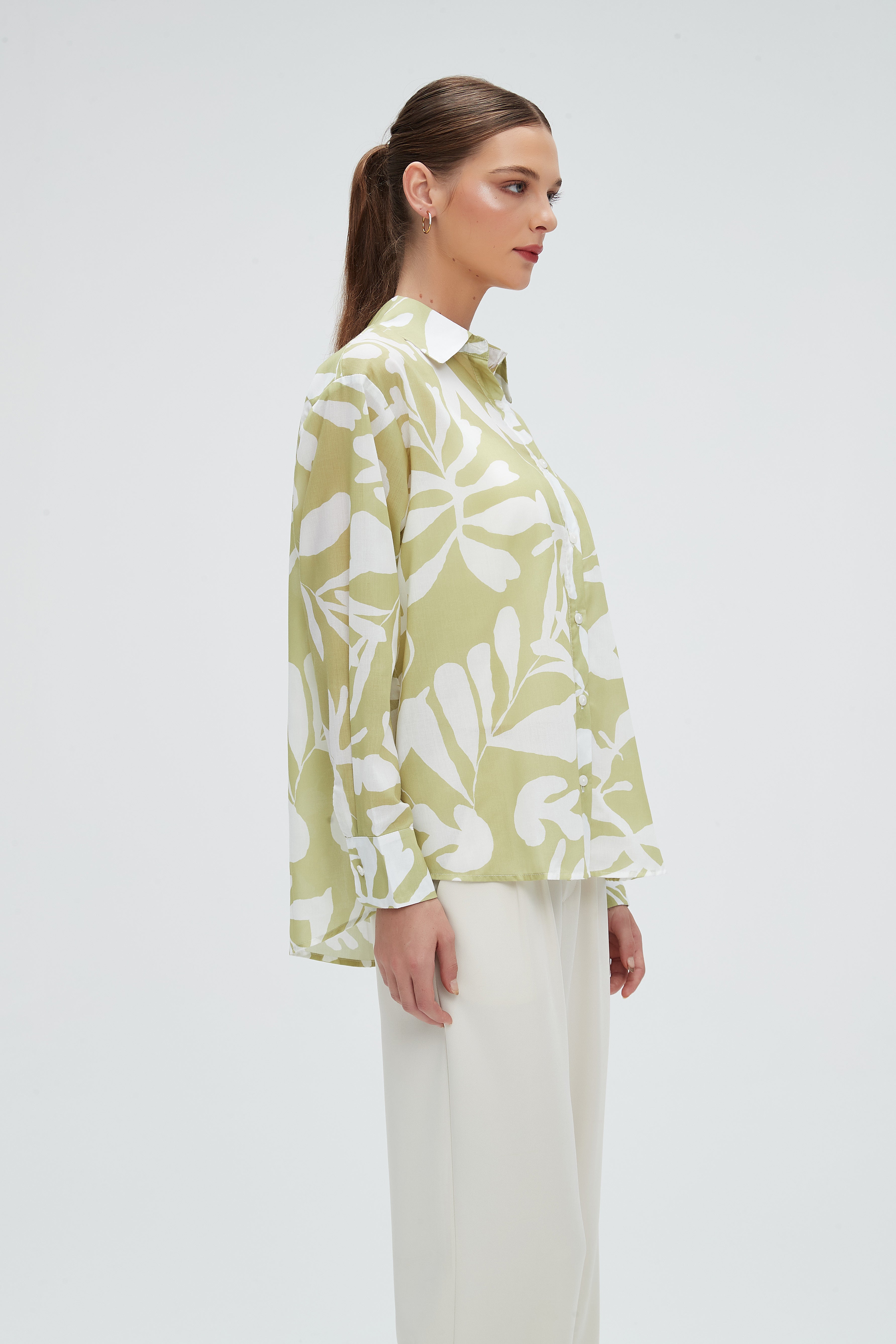 بلوزة نسائي منقوشة بأزرار وكم طويل