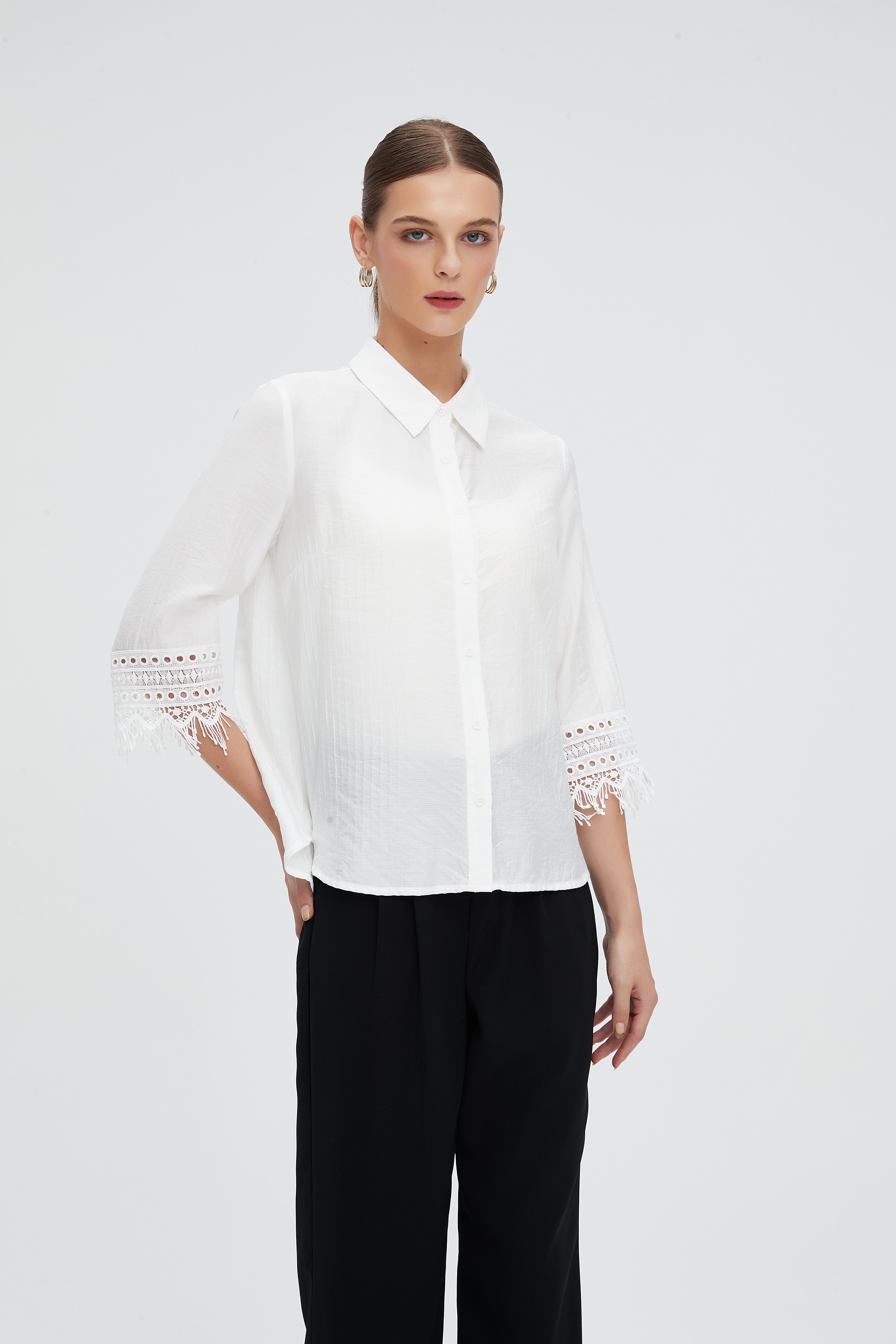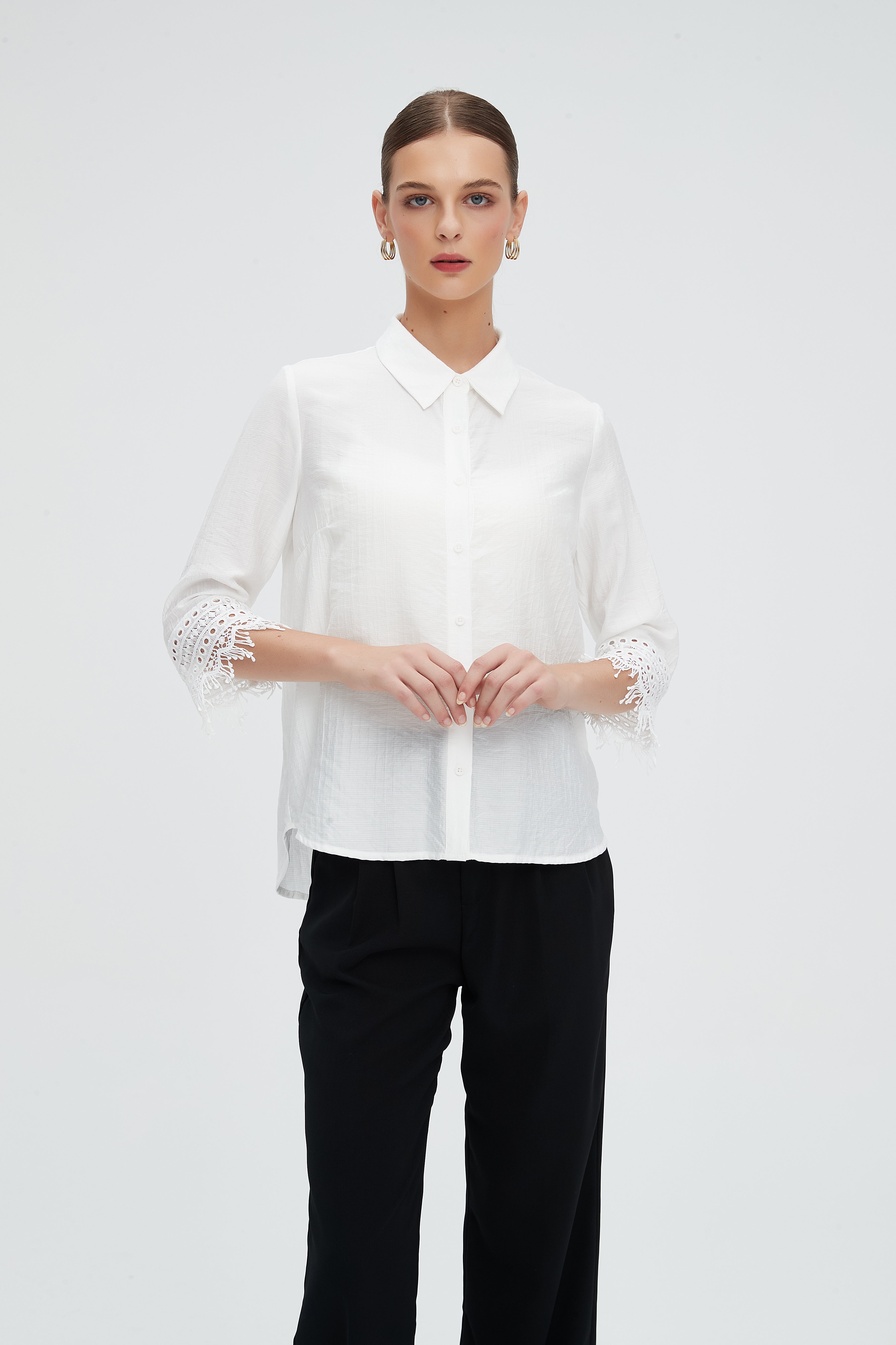 بلوزة نسائي كم طويل ساده بكرانيش من الأمام
