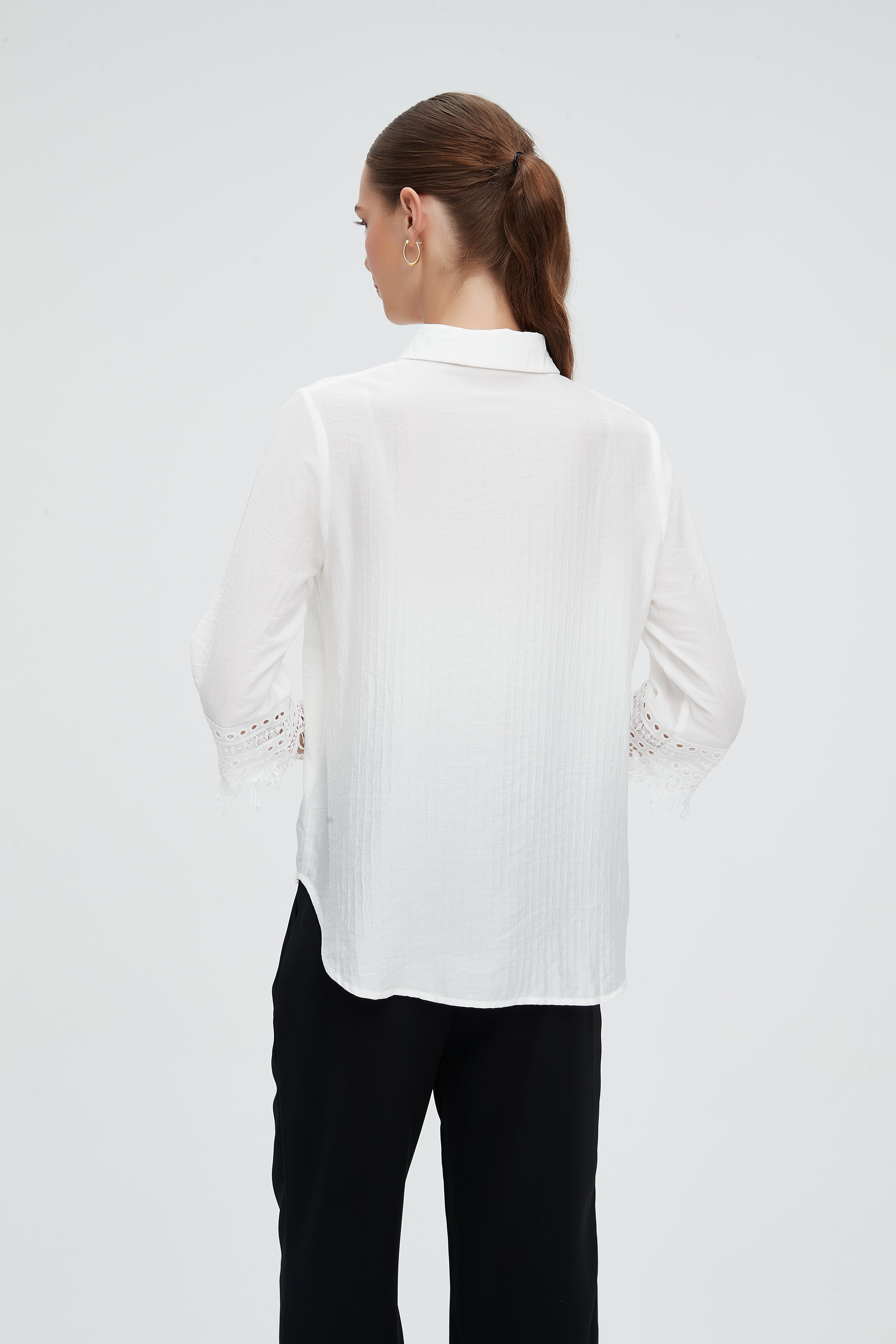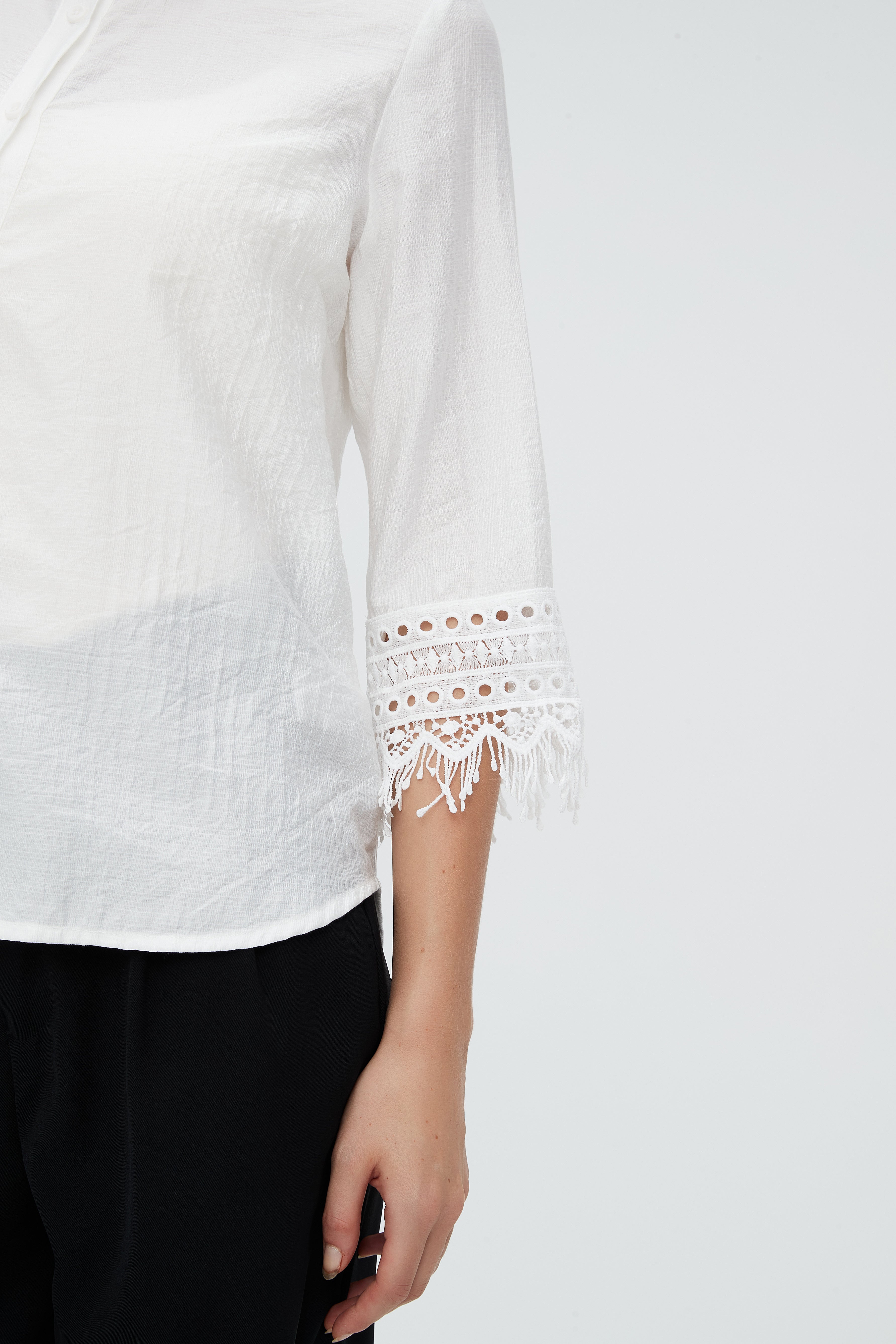 بلوزة نسائية برقبة منقوشة بكم طويل