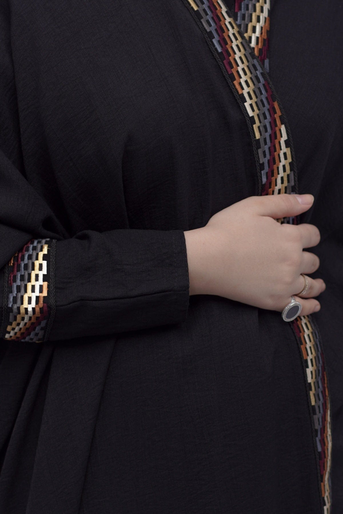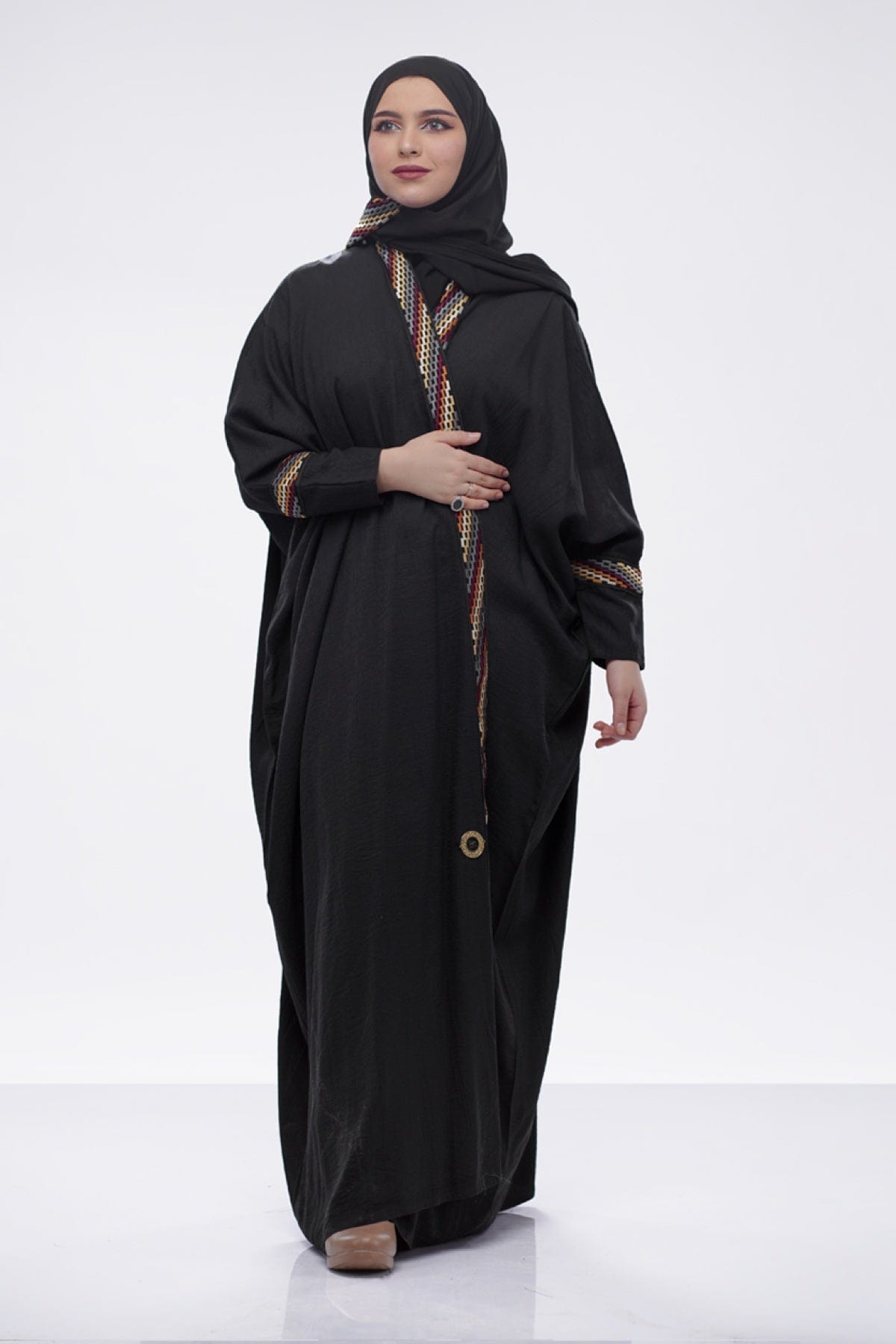 عباية أكمام ضيقة كتان موديل بشت بكلفة ملونة