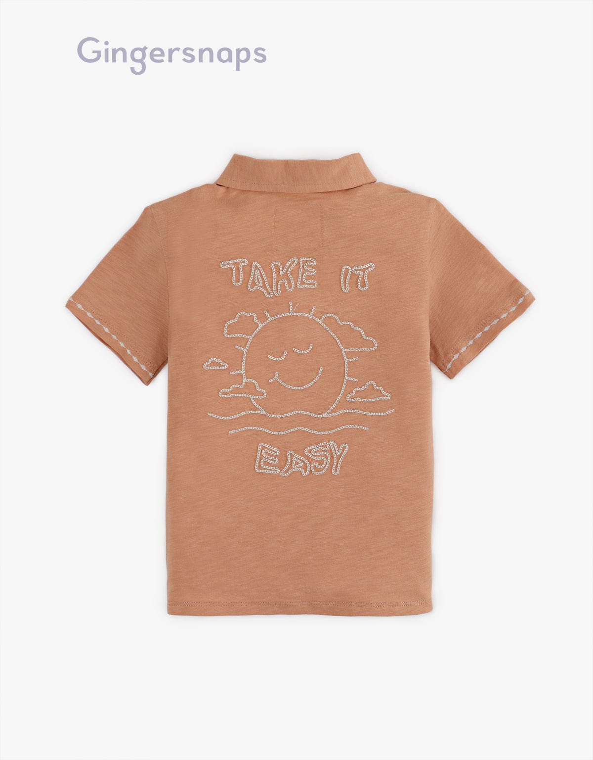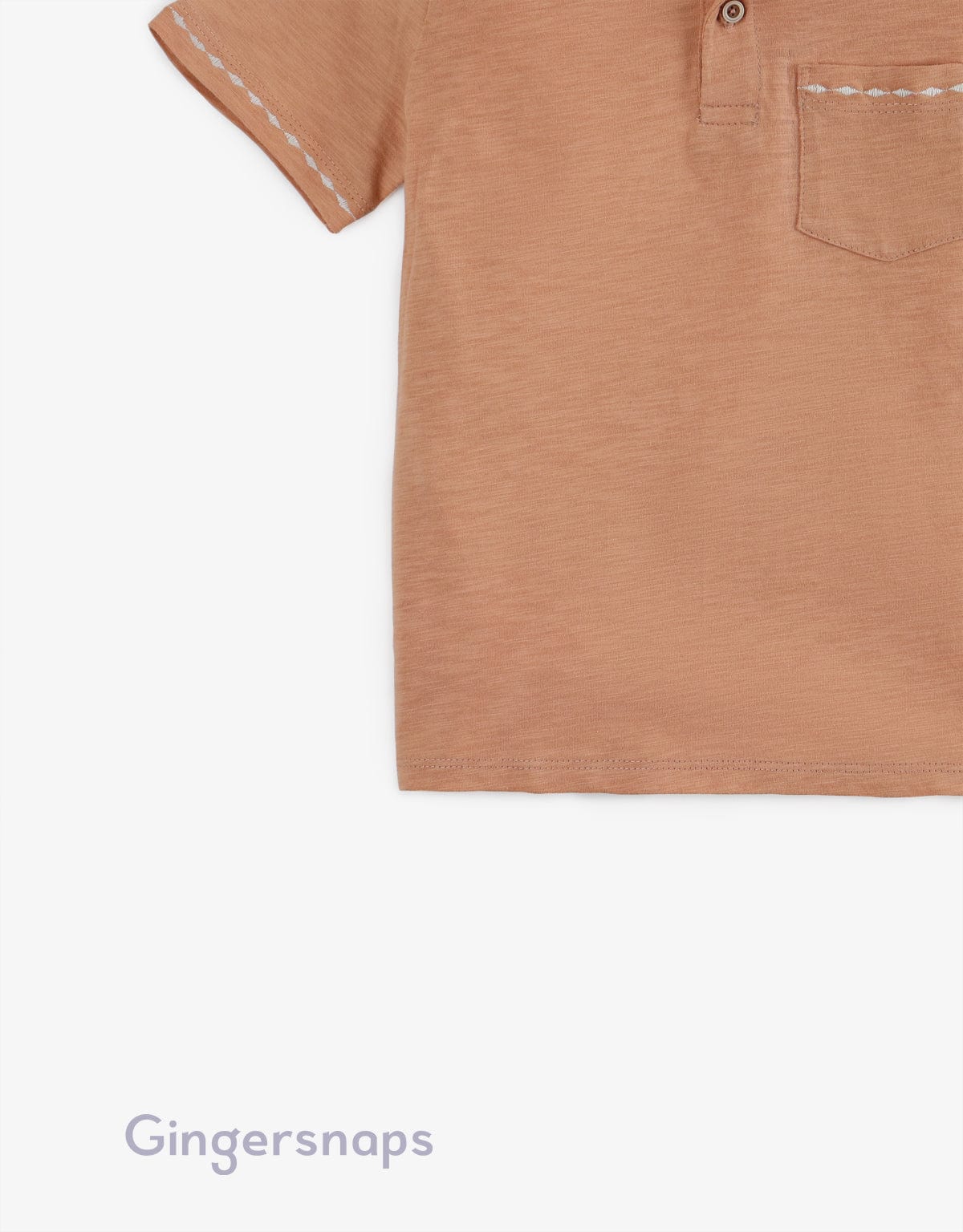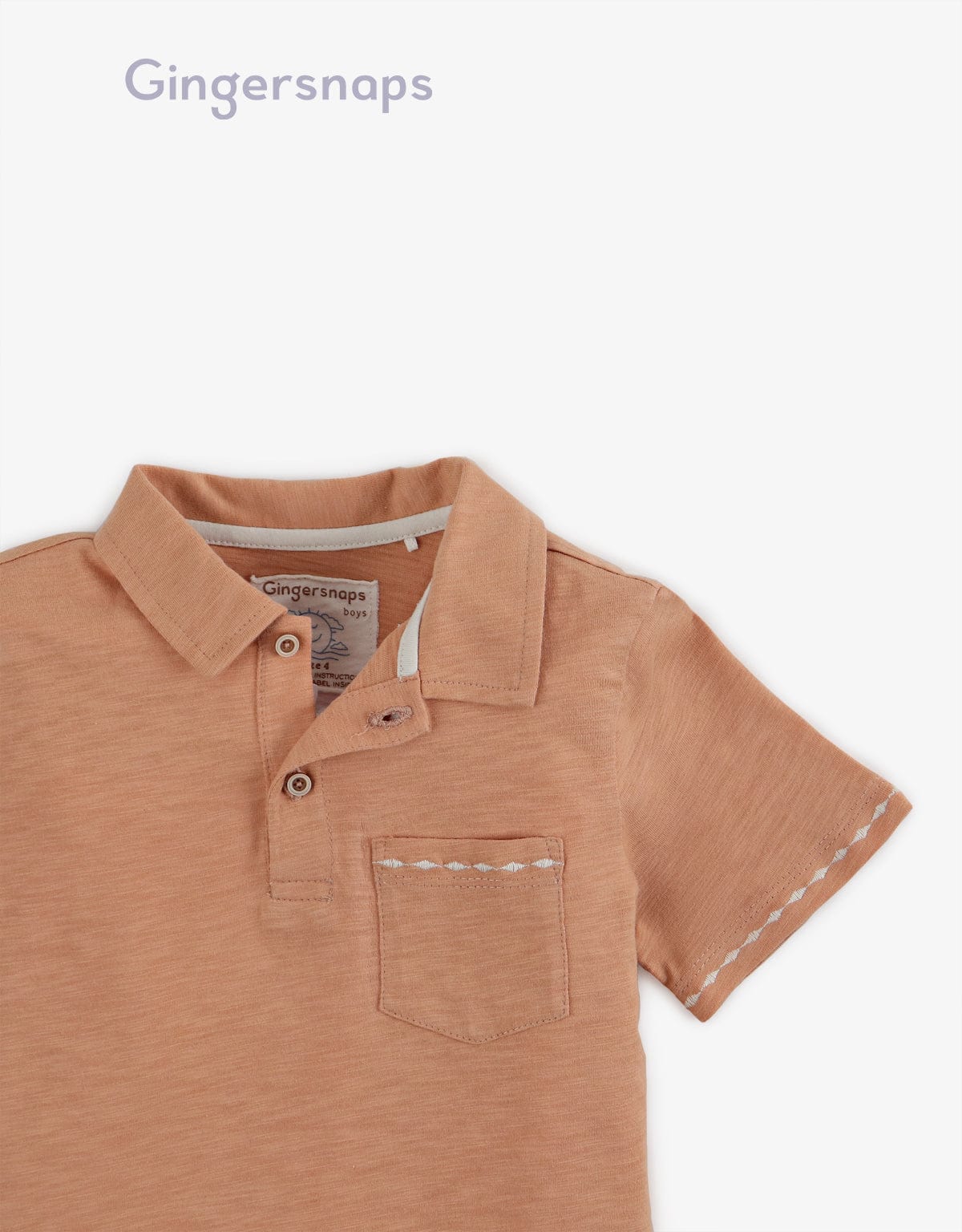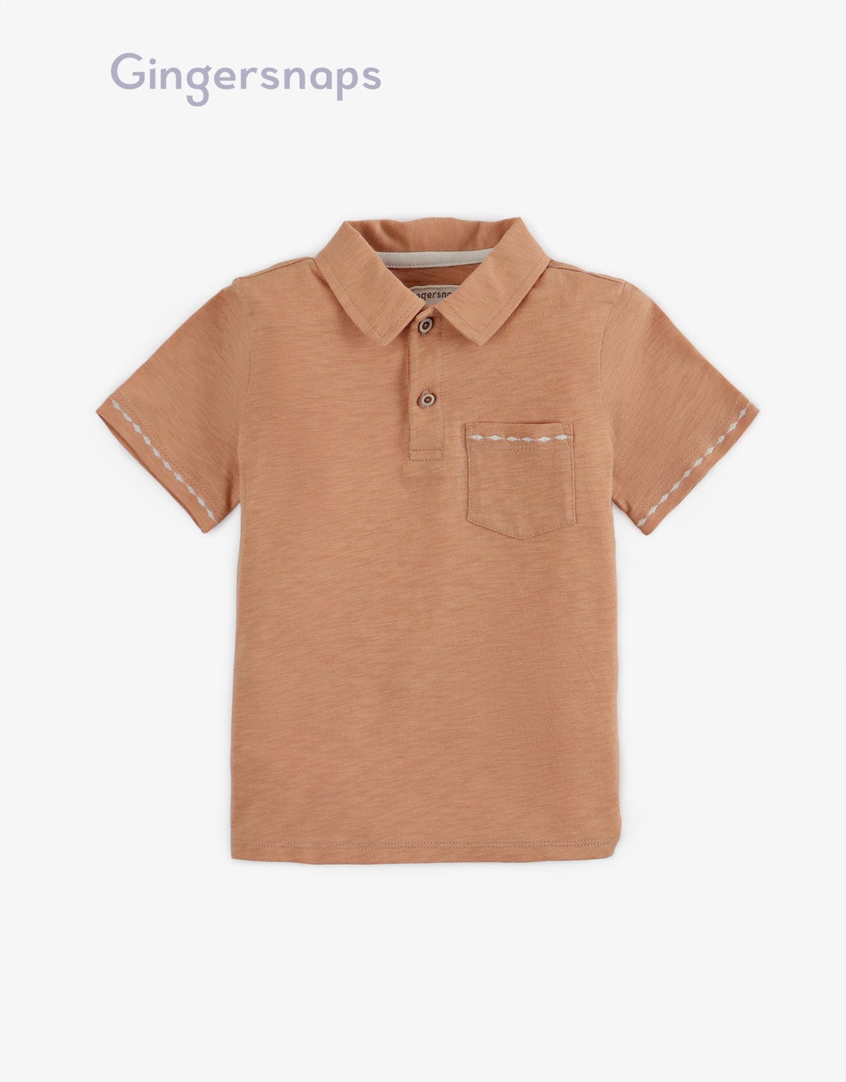 تي شيرت بولو ولادي بجيب سادة مطرز بالخيط