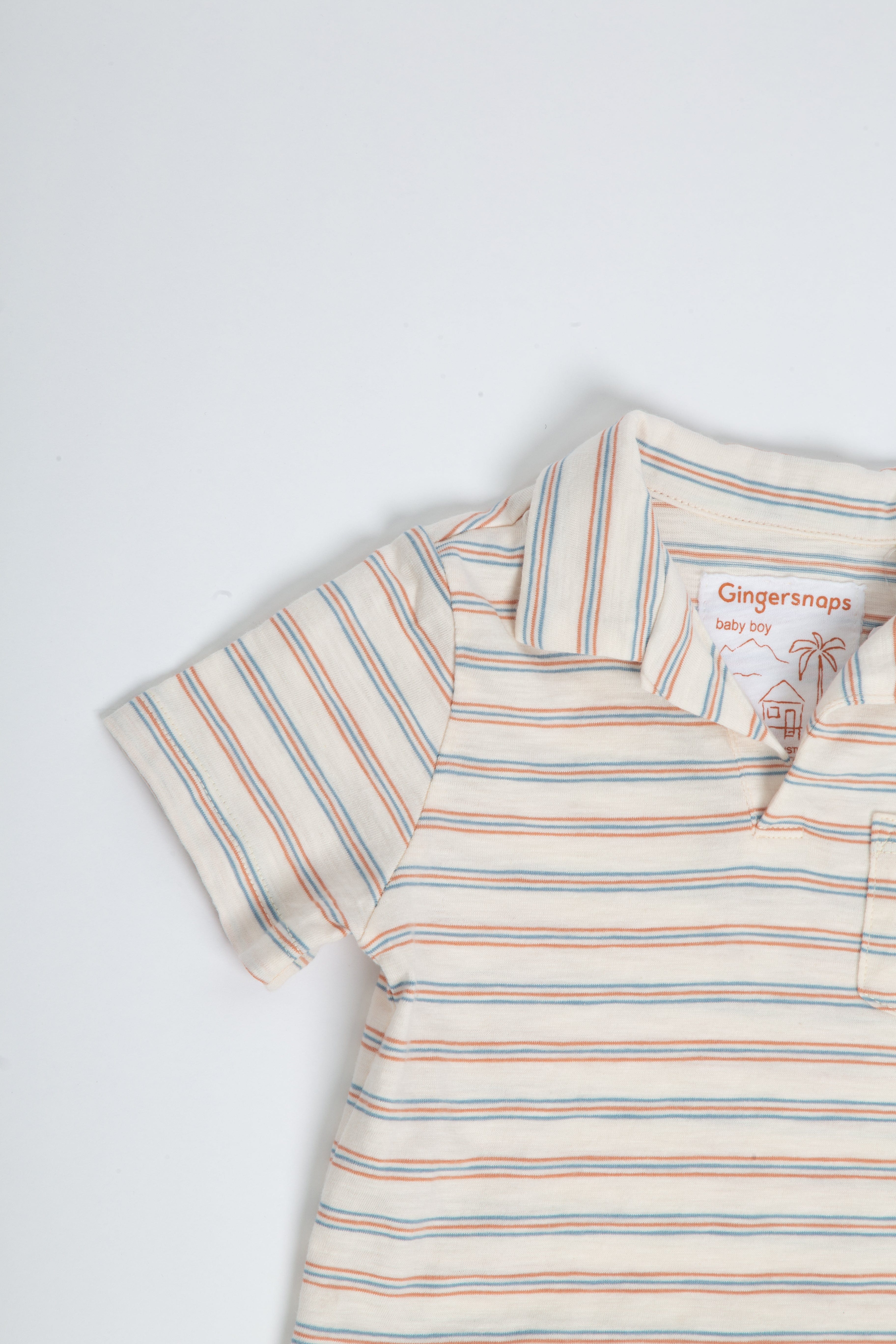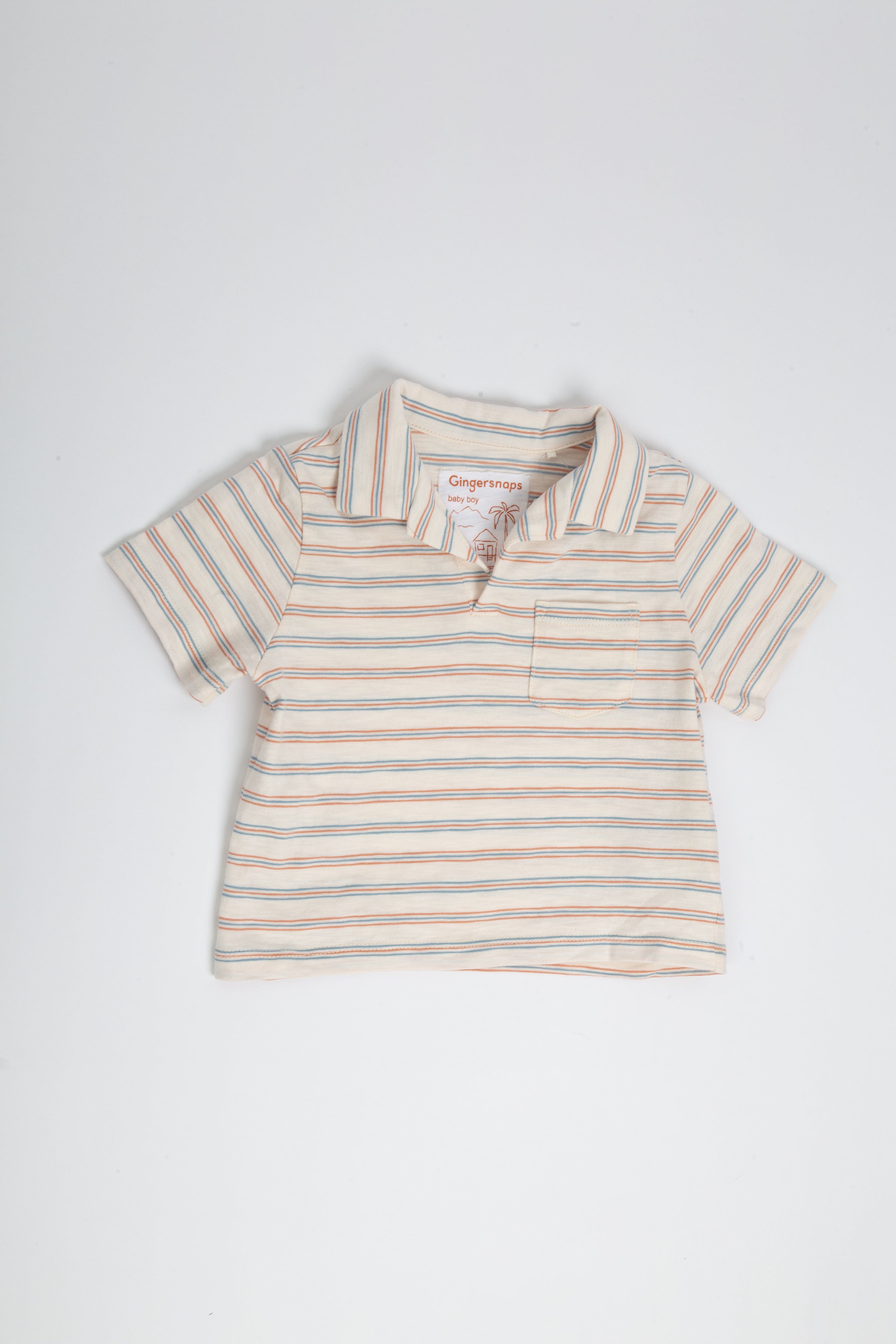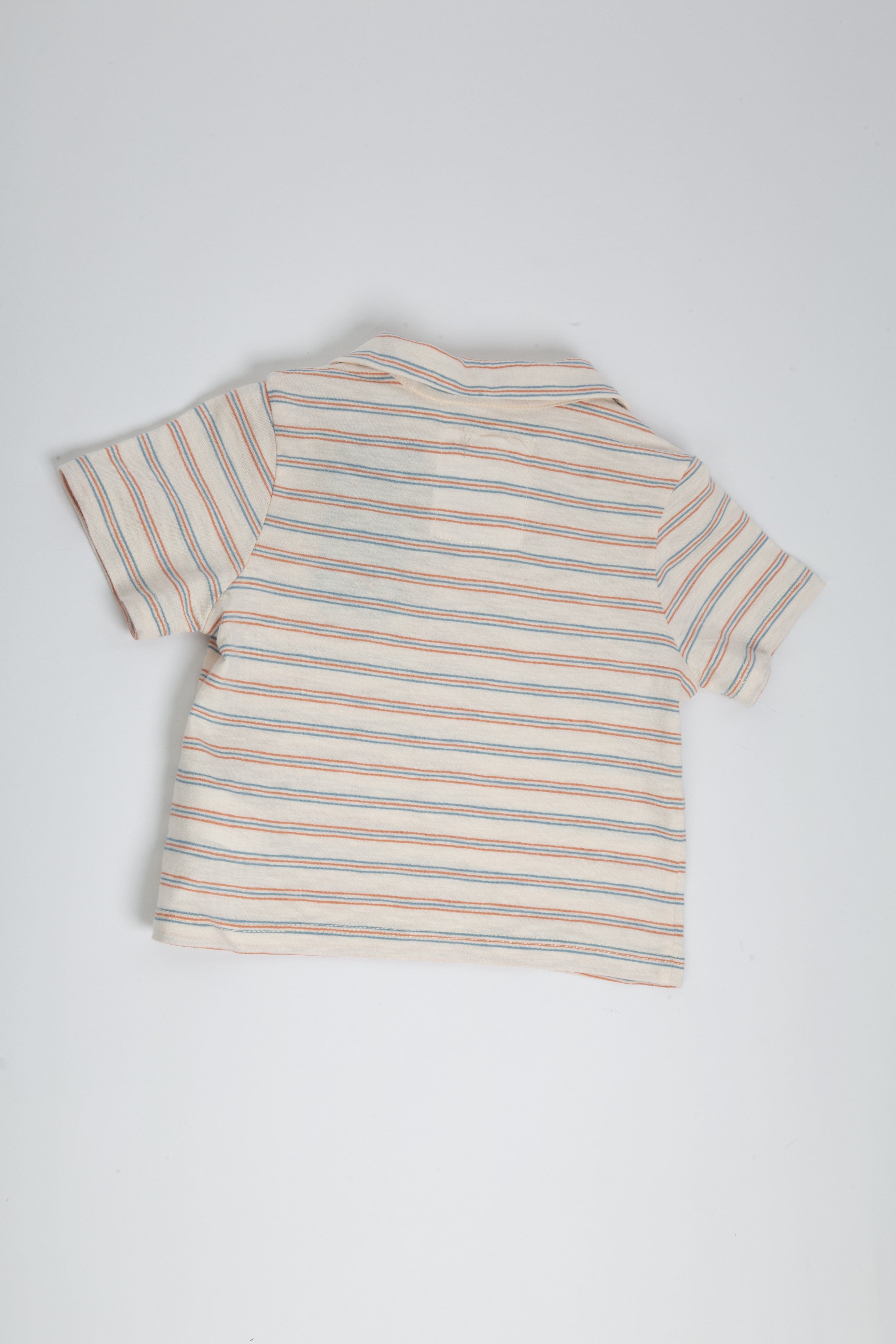 تي شيرت بولو ولادي مخطط بالعرض بجيب أمامي