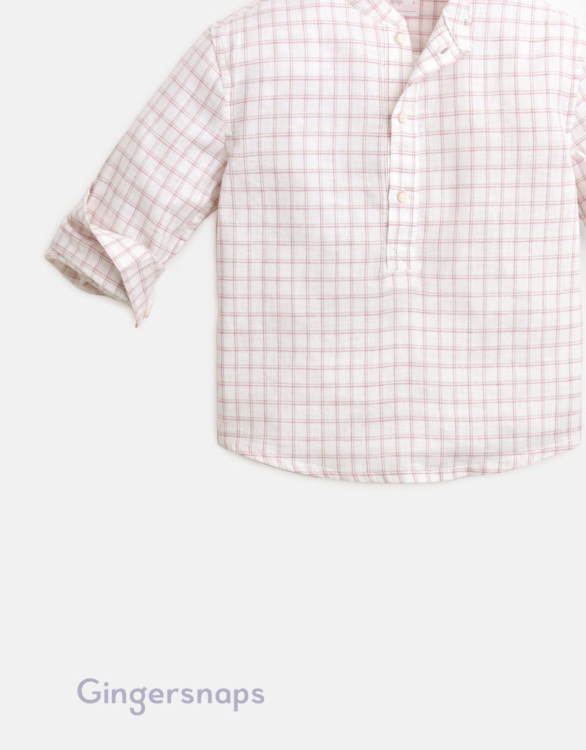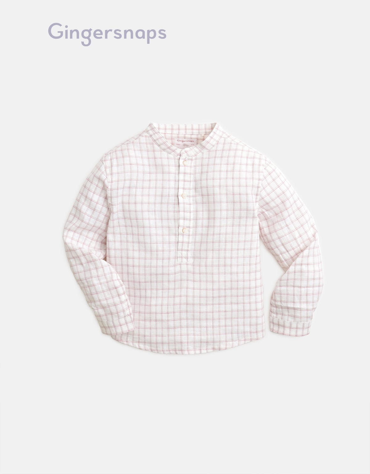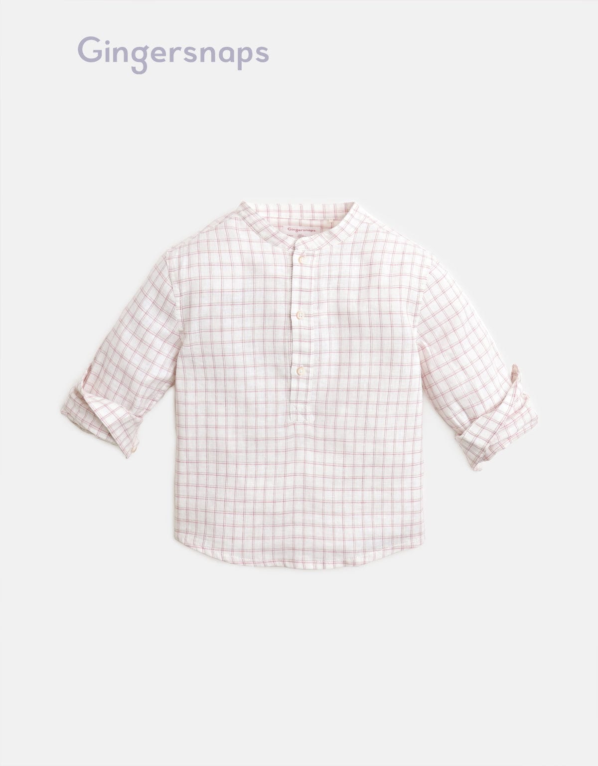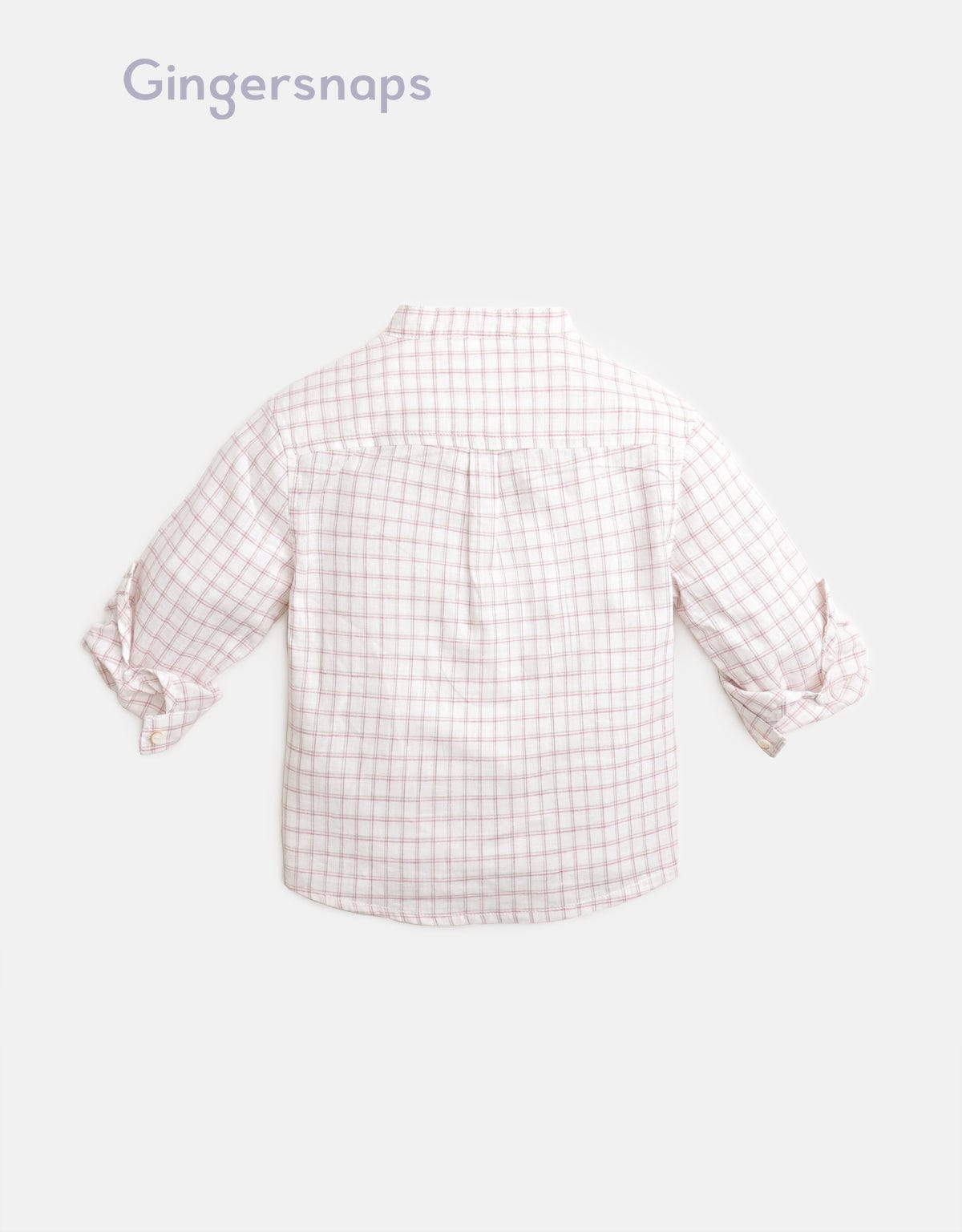 قميص بولو منسوج للأولاد بنقشة مربعات صغيرة كم طويل